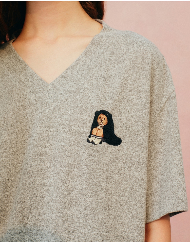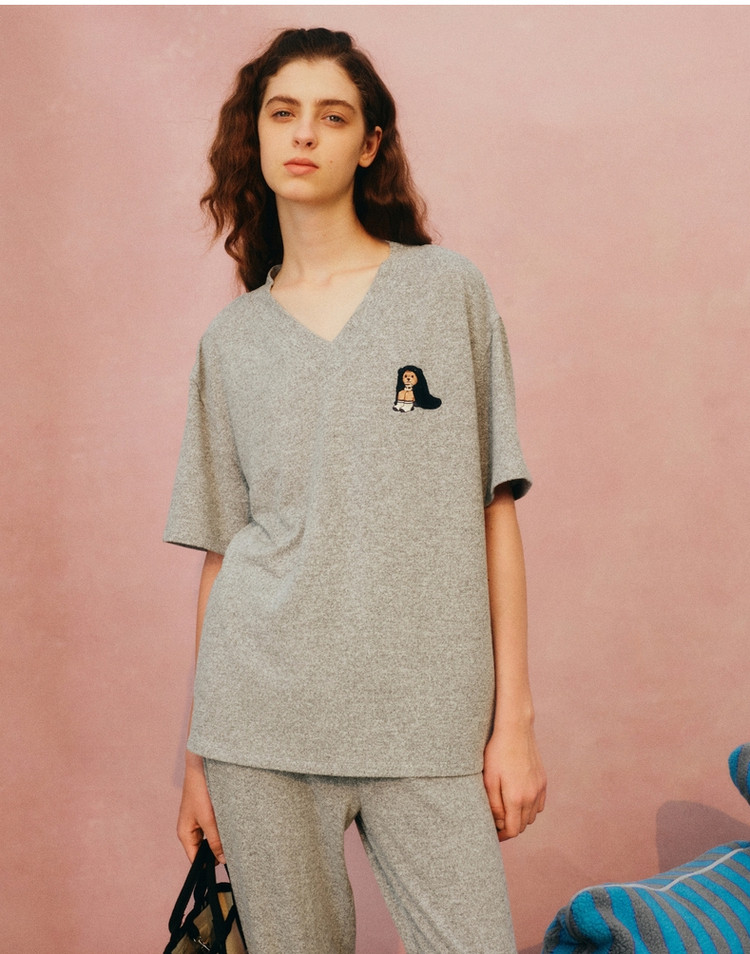 小熊v领短袖宽松长裤家居服睡衣外穿套装 447297