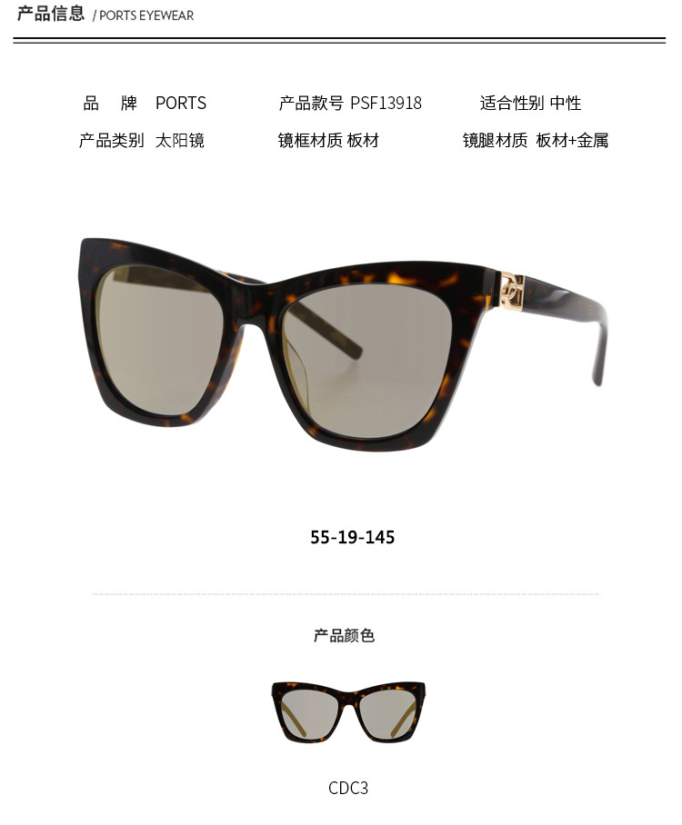 商品名称:Ports板材复古粗框潮流女款太阳镜PSF13918 362634