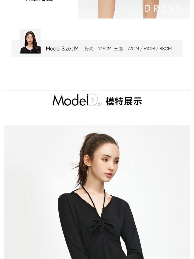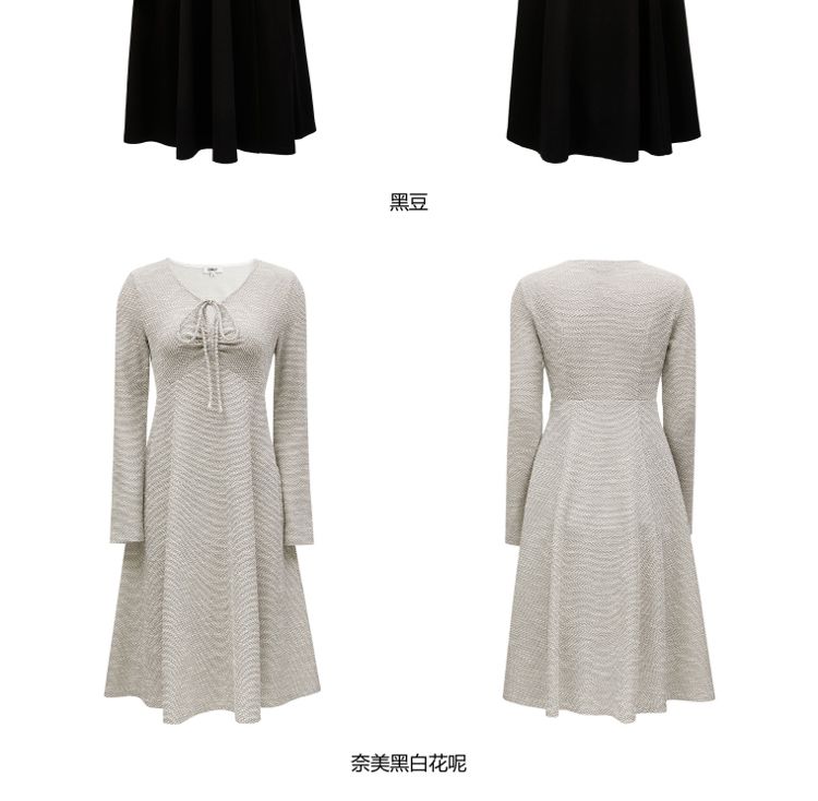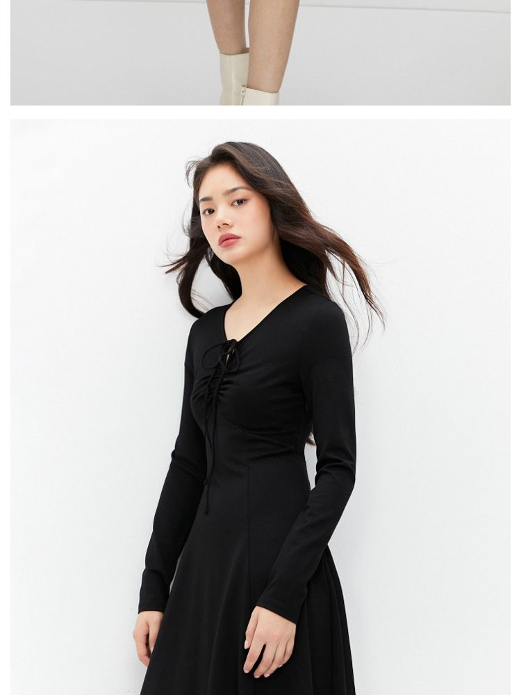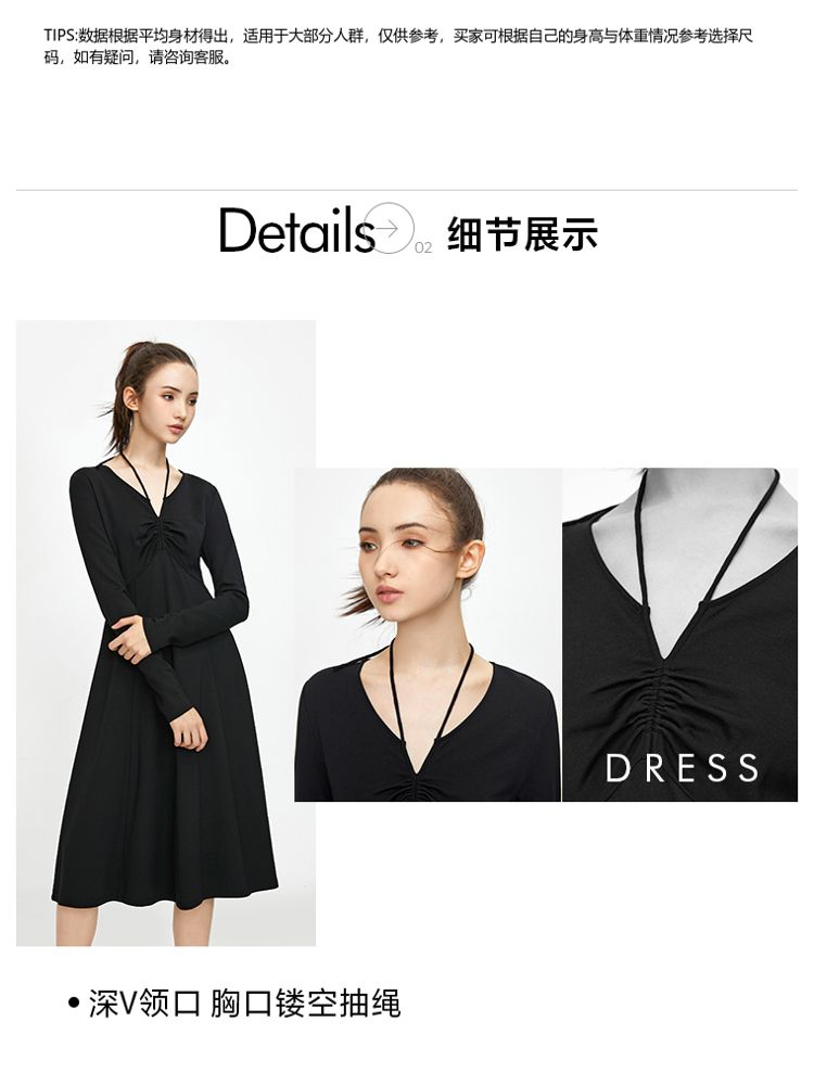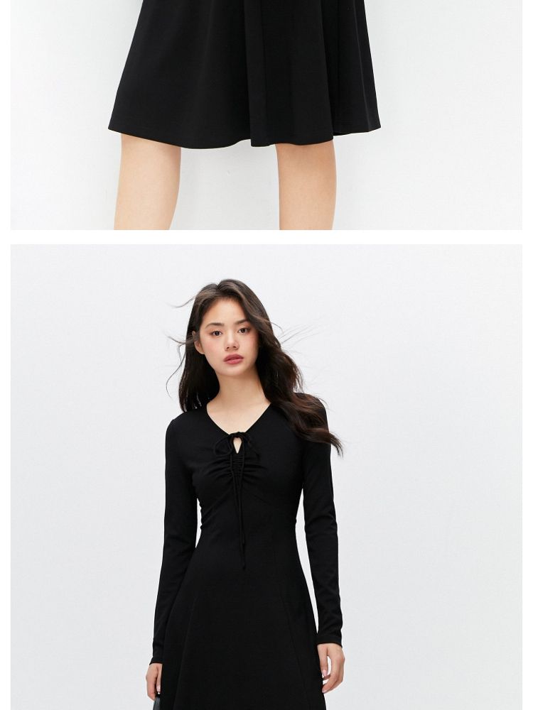 商品名称:【气质百搭】夏季V领长袖A字抽绳短款连衣裙女 277530