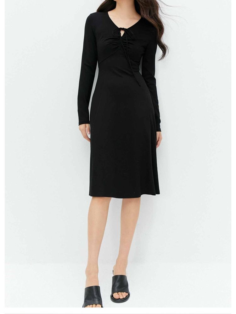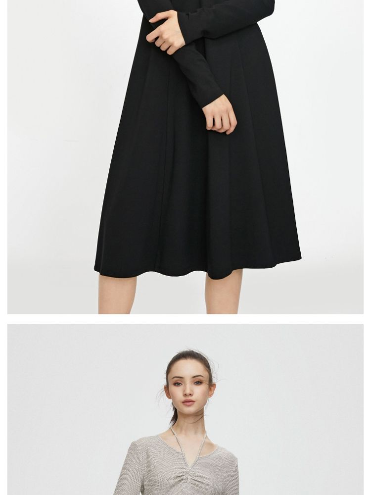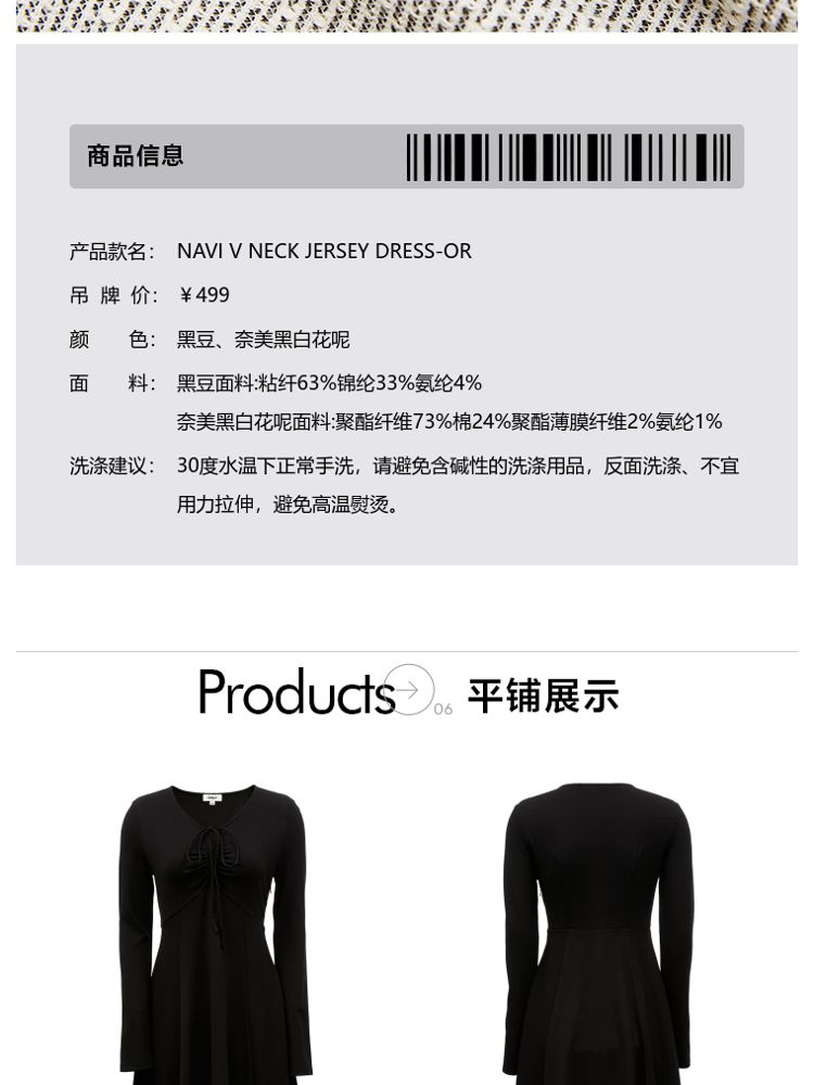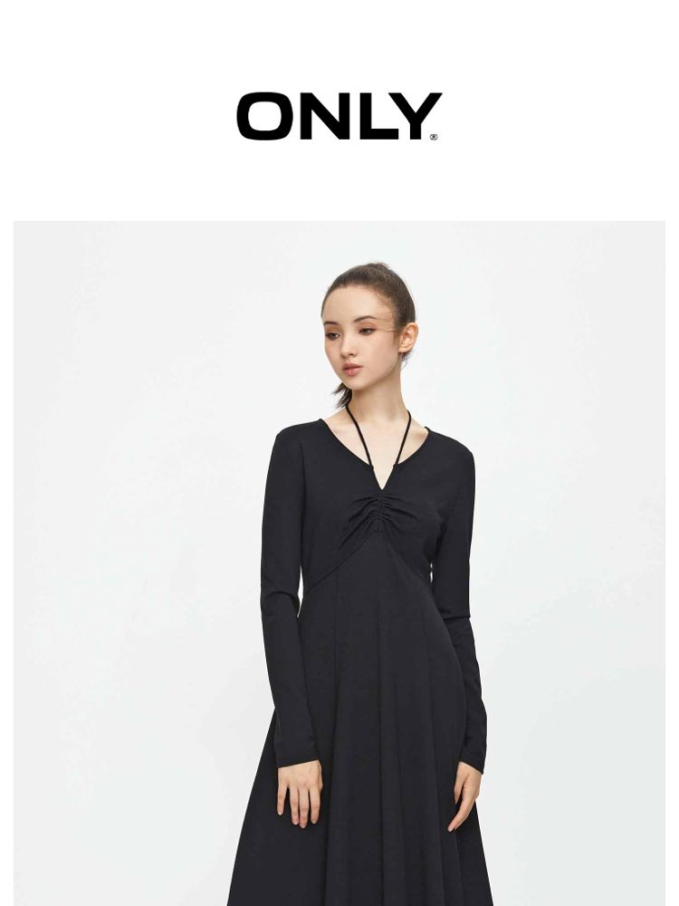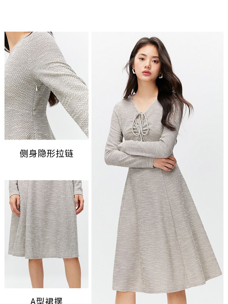 商品名称:【气质百搭】夏季V领长袖A字抽绳短款连衣裙女 277530