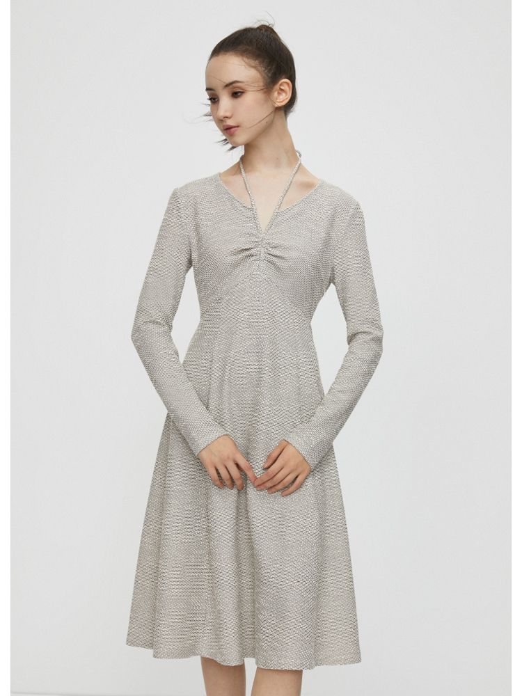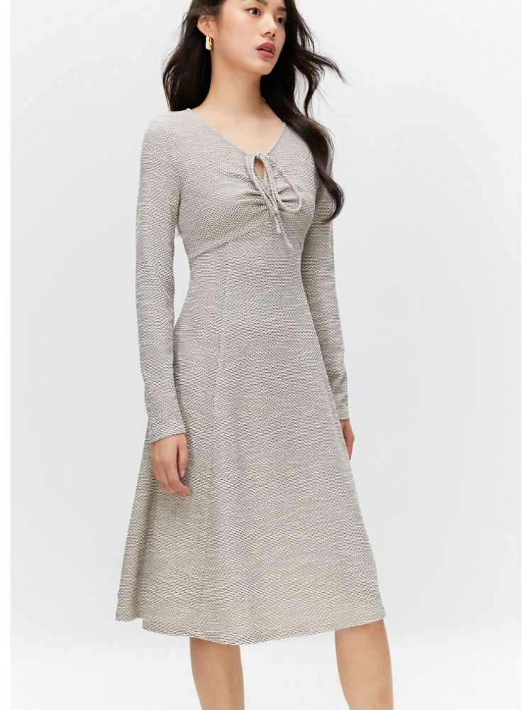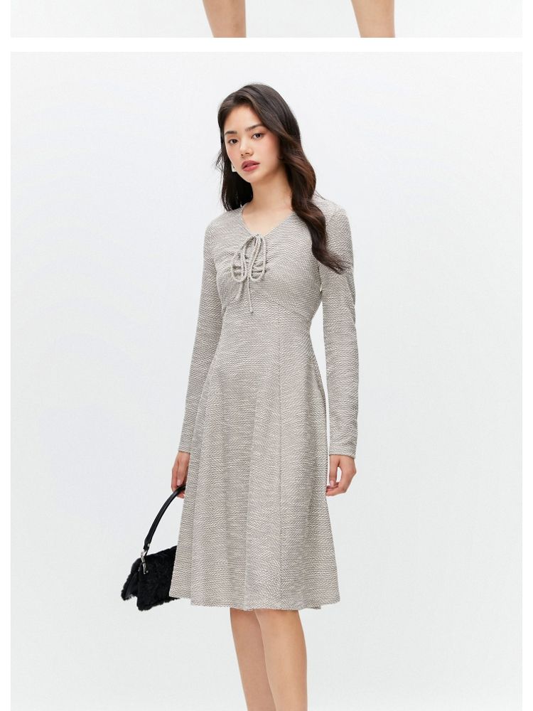 【气质百搭】夏季V领长袖A字抽绳短款连衣裙女 277530