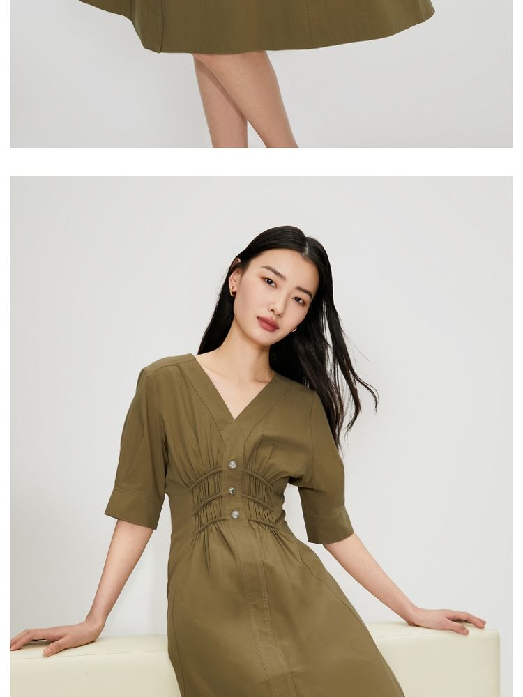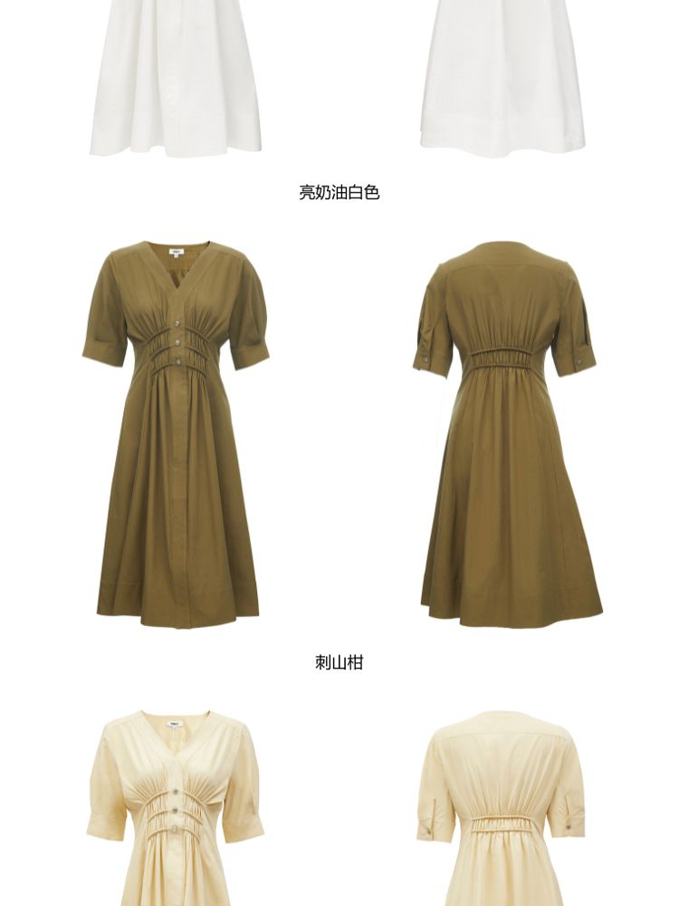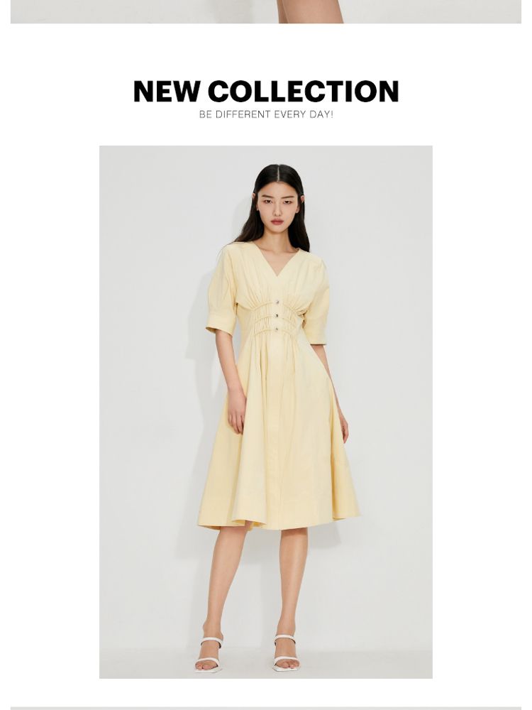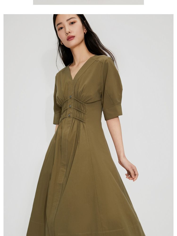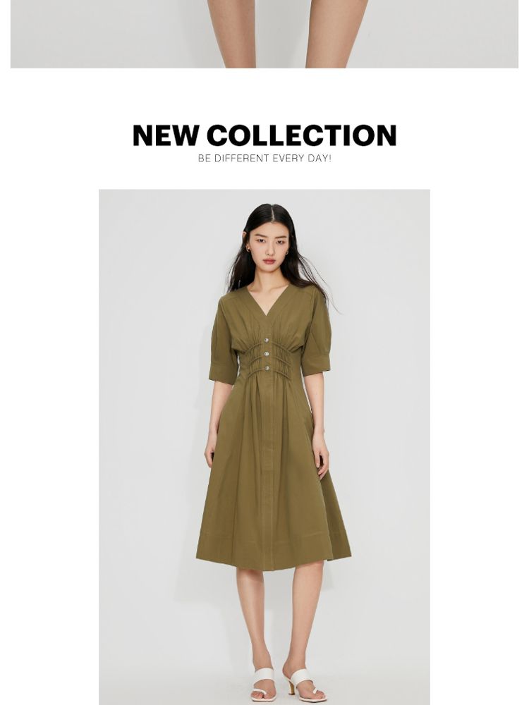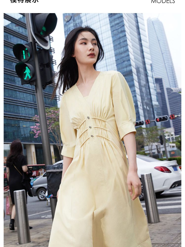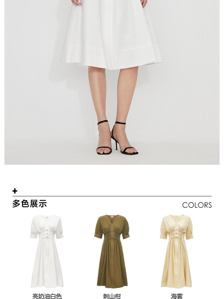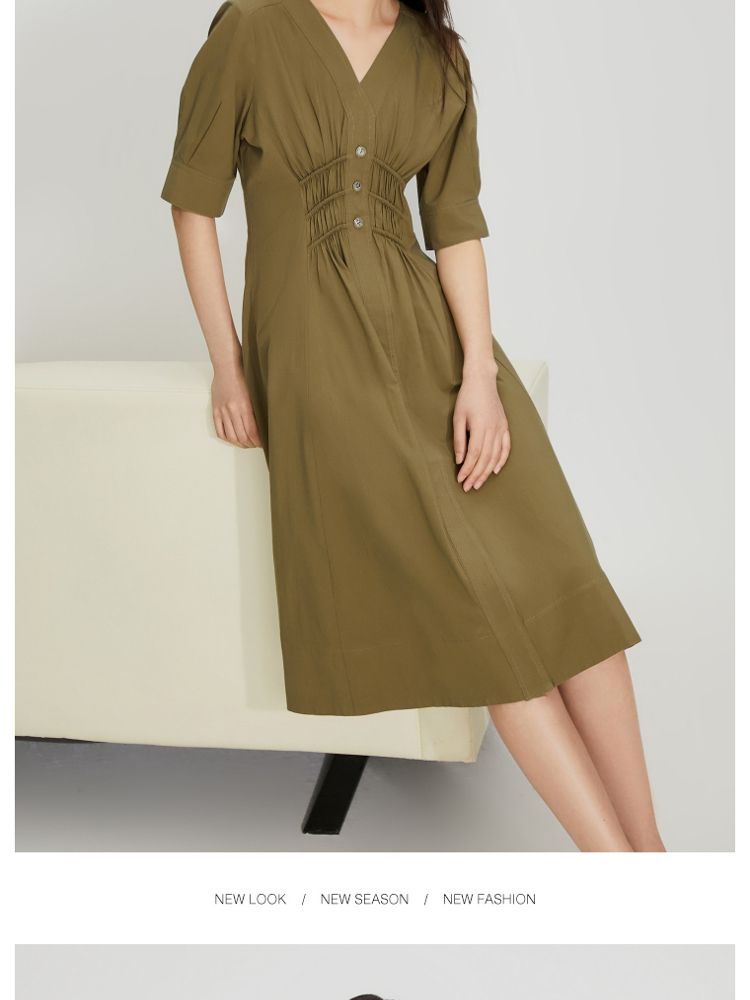 【质感高级】夏季V领收腰A字中长款连衣裙女 845146