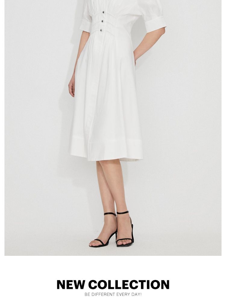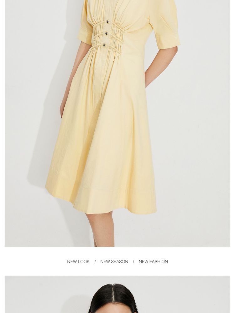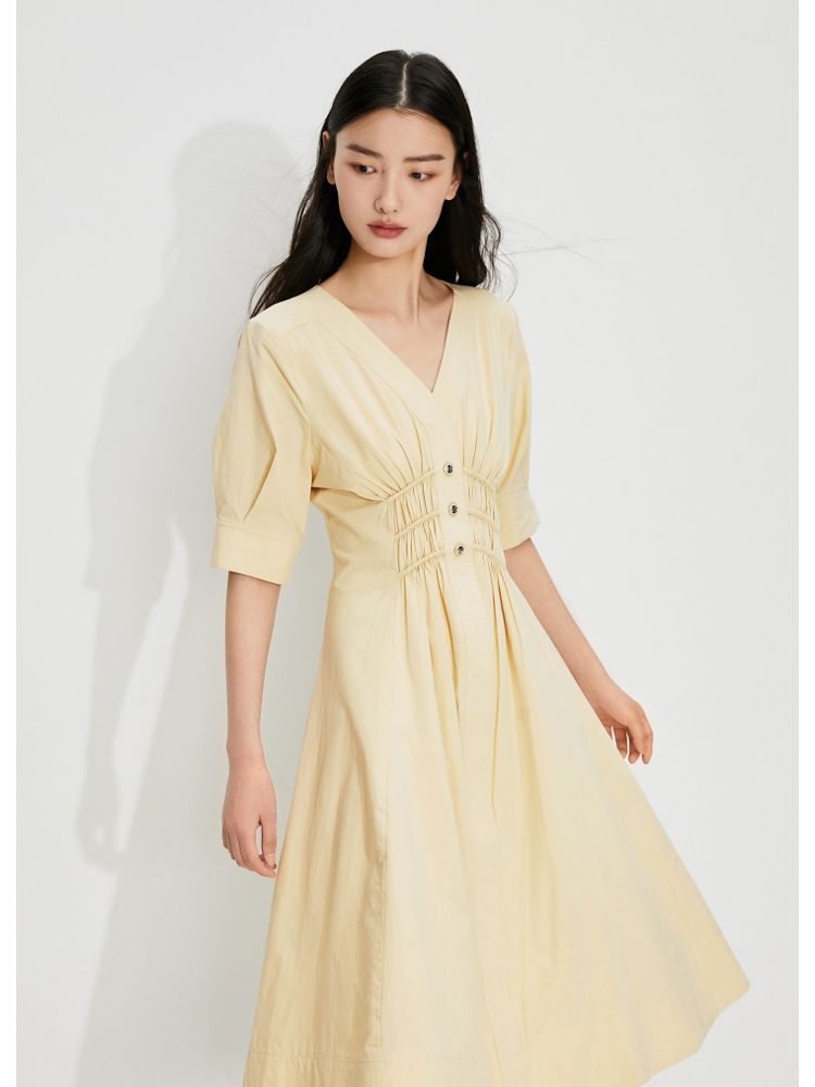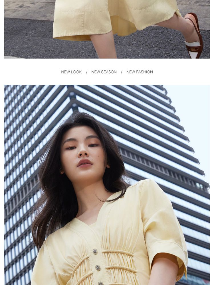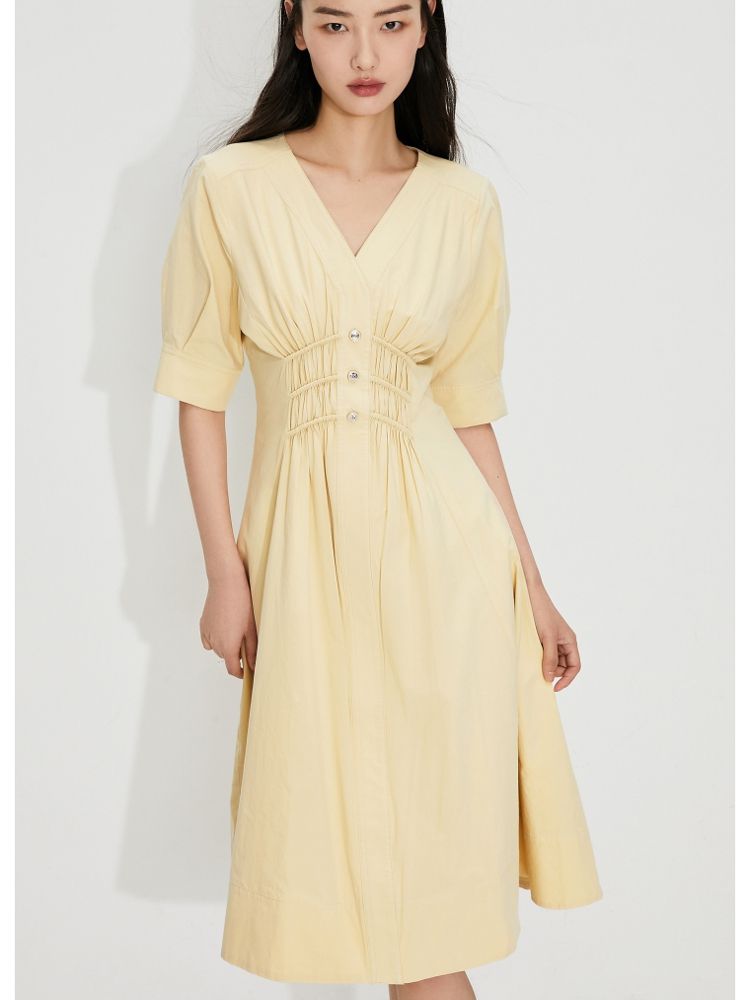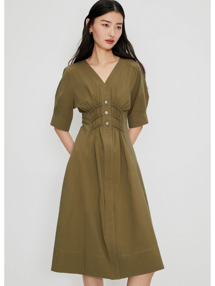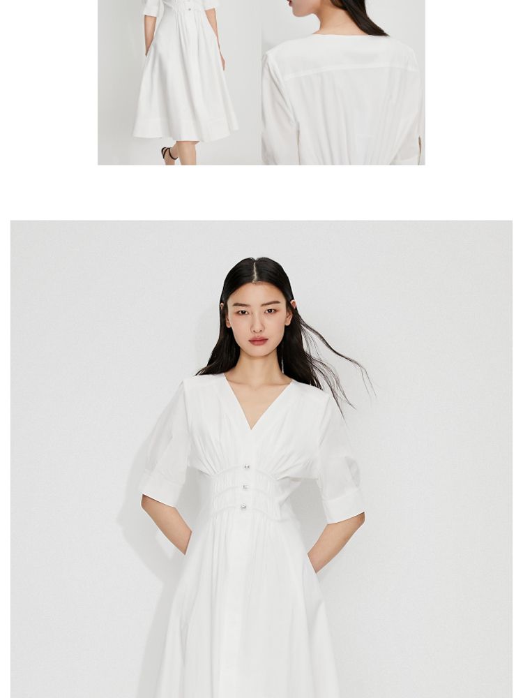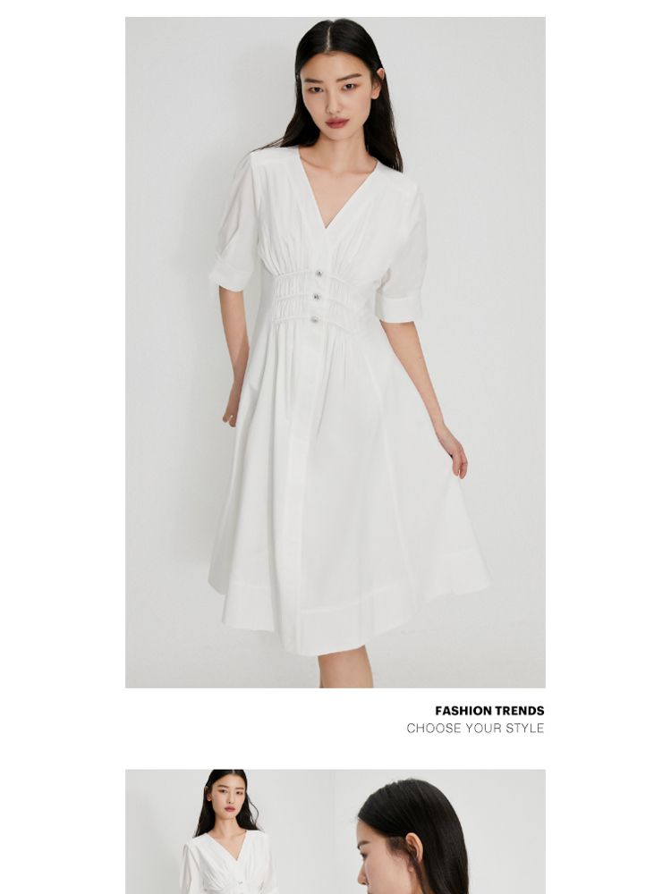 【质感高级】夏季V领收腰A字中长款连衣裙女 845146