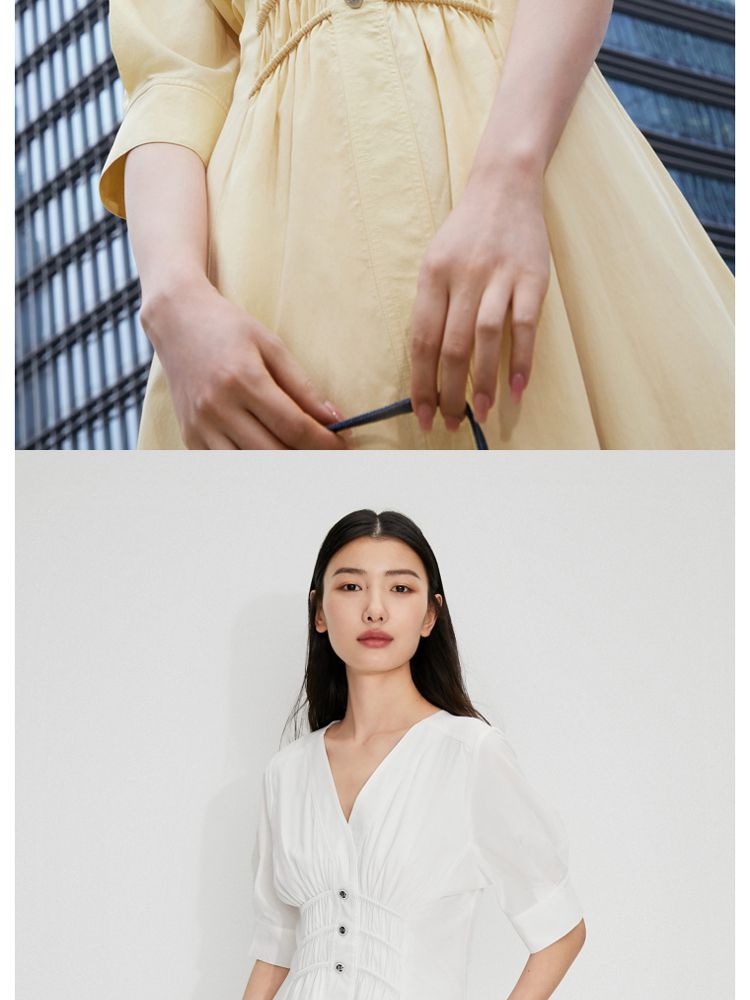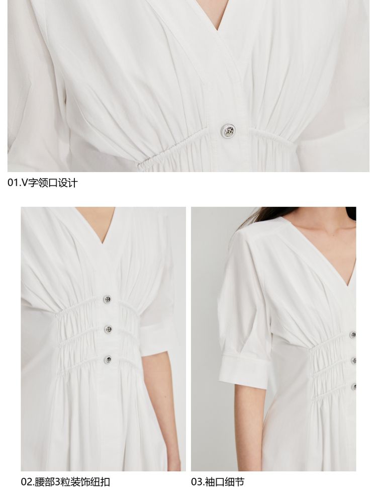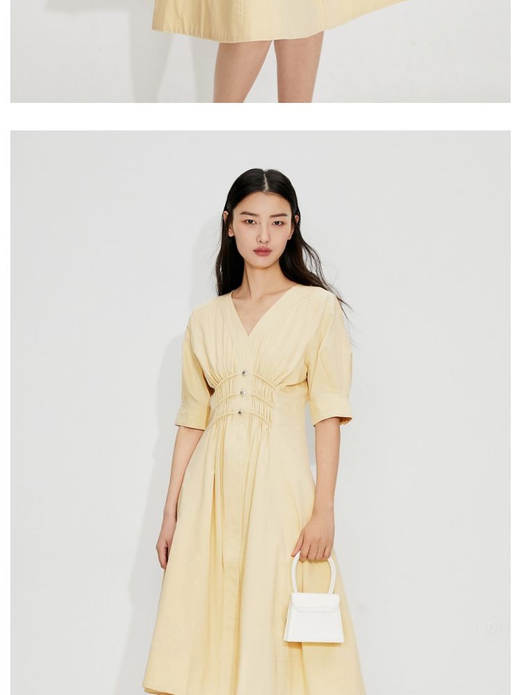 商品名称:【质感高级】夏季V领收腰A字中长款连衣裙女 845146