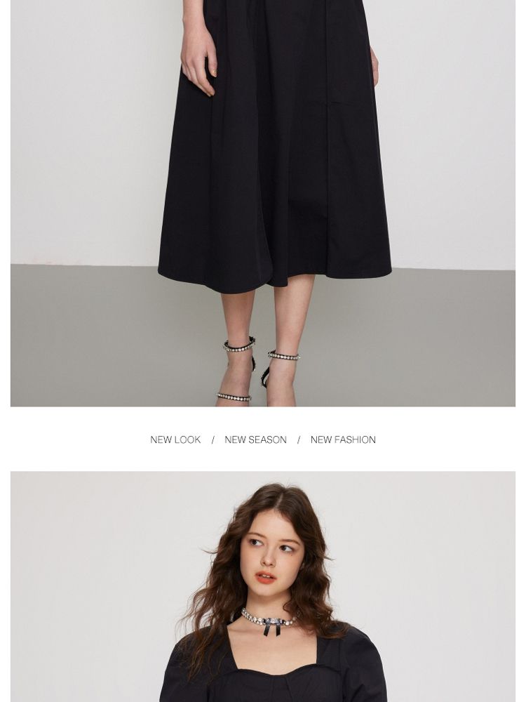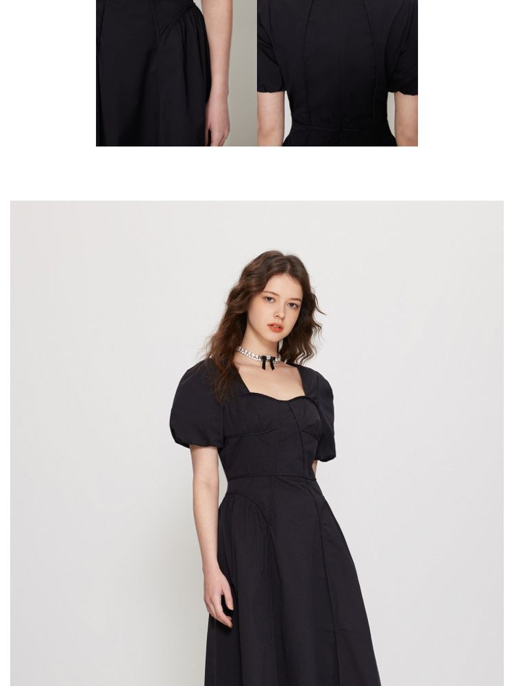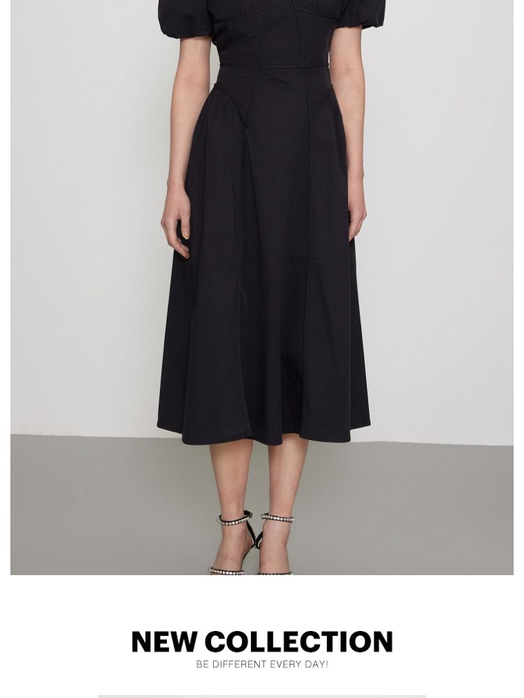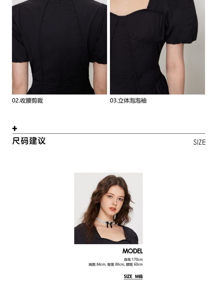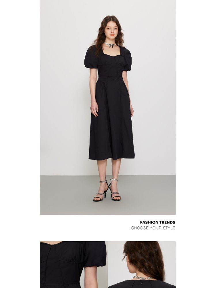 商品名称:【法式长裙】夏季收腰显瘦黑色中长裙气质连衣裙女 829338