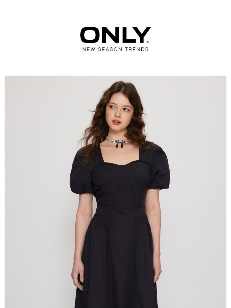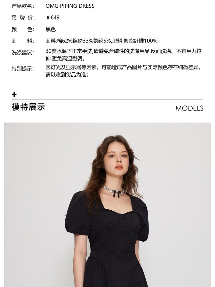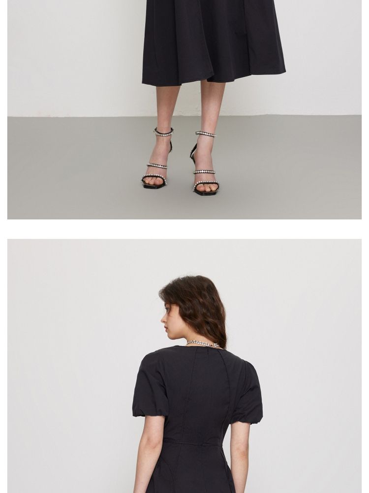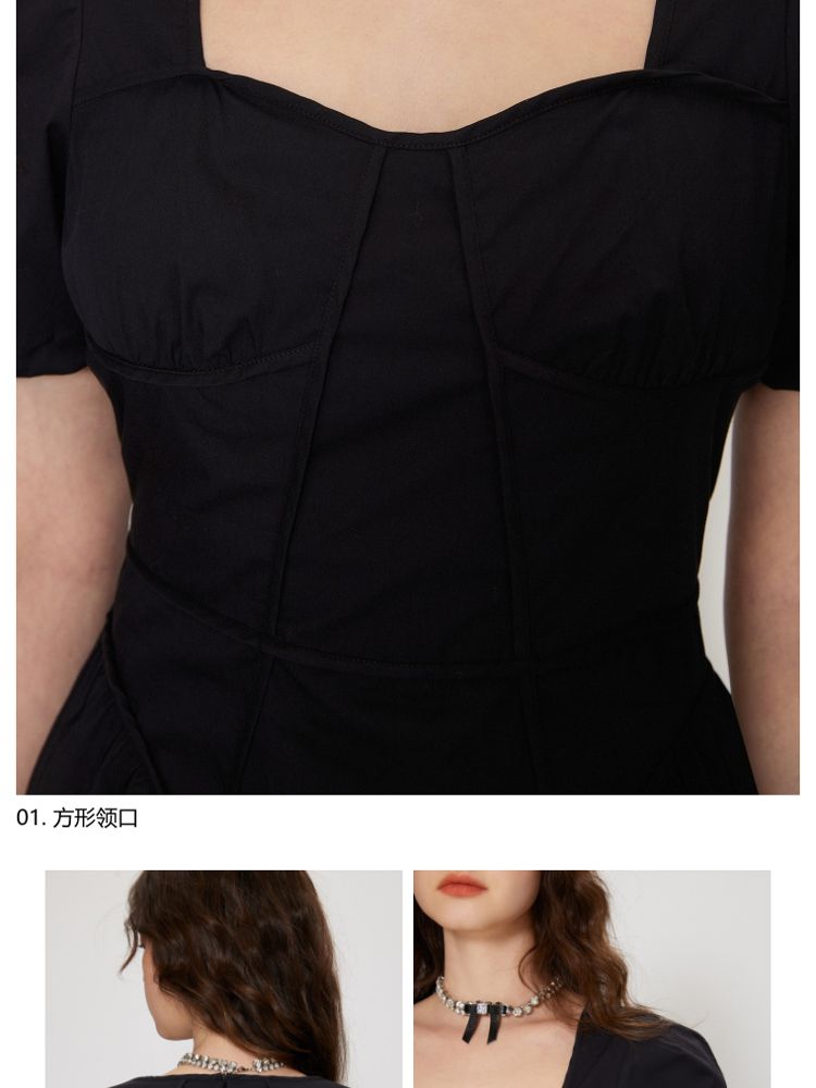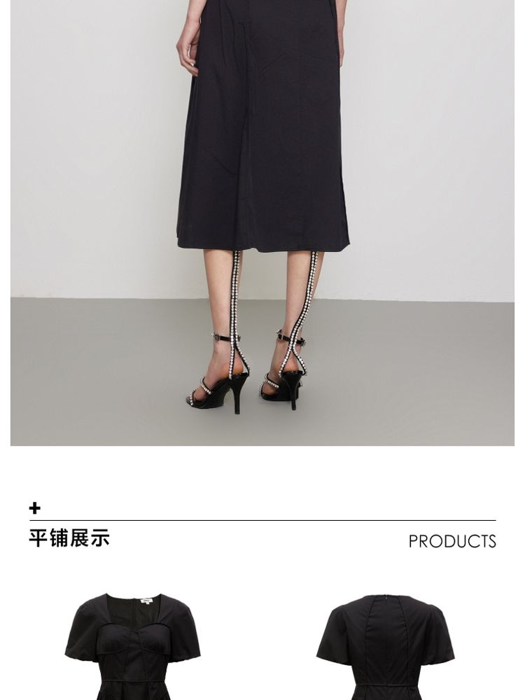 商品名称:【法式长裙】夏季收腰显瘦黑色中长裙气质连衣裙女 829338