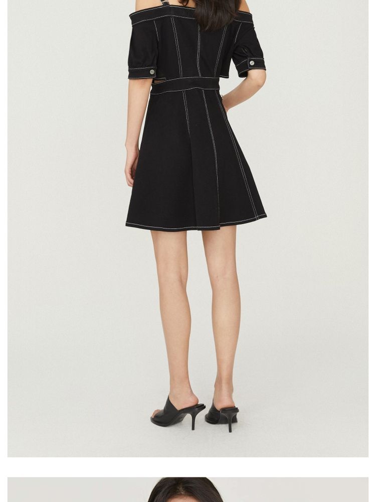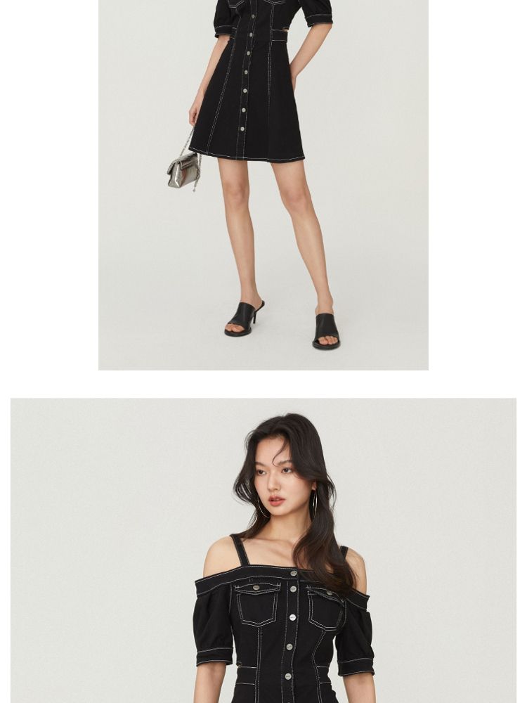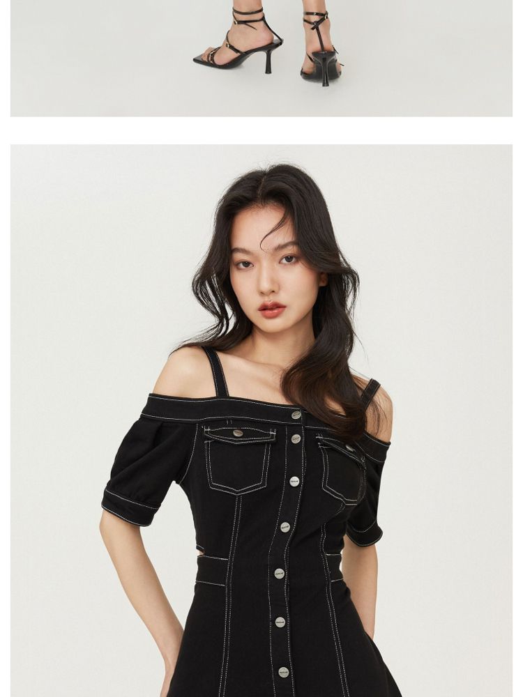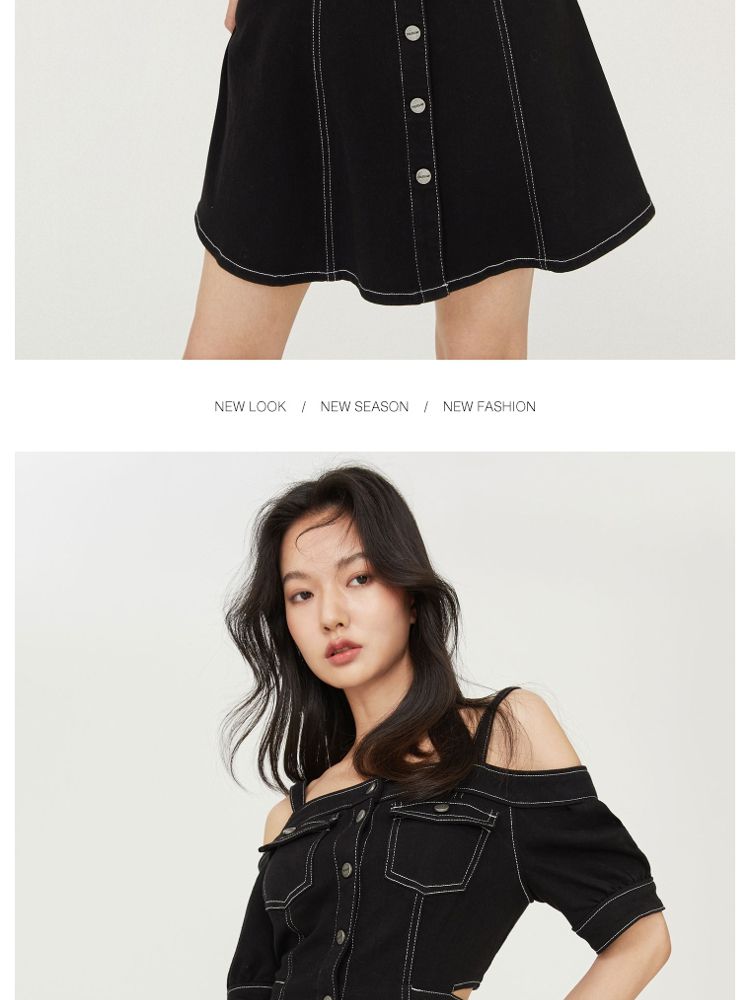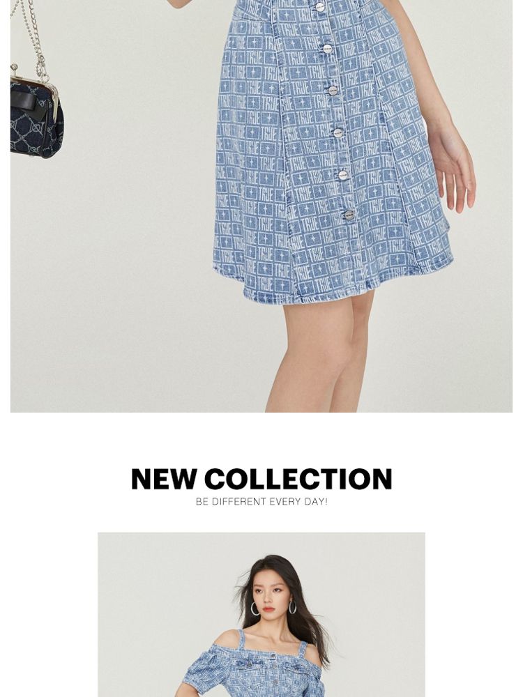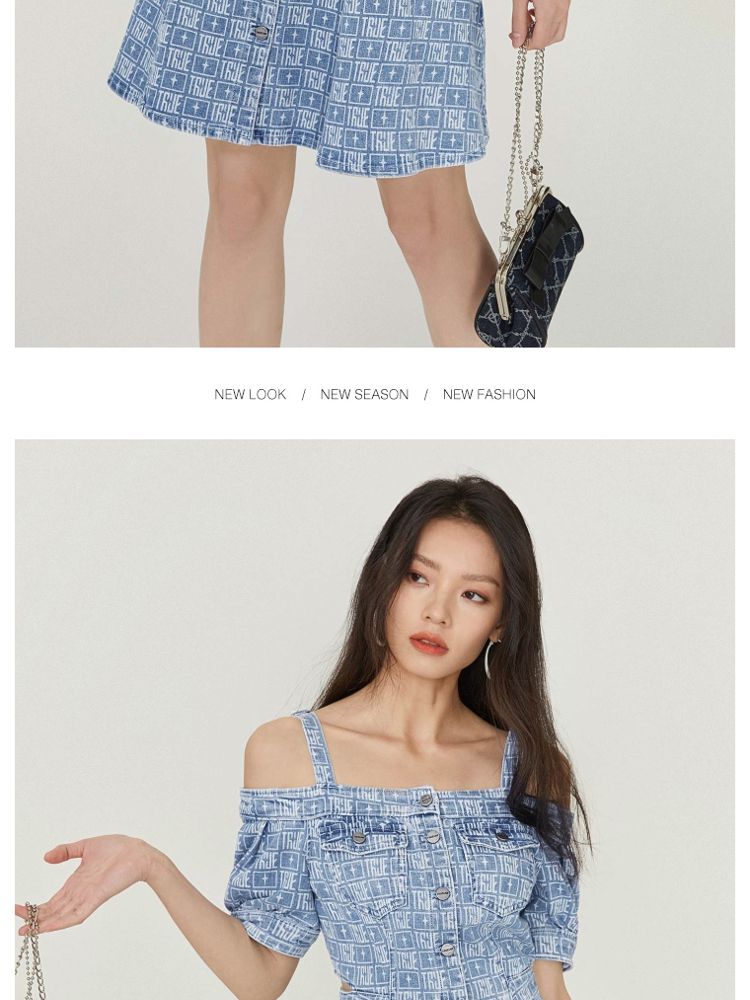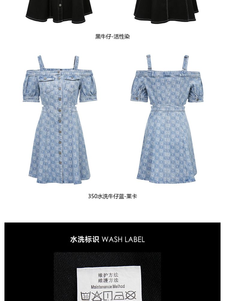 商品名称:【时尚休闲】夏季休闲满印一字肩A字牛仔短款连衣裙女 003802