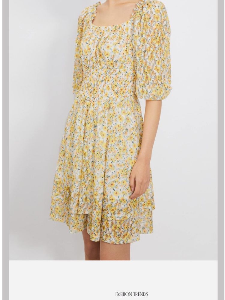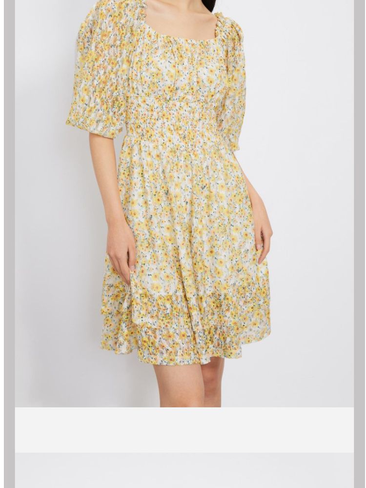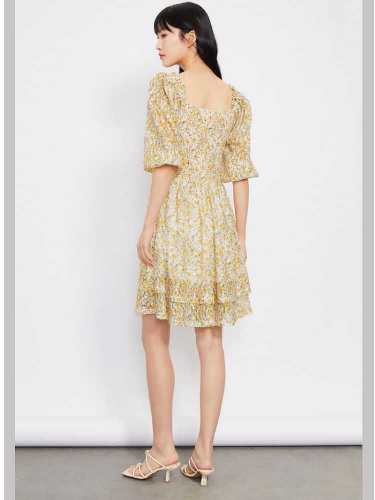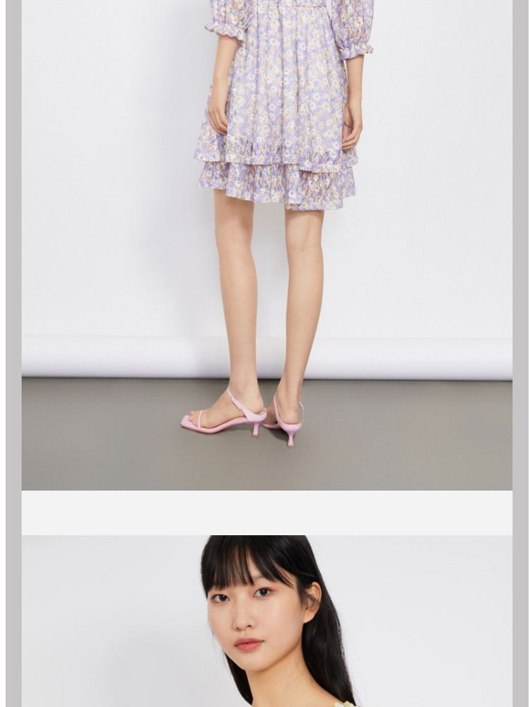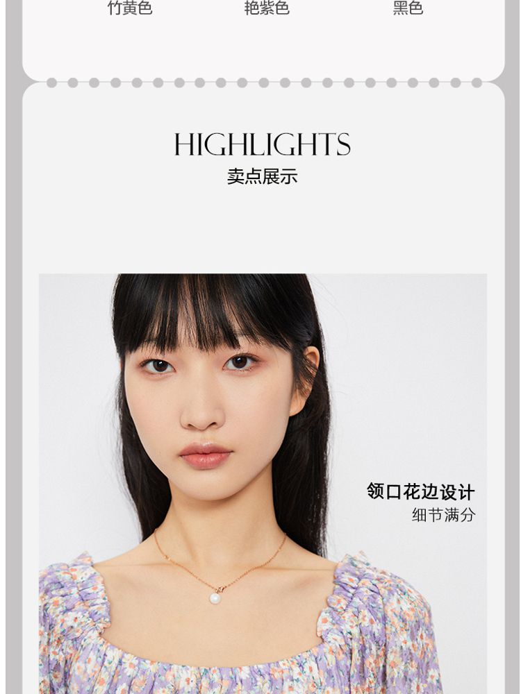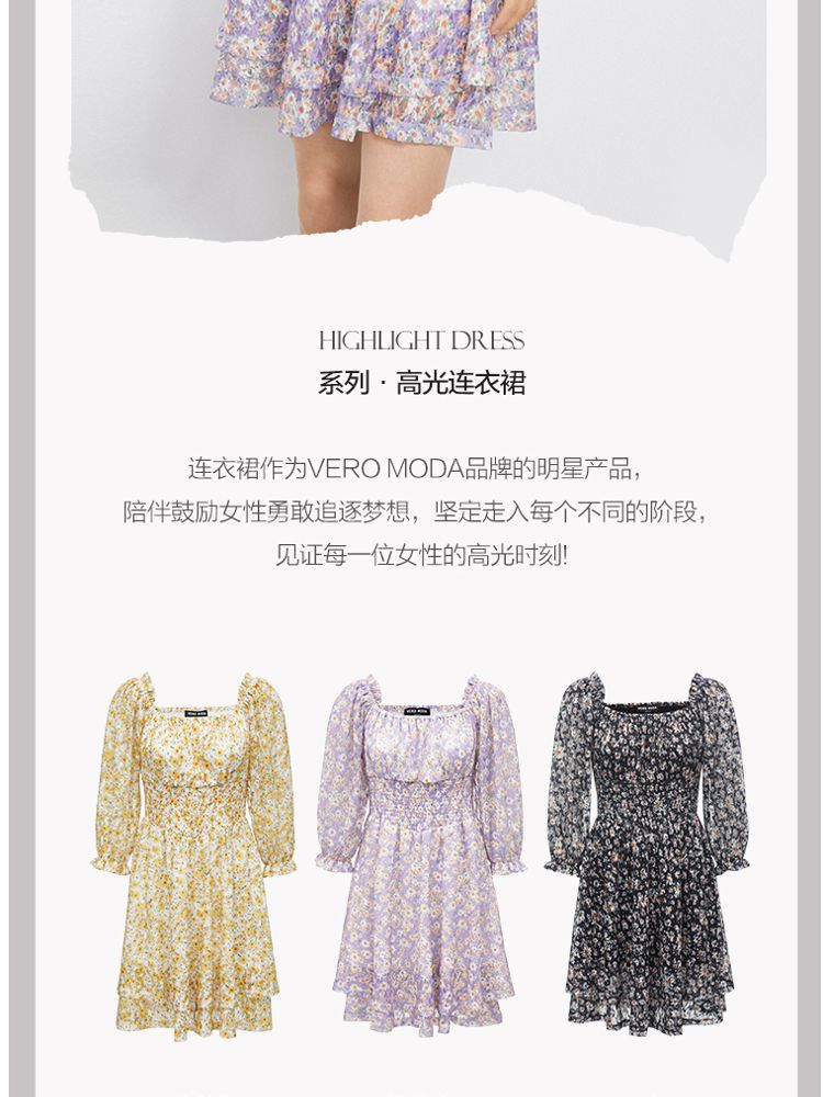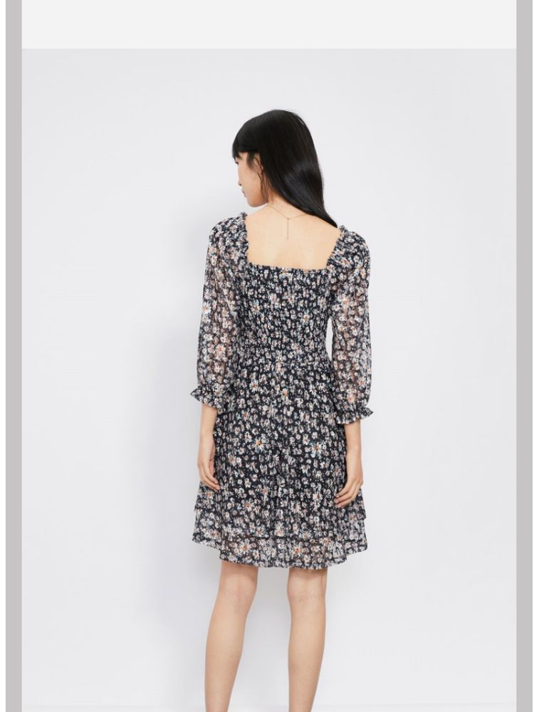 商品名称:【甜美复古小清新】春夏专柜同款方领七分袖蕾丝印花连衣裙百搭 689809