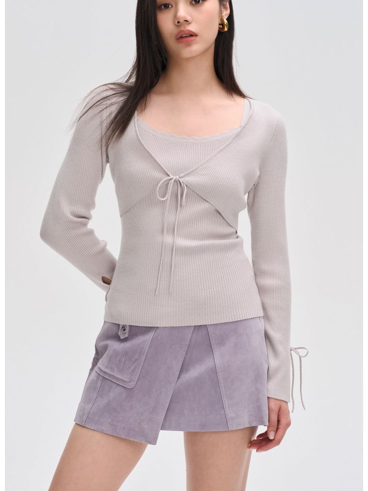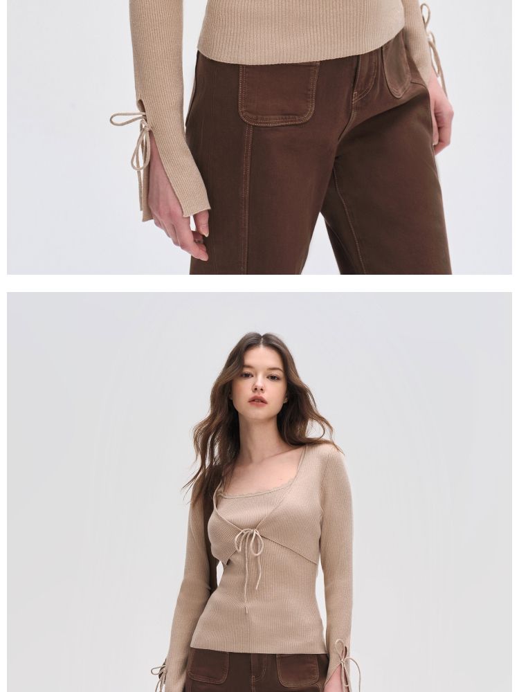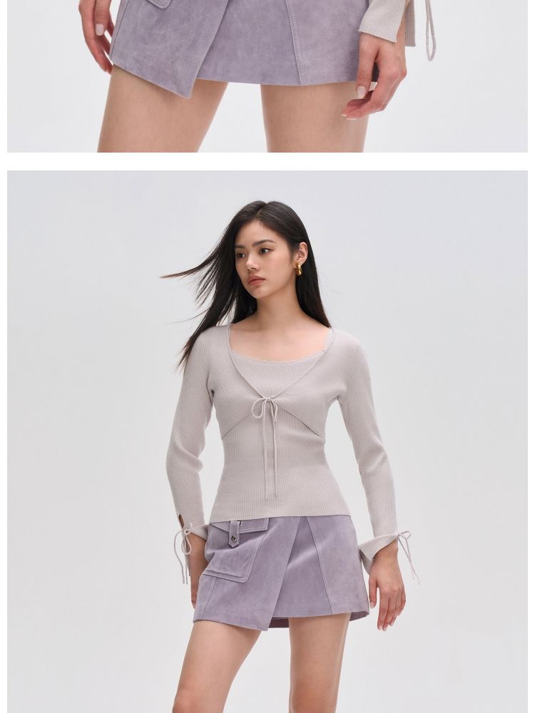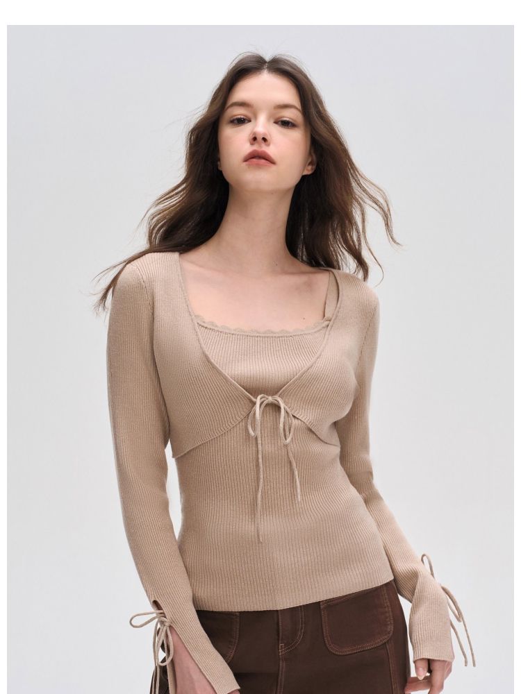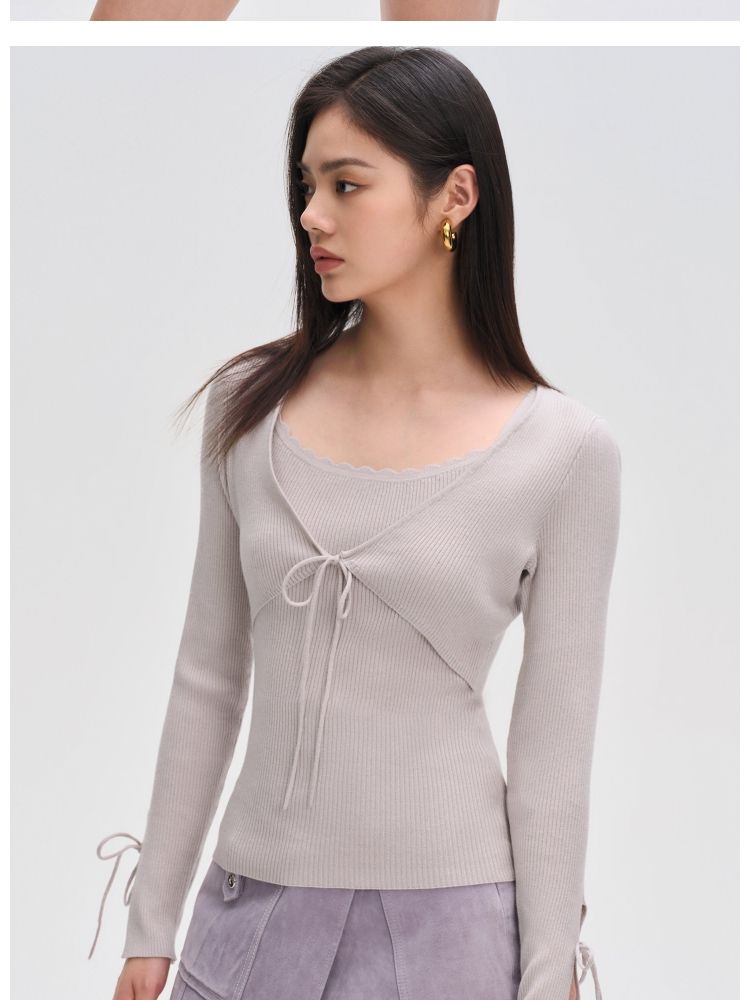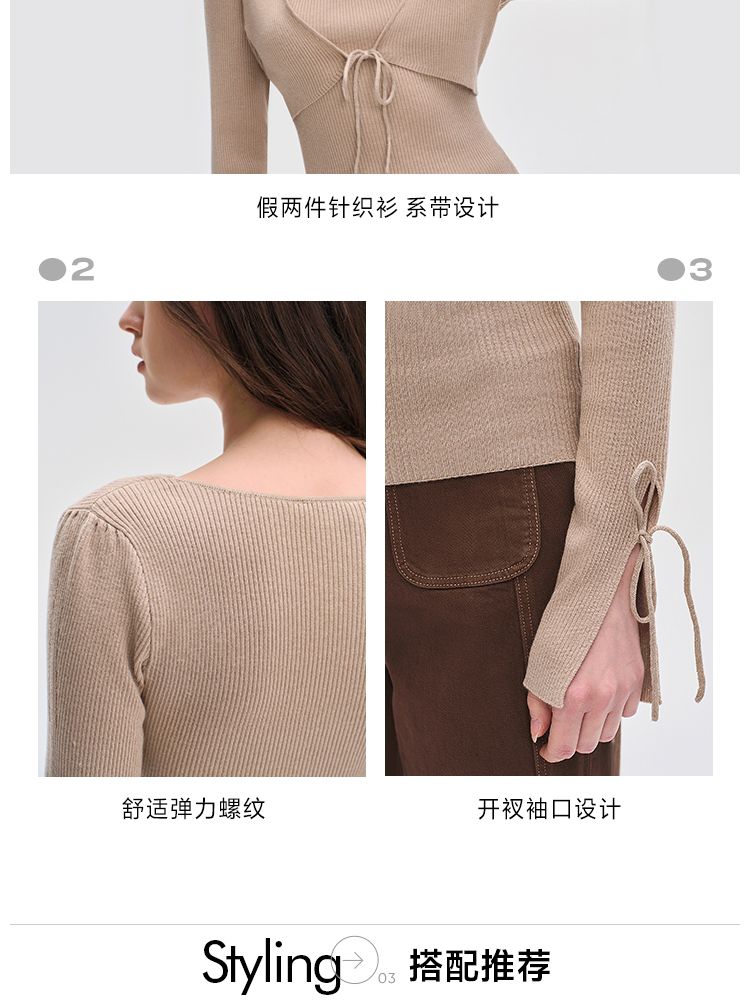 【假两件设计】春季修身弹力开叉袖口针织衫女 532826