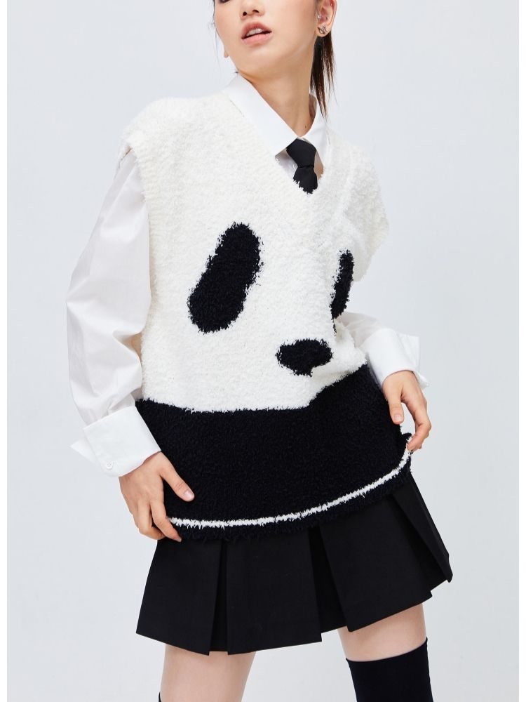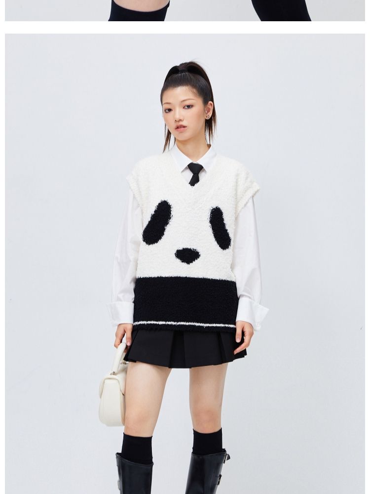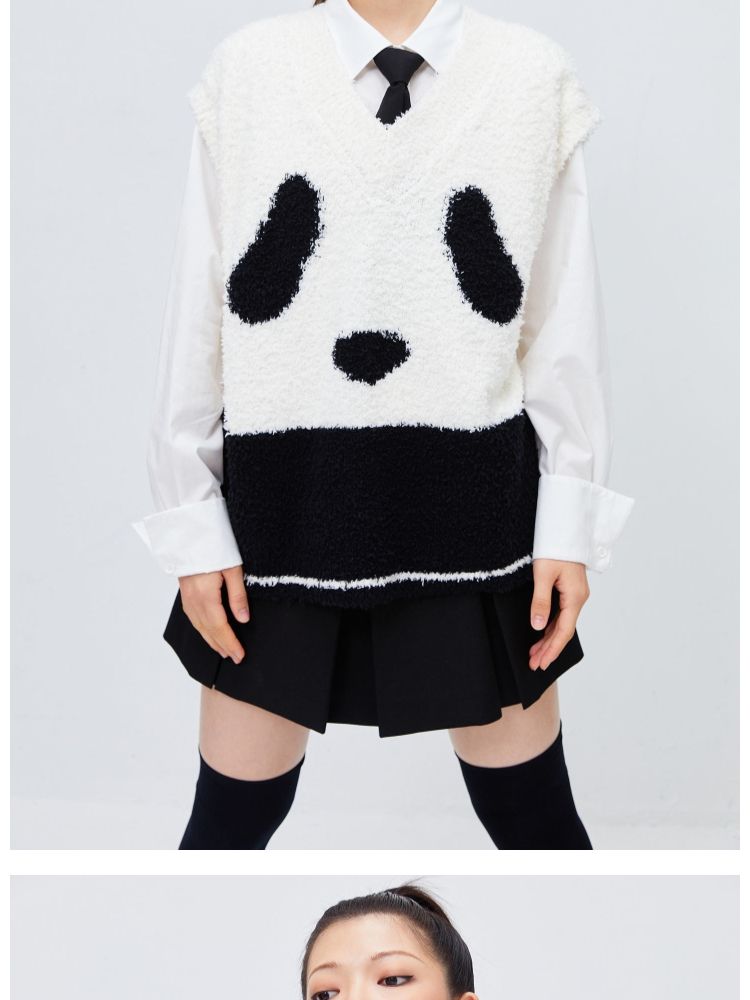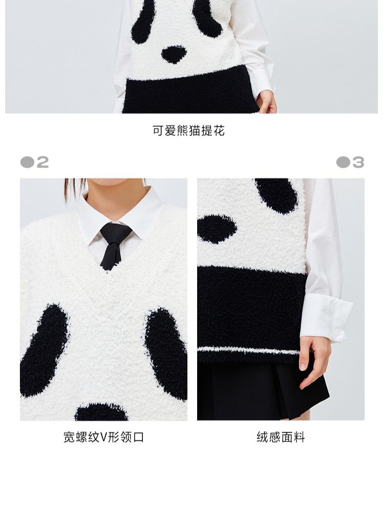 商品名称:【可爱熊猫】春季休闲V领无袖宽松针织衫女 680474