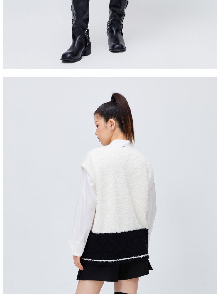 【可爱熊猫】春季休闲V领无袖宽松针织衫女 680474
