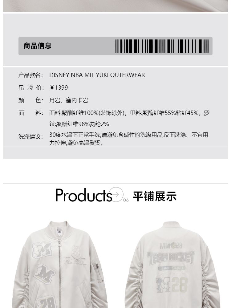 商品名称:【NBA联名款】春季迪士尼NBA联名款棒球服短外套女 865690