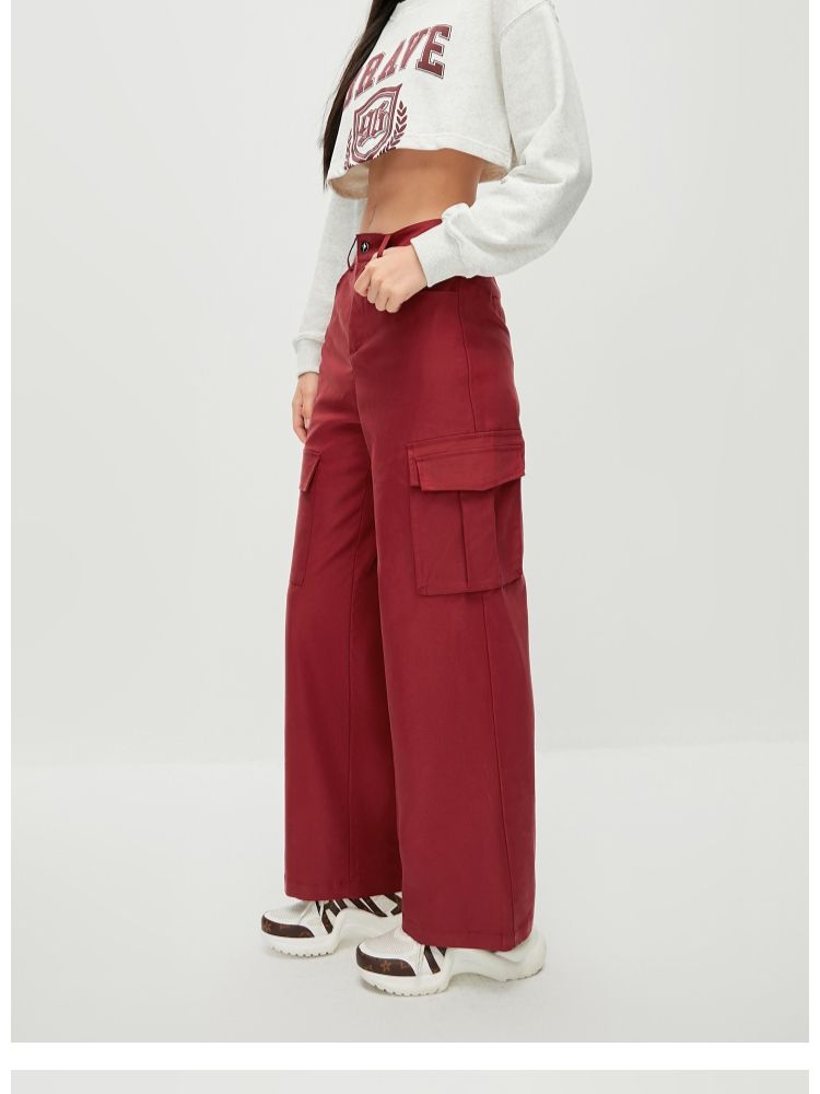 商品名称:【高腰直筒】夏季休闲百搭直筒纯色工装裤休闲裤女 165978