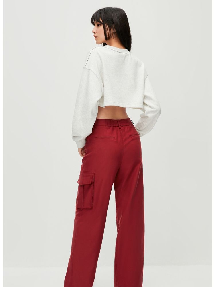【高腰直筒】夏季休闲百搭直筒纯色工装裤休闲裤女 165978