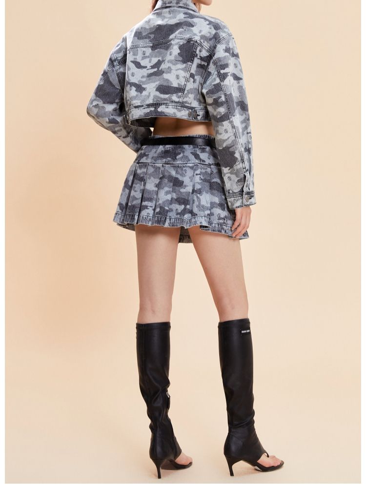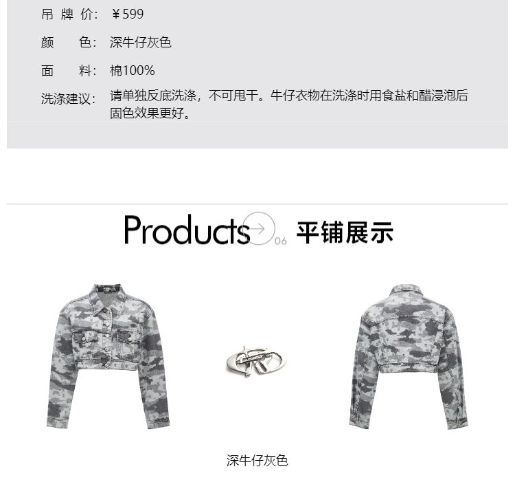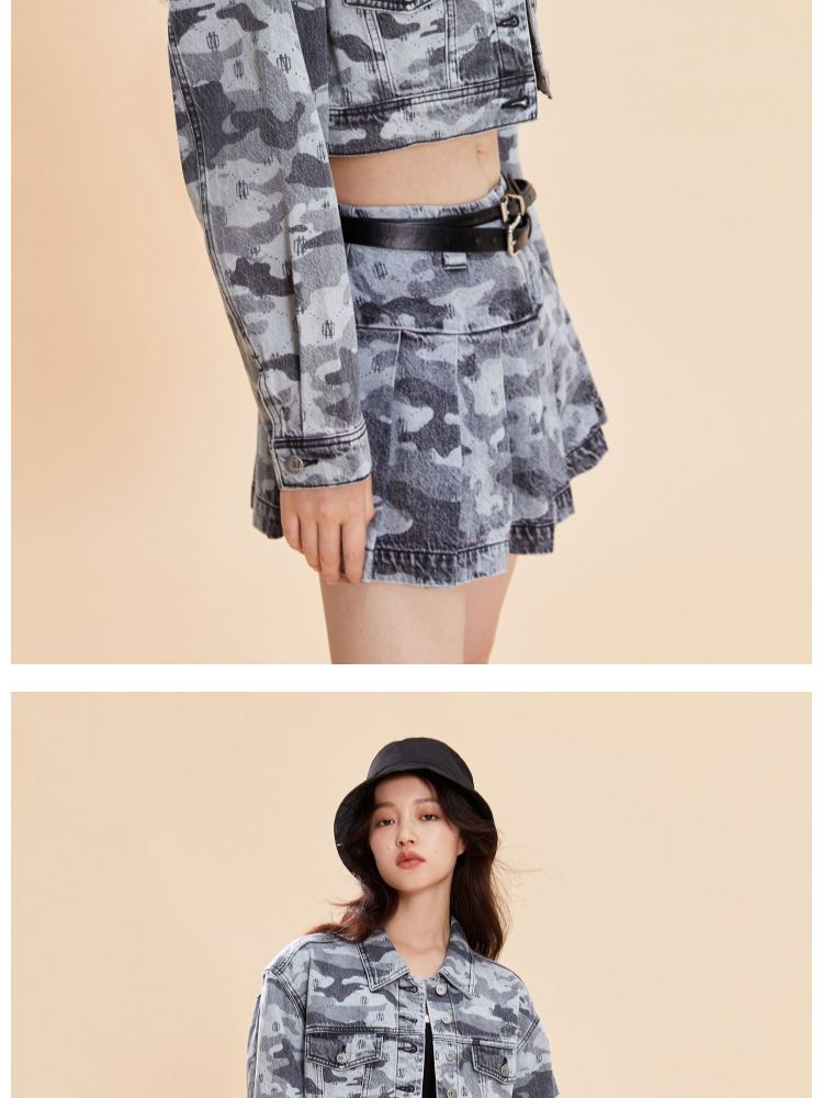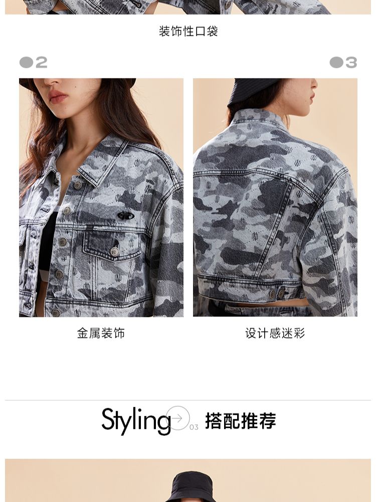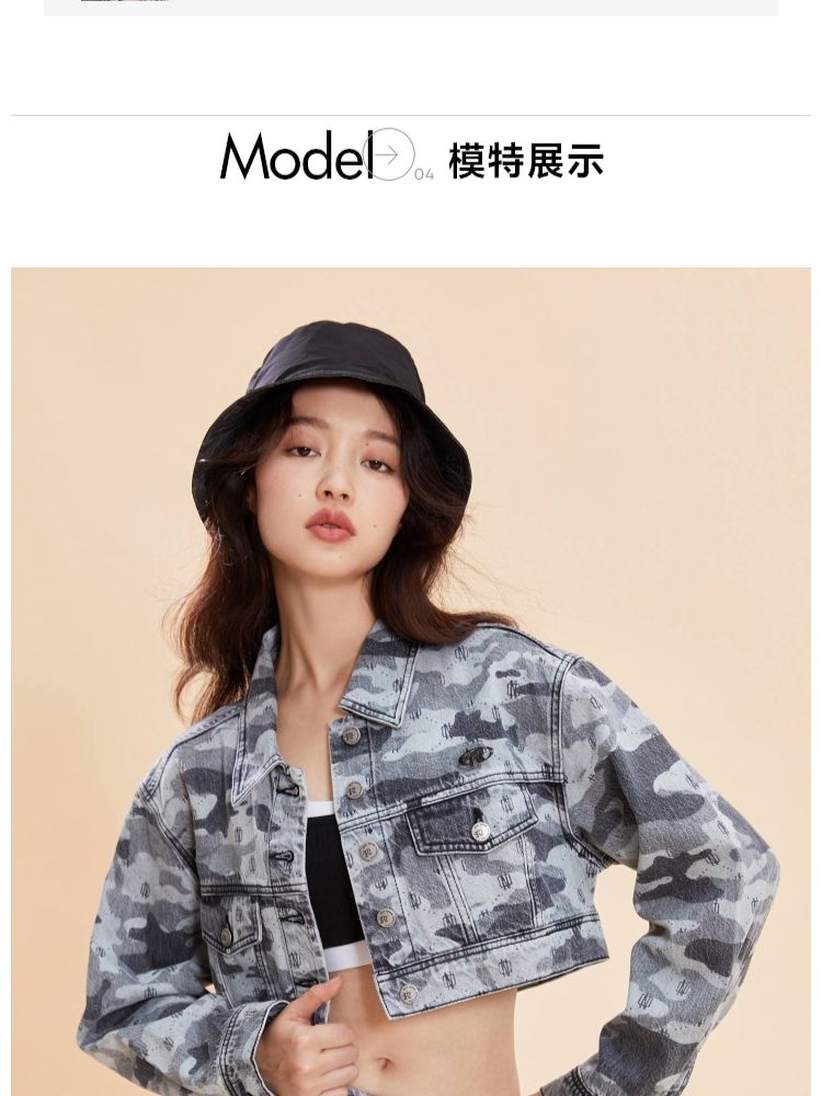 商品名称:【金属装饰】春季设计感迷彩短款牛仔外套女 330458