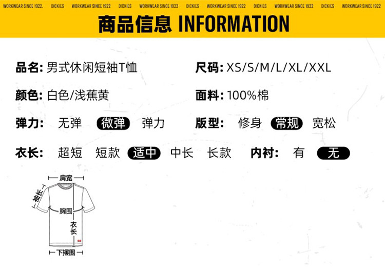 商品名称:Dickies字母印花男式纯棉休闲短袖T恤 DK010361 249680
