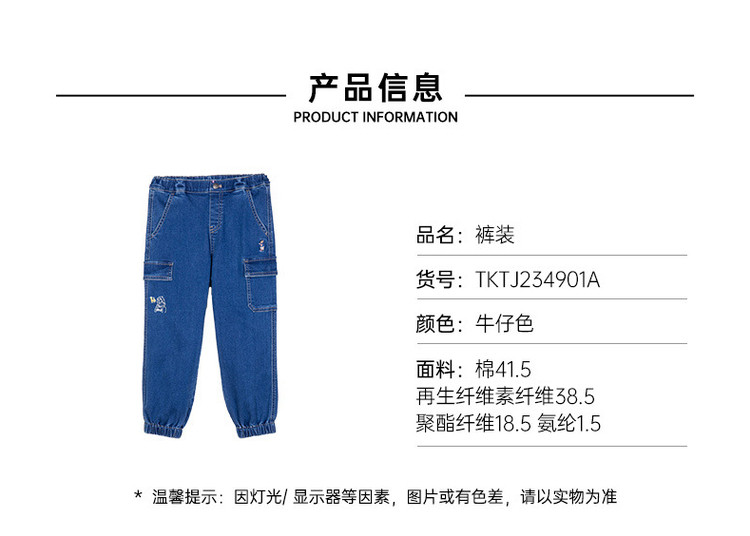 商品名称:【牛仔裤】小熊童装男童春季时尚工装风牛仔裤 938625