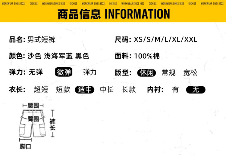 商品名称:Dickies短裤男春夏经典五分下装短裤 DK010576 160976