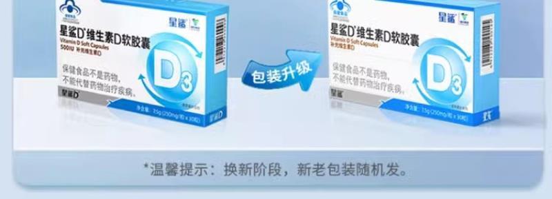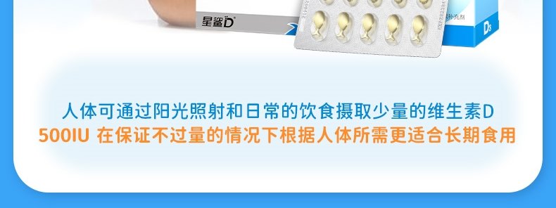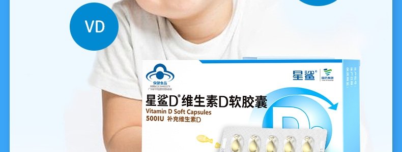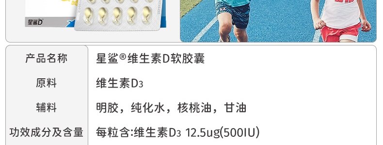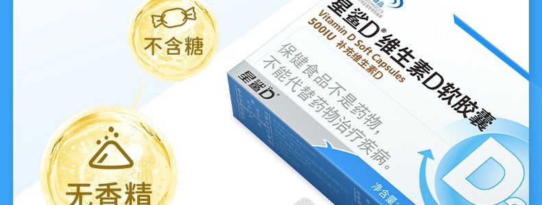 商品名称:星鲨 维生素D 500IU 30粒*5盒(下单1:1赠维D 10粒装)