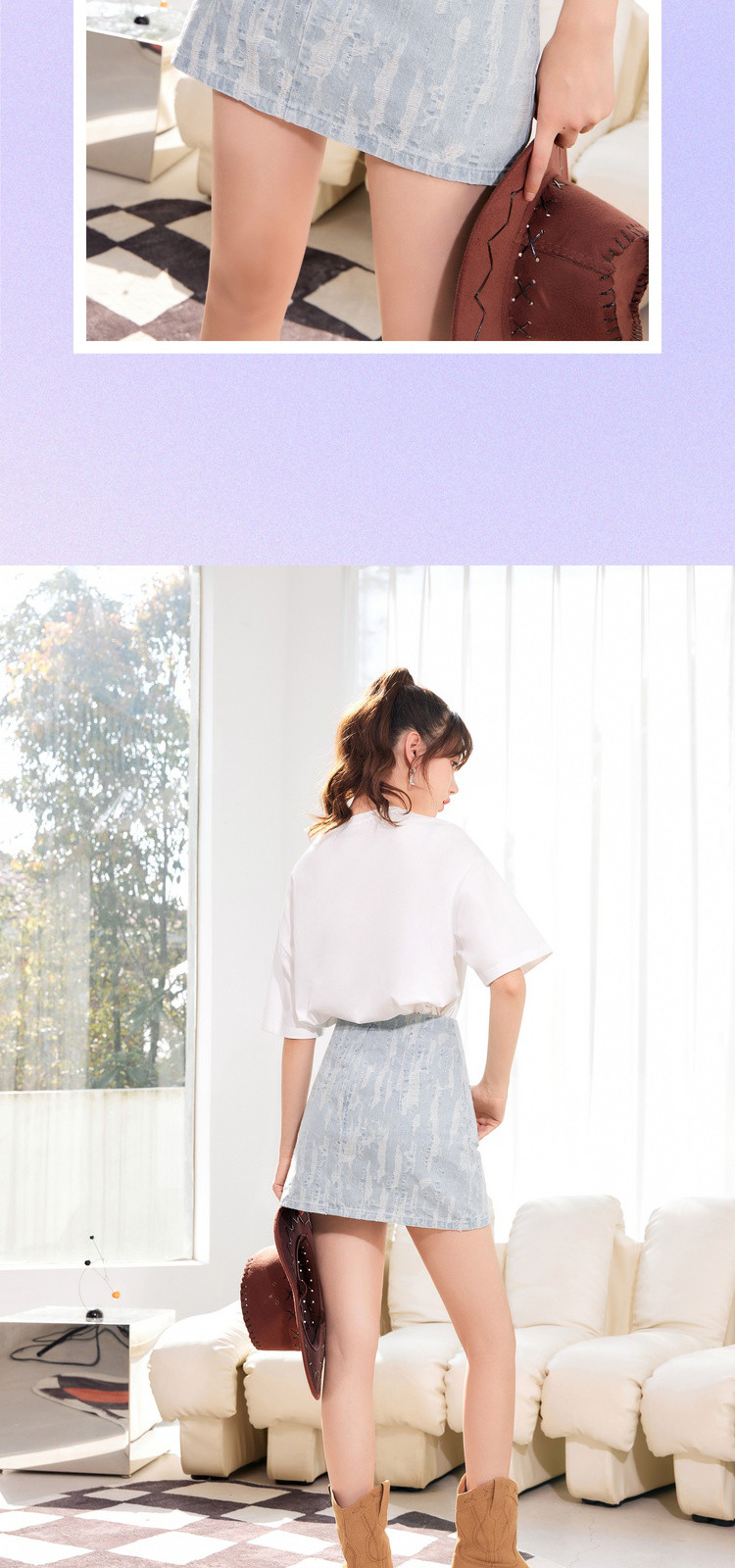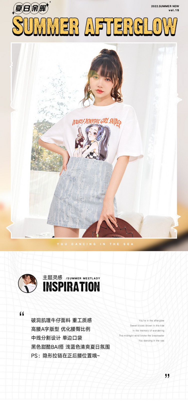 商品名称:韩版高腰牛仔半身裙女显瘦小众a字辣妹短裙子 701460