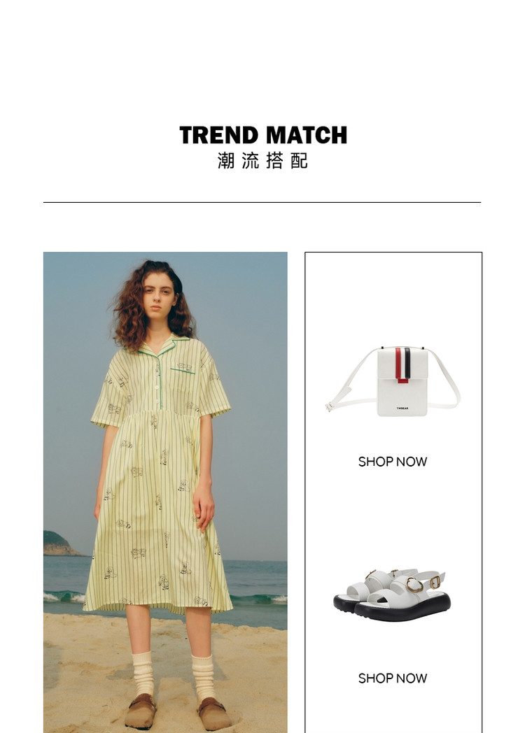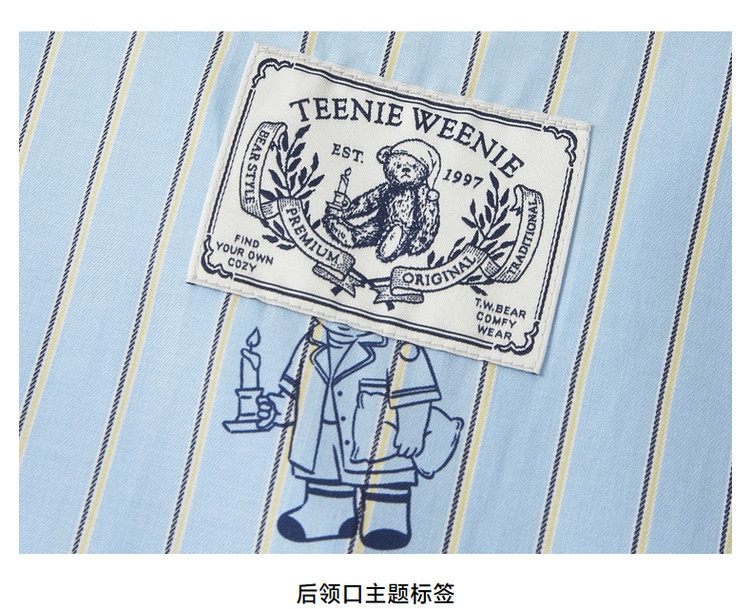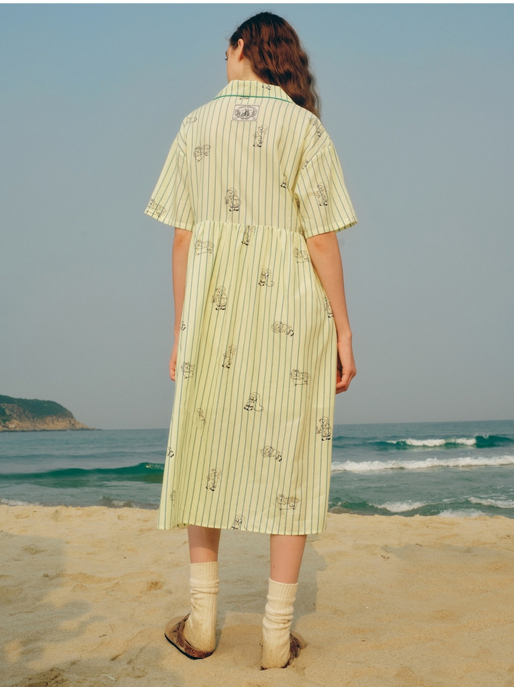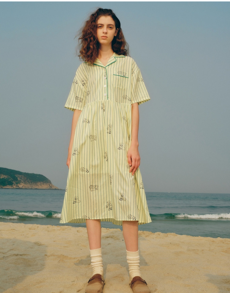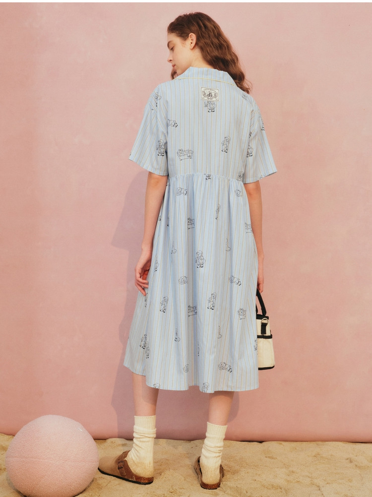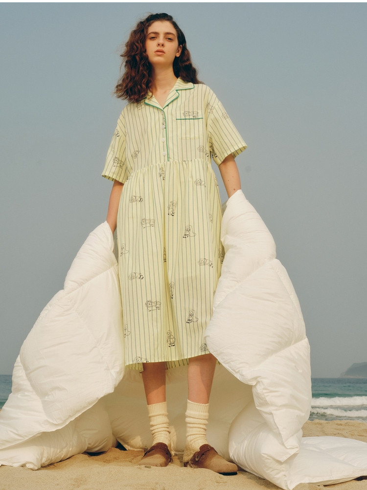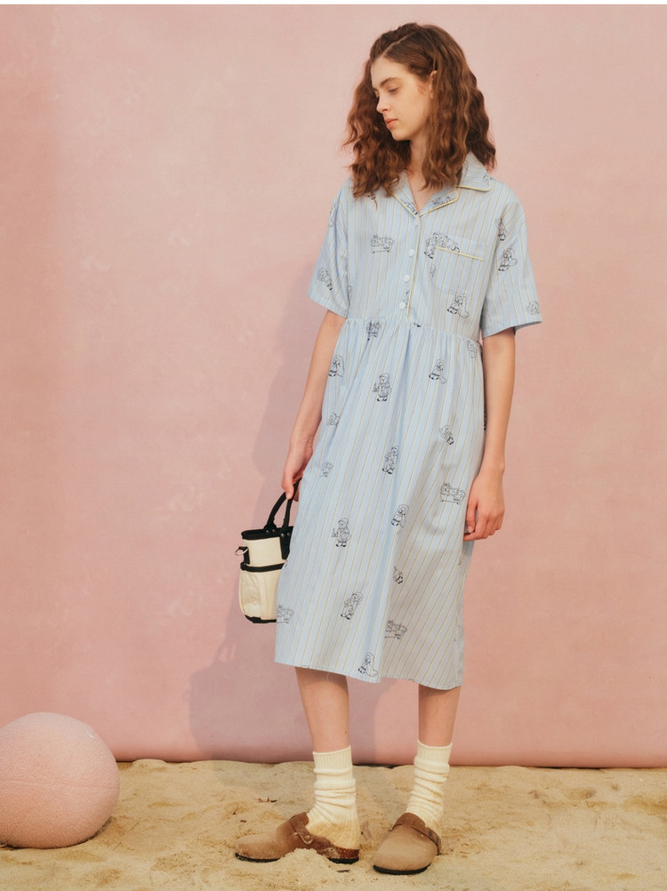 小熊半袖满身刺绣条纹连衣裙家居服女夏休闲舒适睡衣 255169