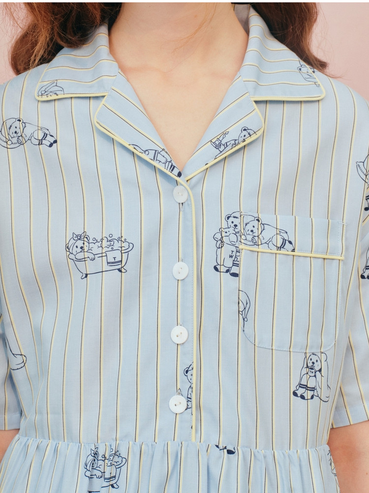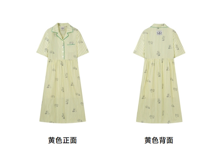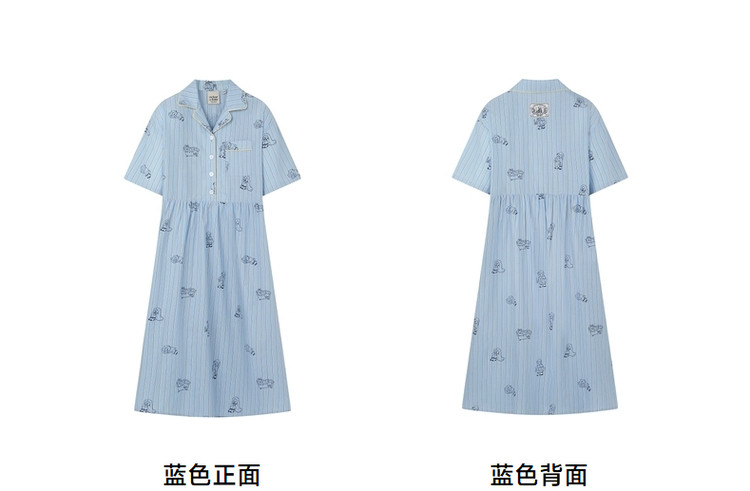 商品名称:小熊半袖满身刺绣条纹连衣裙家居服女夏休闲舒适睡衣 255169