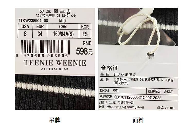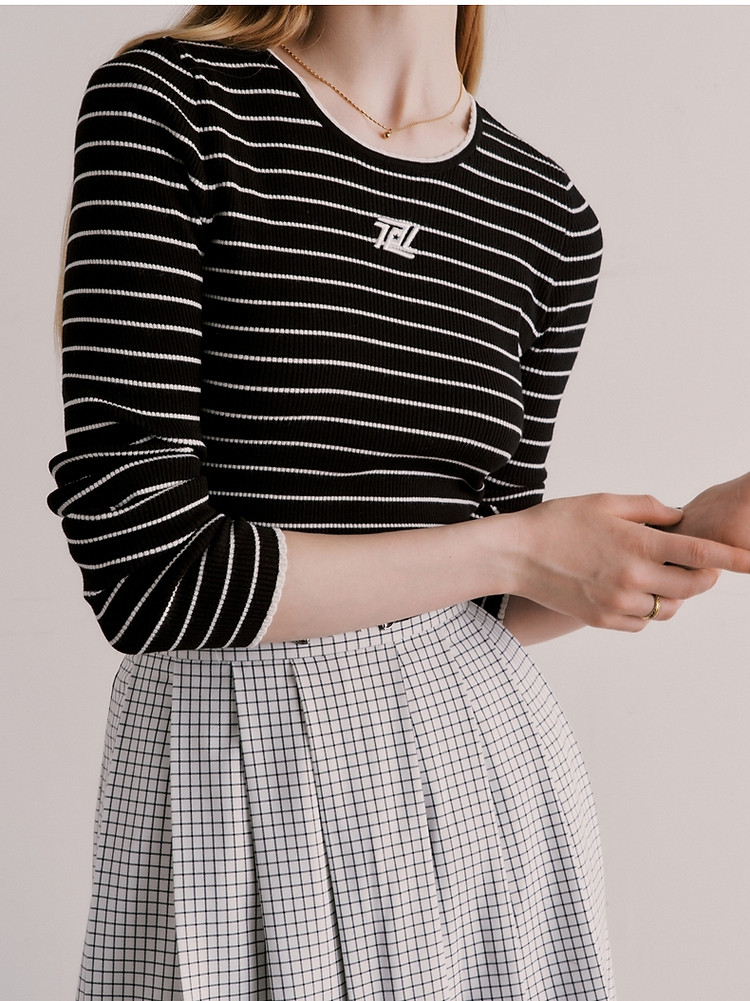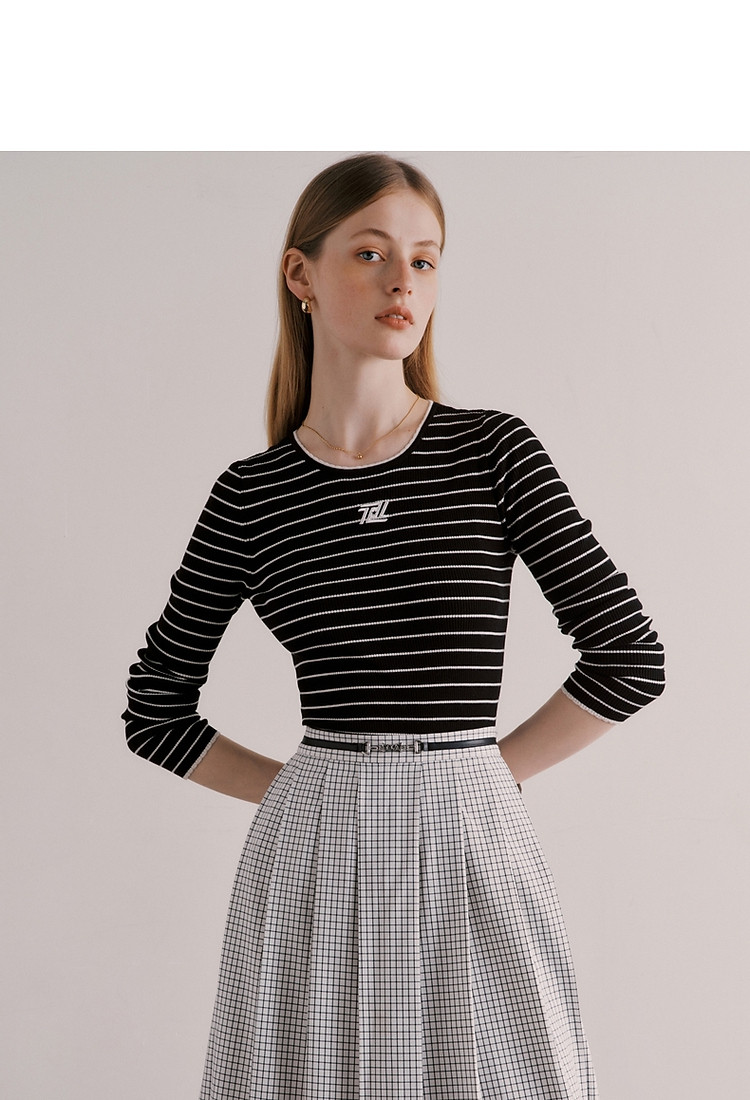 商品名称:小熊春秋款学院风条纹内搭黑色打底衫毛衣针织衫上衣女 793985