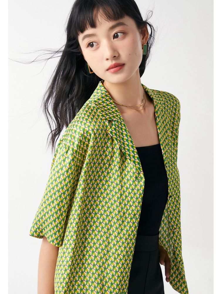 雪纺宽松五分袖短款翻领个性衬衫女 877201