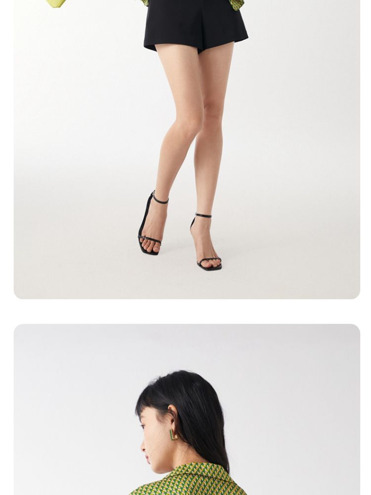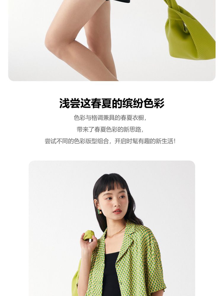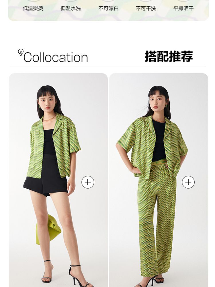 商场同款春季法式锁链印花飘逸撞色贴袋翻领长袖衬衣 658399