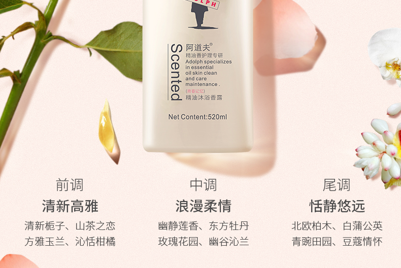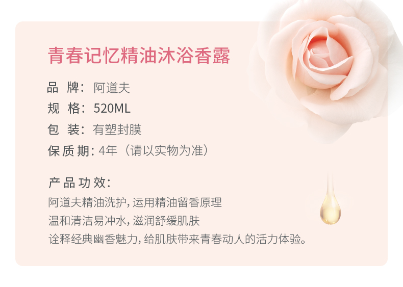 商品名称:阿道夫 精油沐浴露 520ml 青春记忆香氛沐浴液 嫩滑滋润沐浴乳沐浴香露经典留香