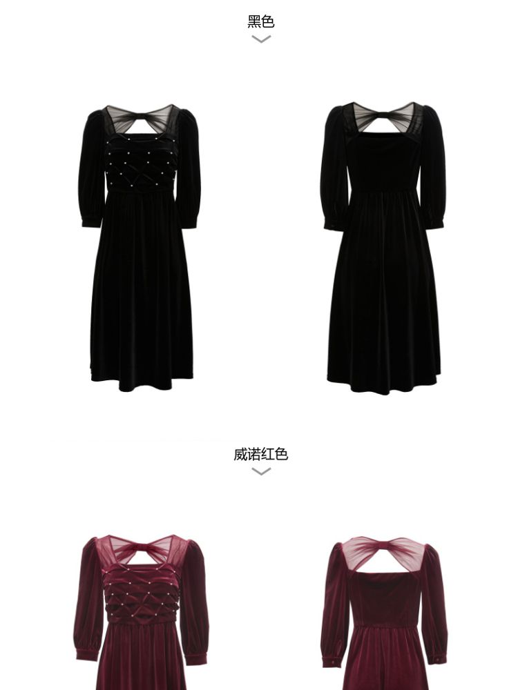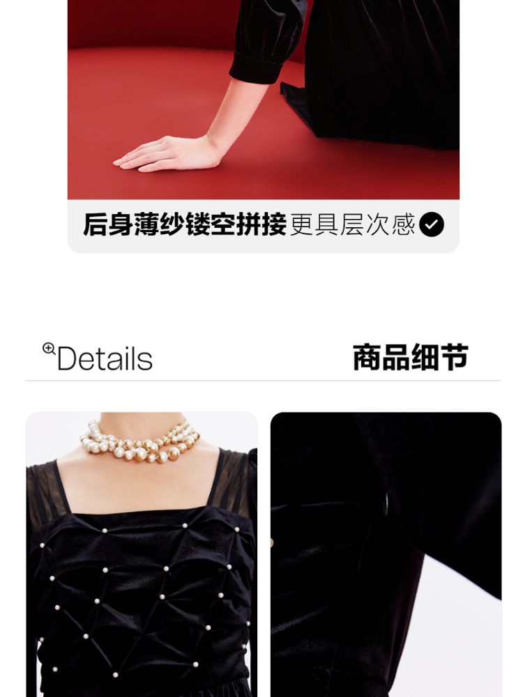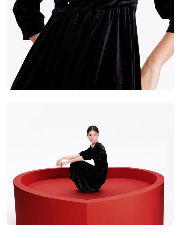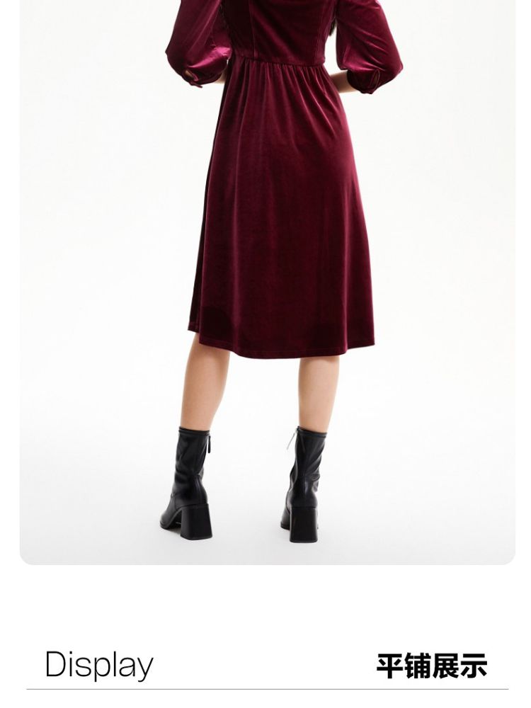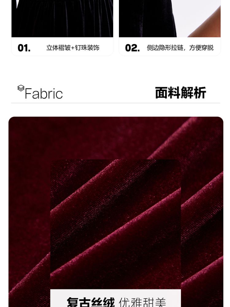 商品名称:丝绒立体褶皱镂空高级感复古优雅连衣裙气质百搭时尚春夏 984209