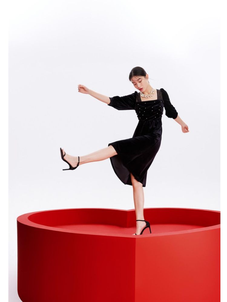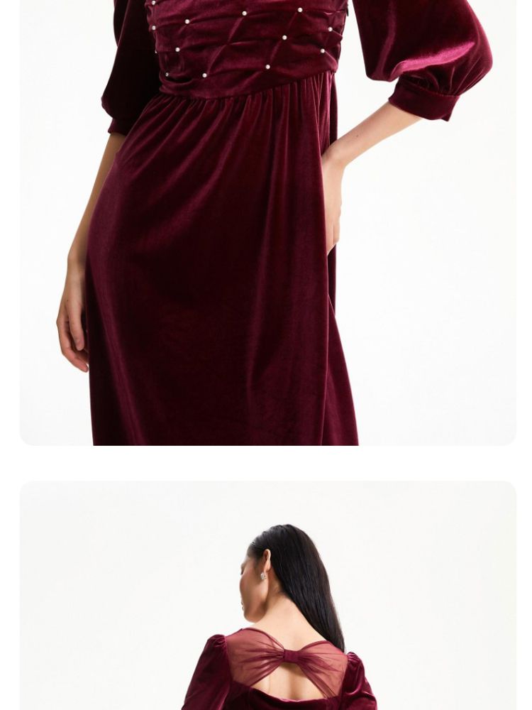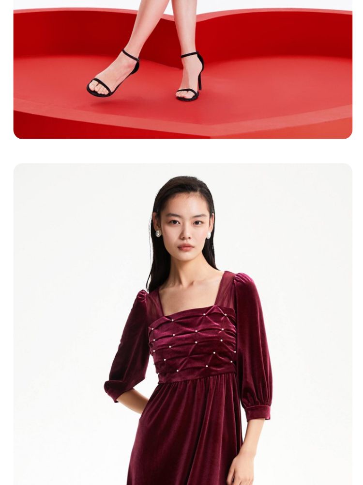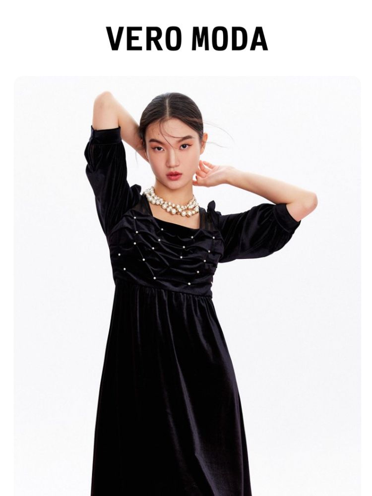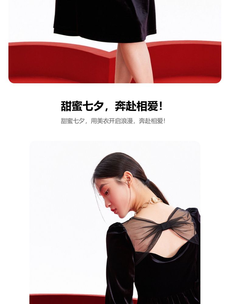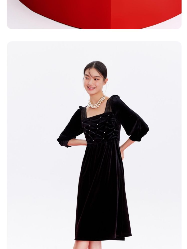 商品名称:丝绒立体褶皱镂空高级感复古优雅连衣裙气质百搭时尚春夏 984209