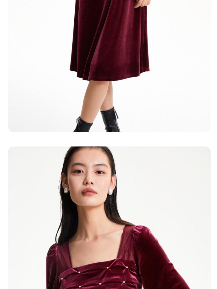 丝绒立体褶皱镂空高级感复古优雅连衣裙气质百搭时尚春夏 984209
