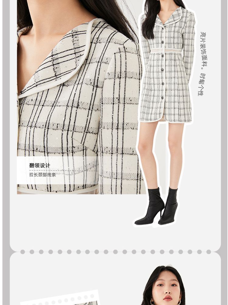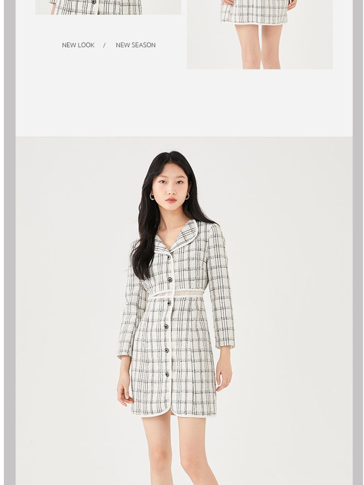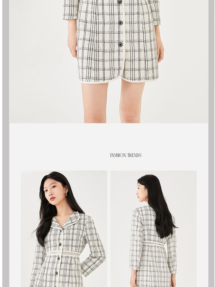 商品名称:【专柜同款】格纹直筒七分袖短裙翻领简约通勤女连衣裙 281617