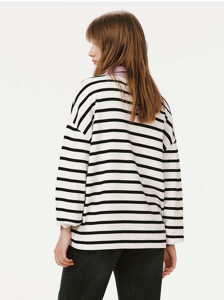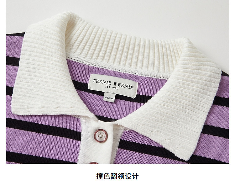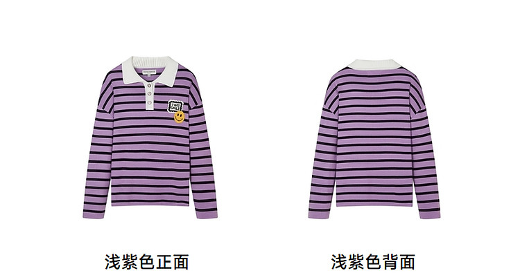 商品名称:小熊女装宽松条纹长袖POLO领毛衣手工钩花FG时尚女上衣 939649