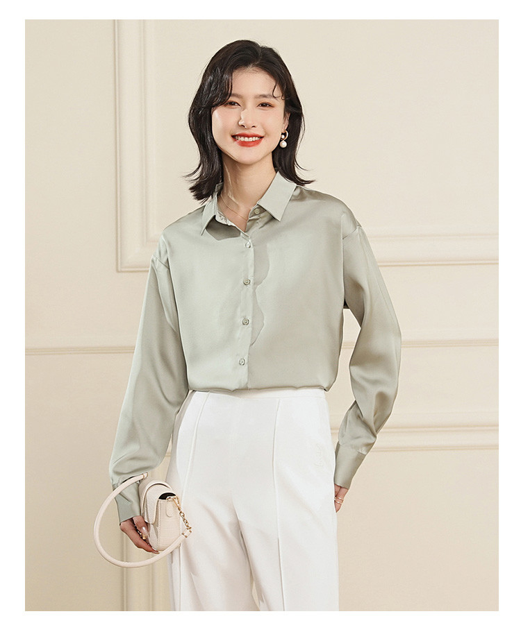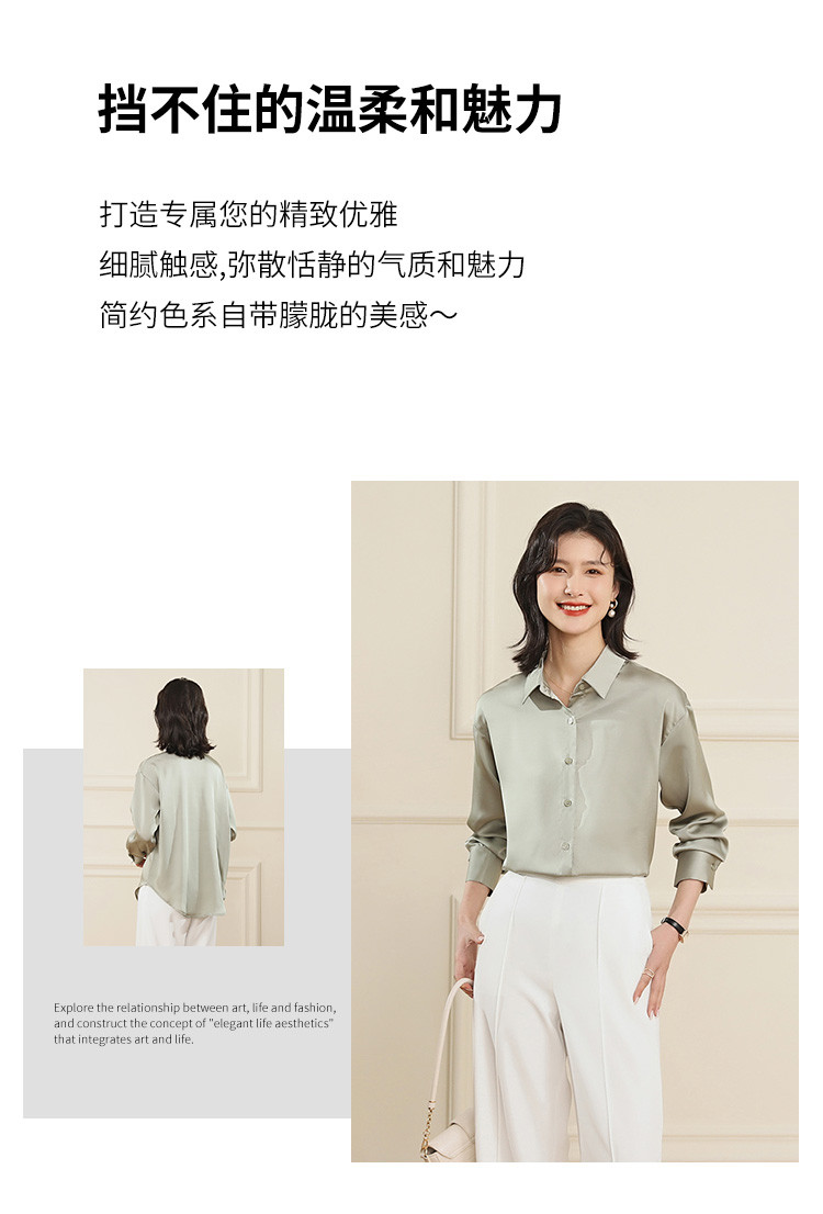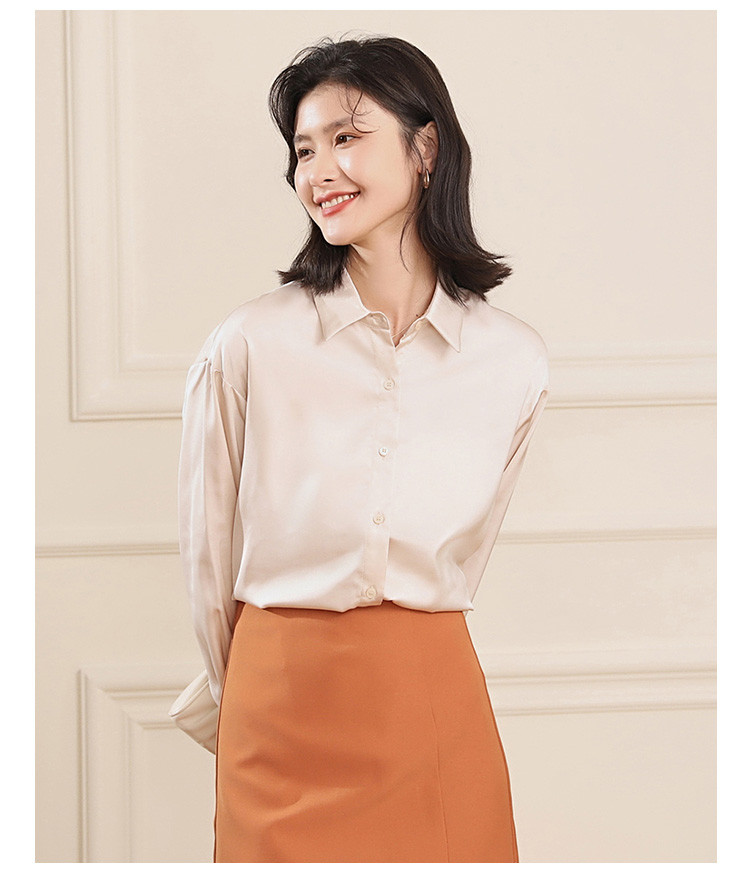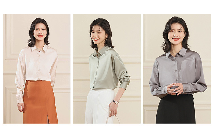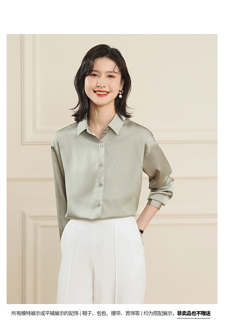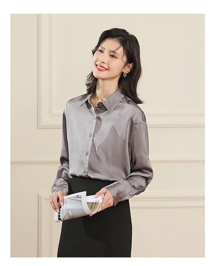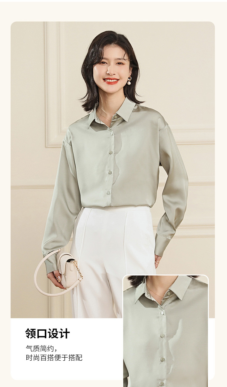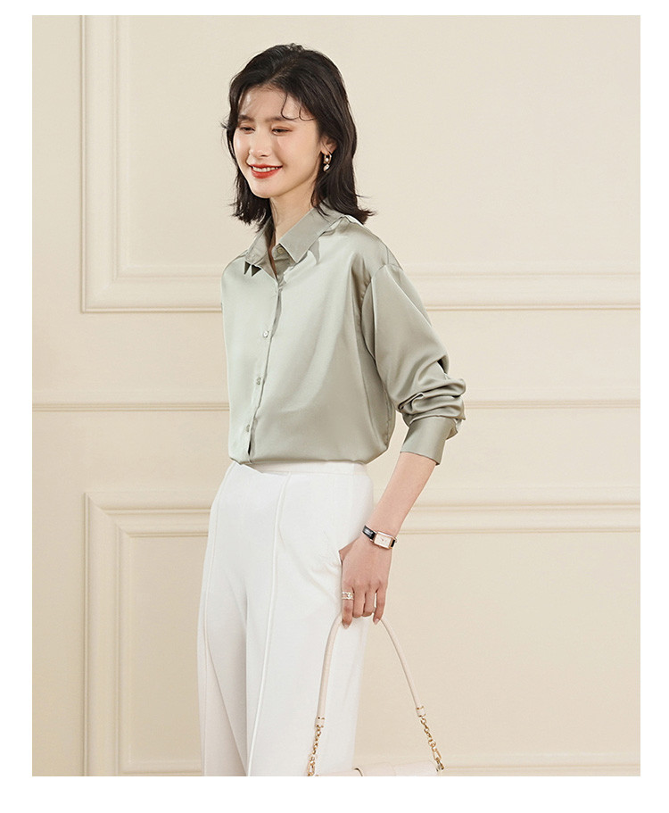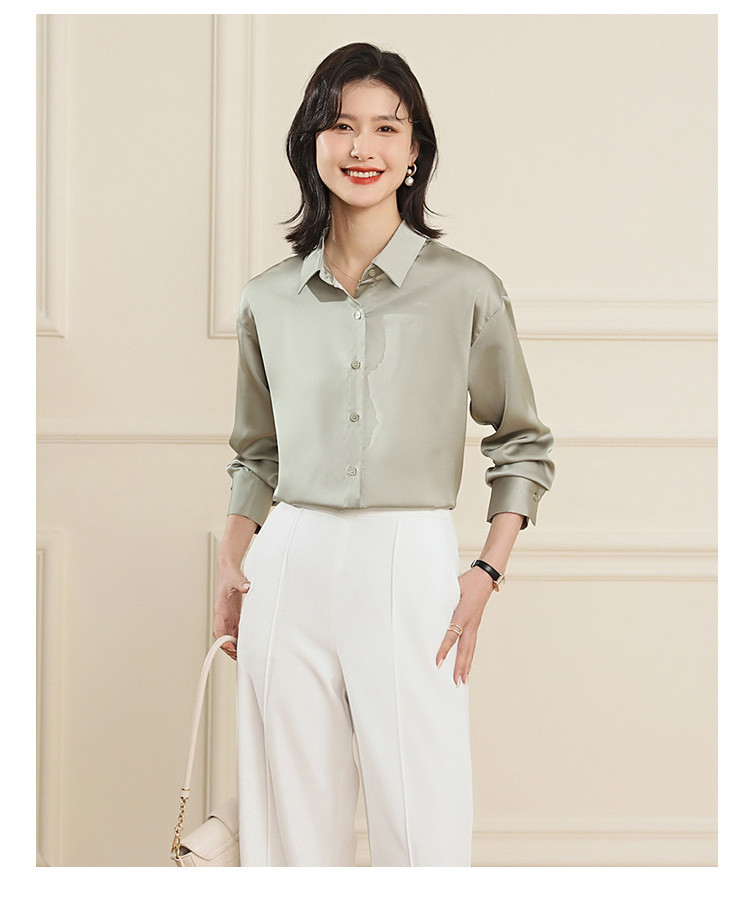 商品名称:春秋新款高级感纯色翻领长袖衬衫女式日常休闲时尚雪纺衫 727391