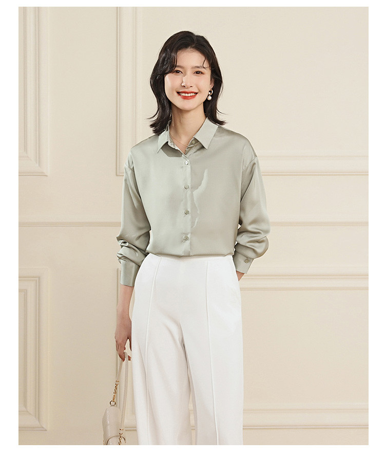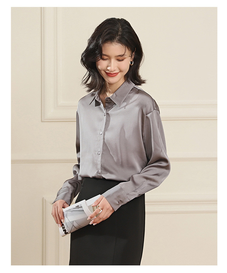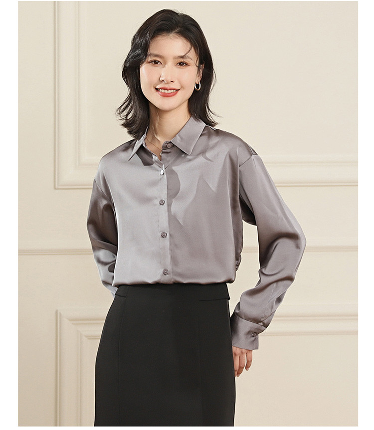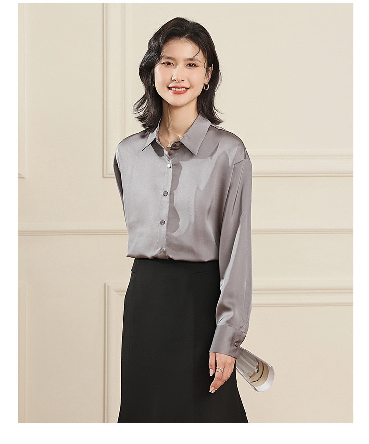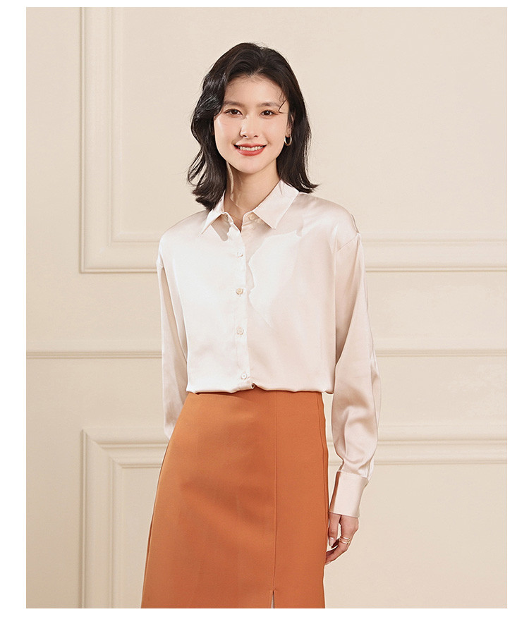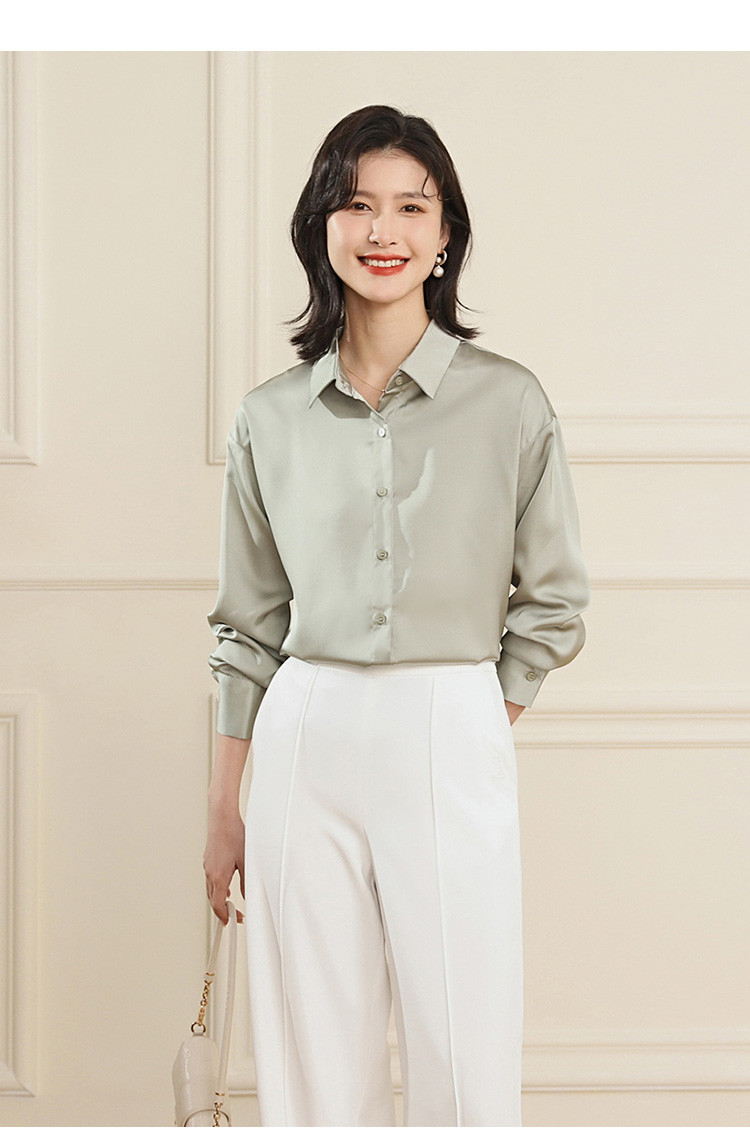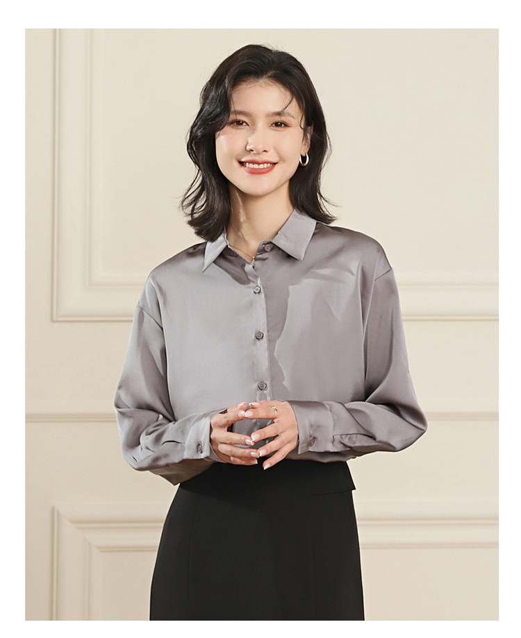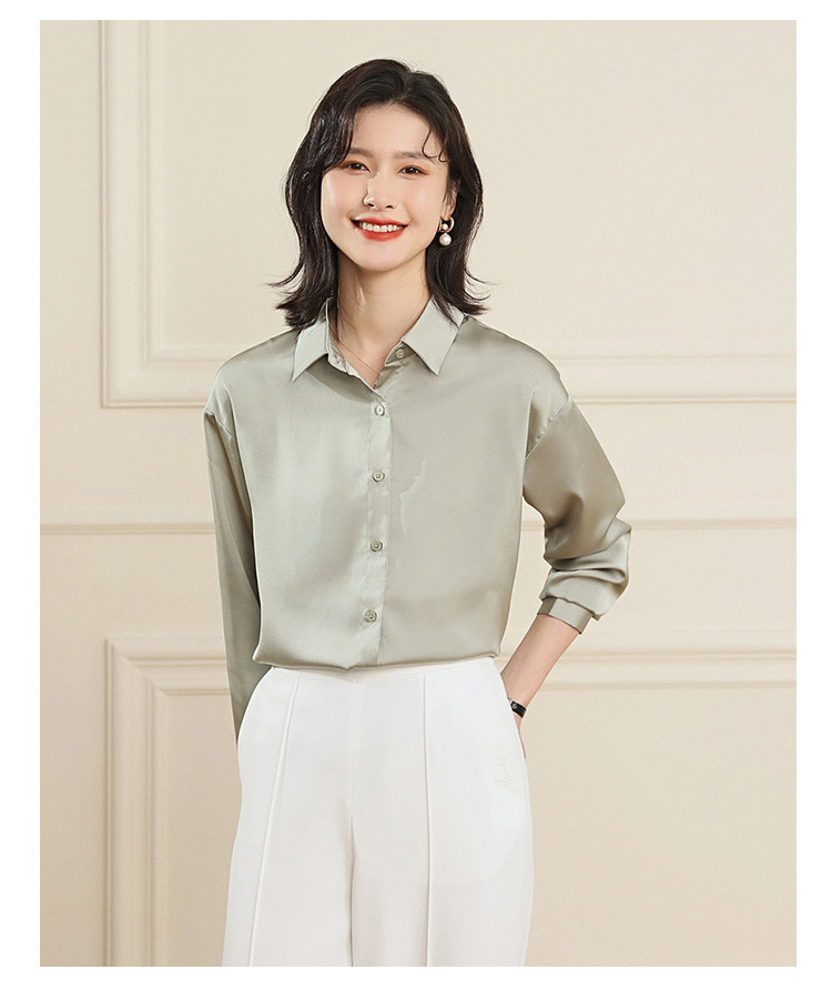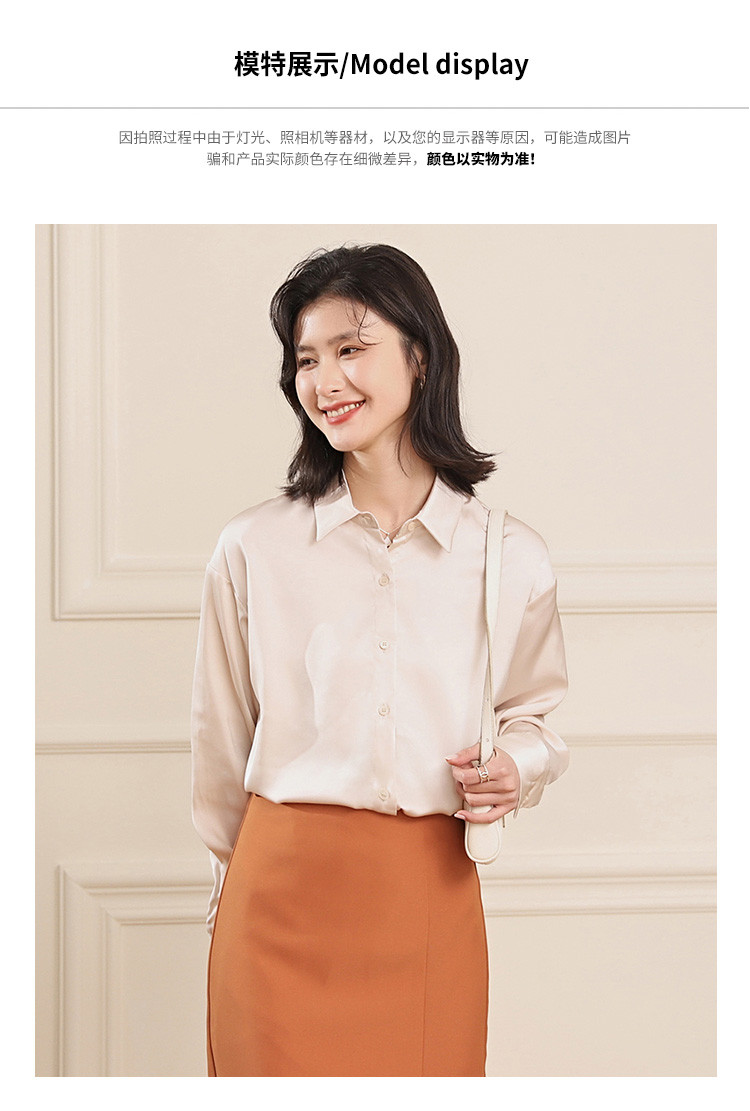 商品名称:春秋新款高级感纯色翻领长袖衬衫女式日常休闲时尚雪纺衫 727391