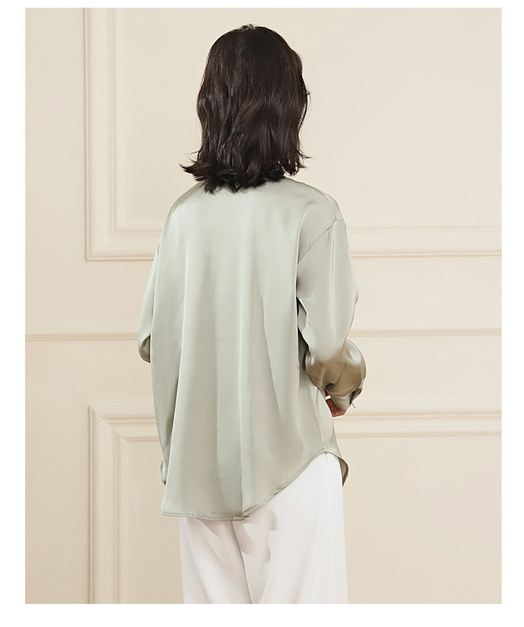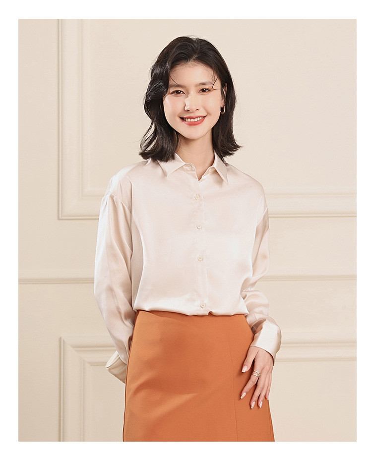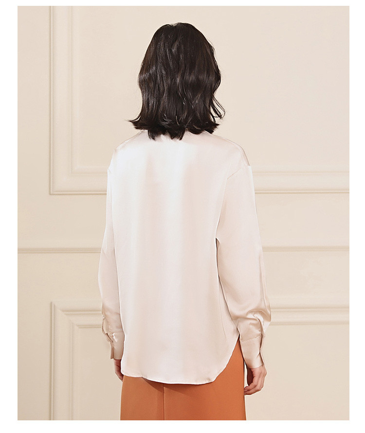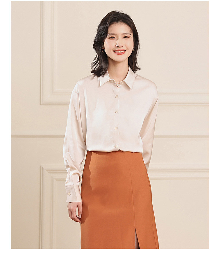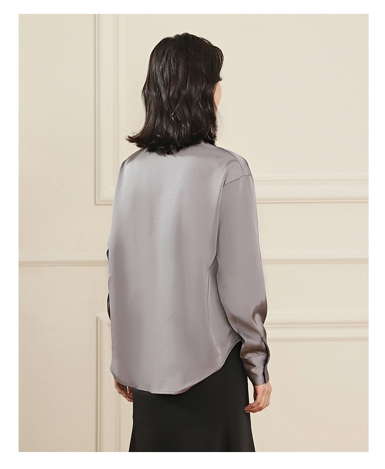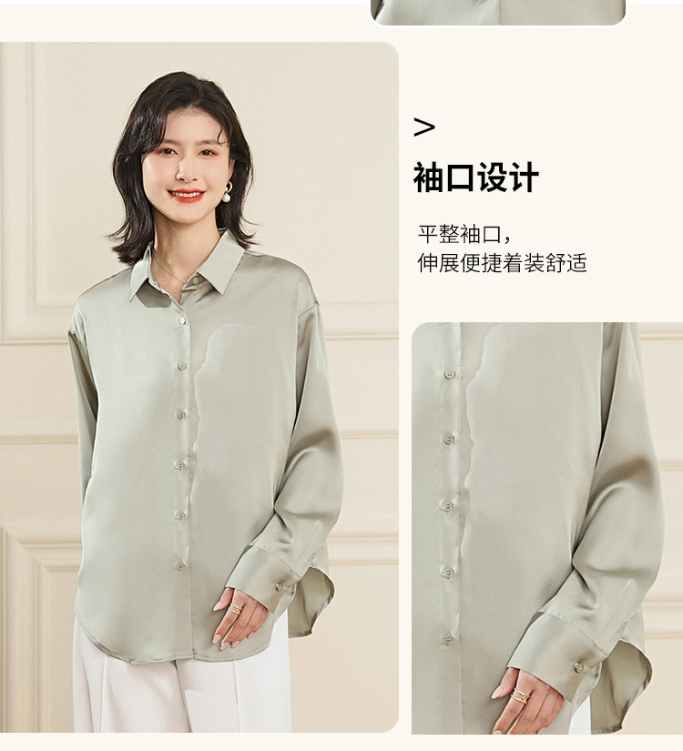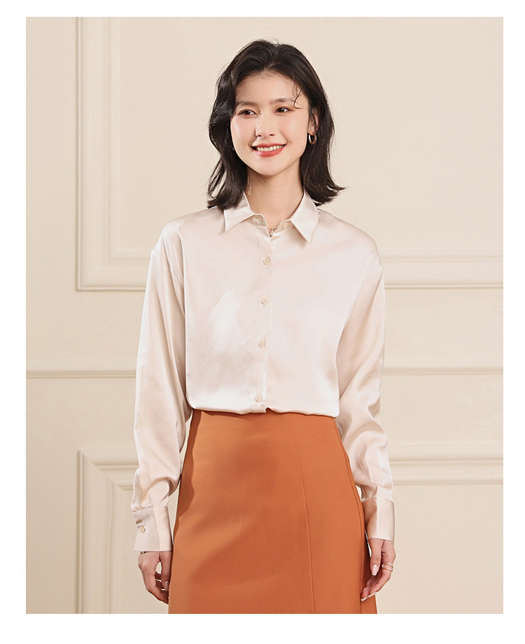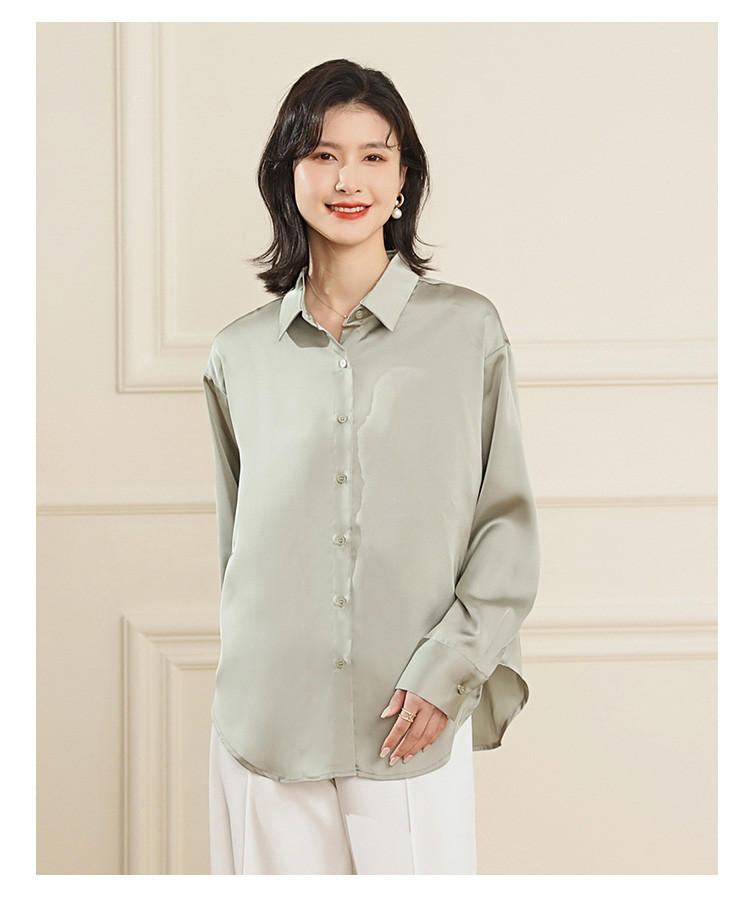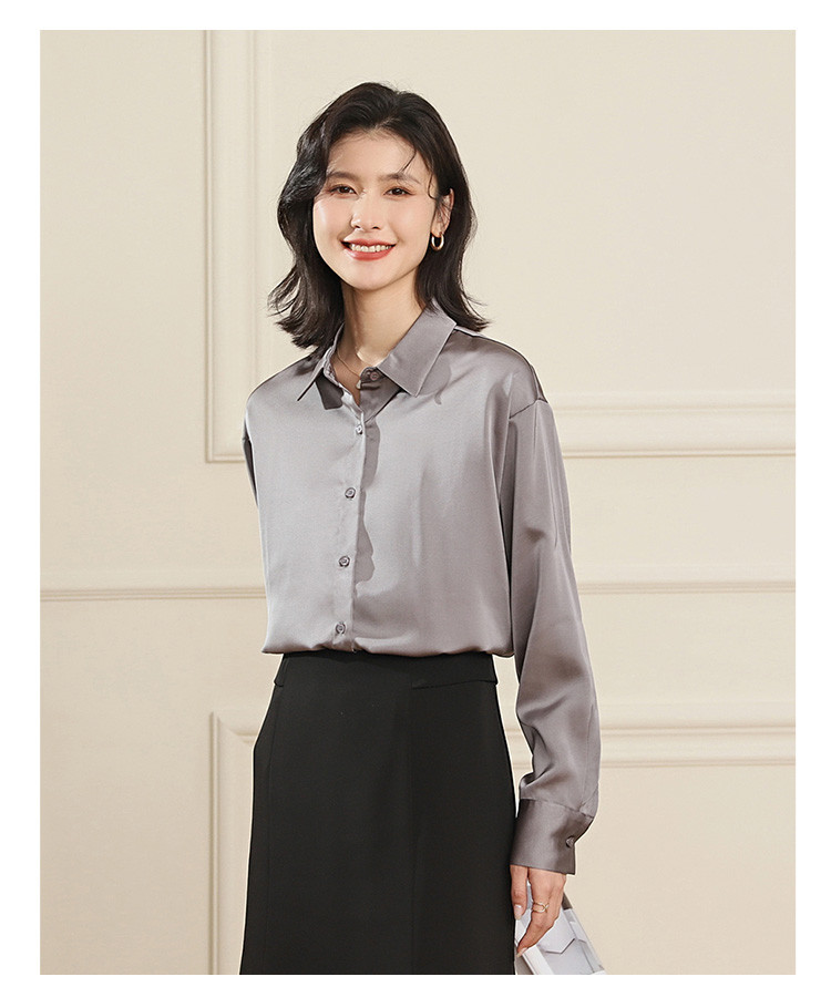 商品名称:春秋新款高级感纯色翻领长袖衬衫女式日常休闲时尚雪纺衫 727391