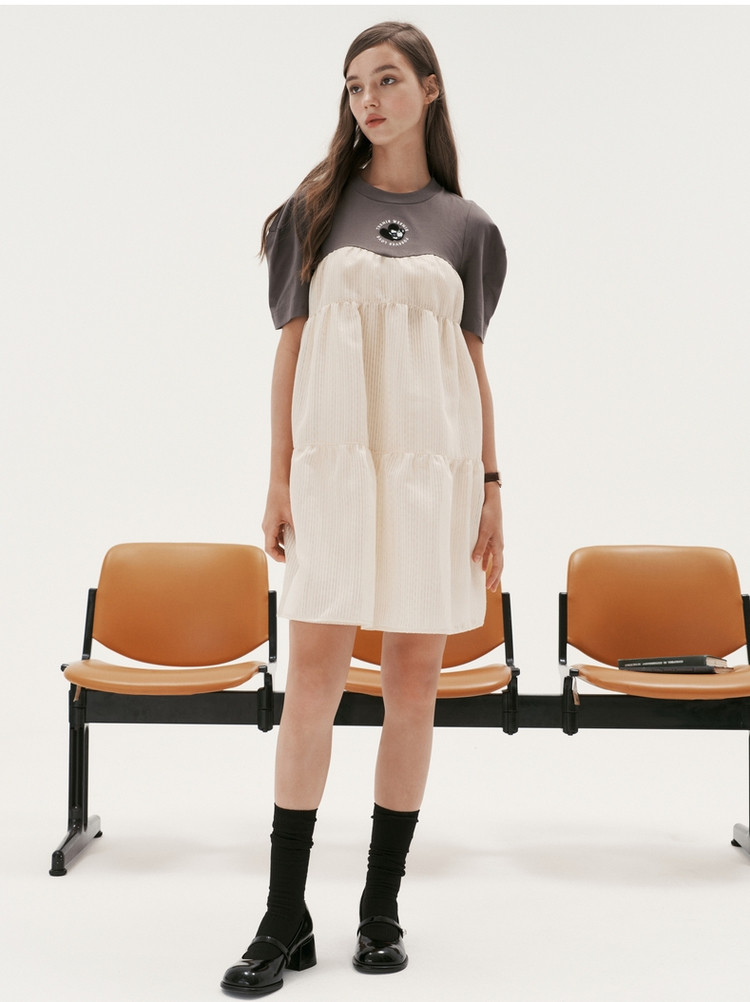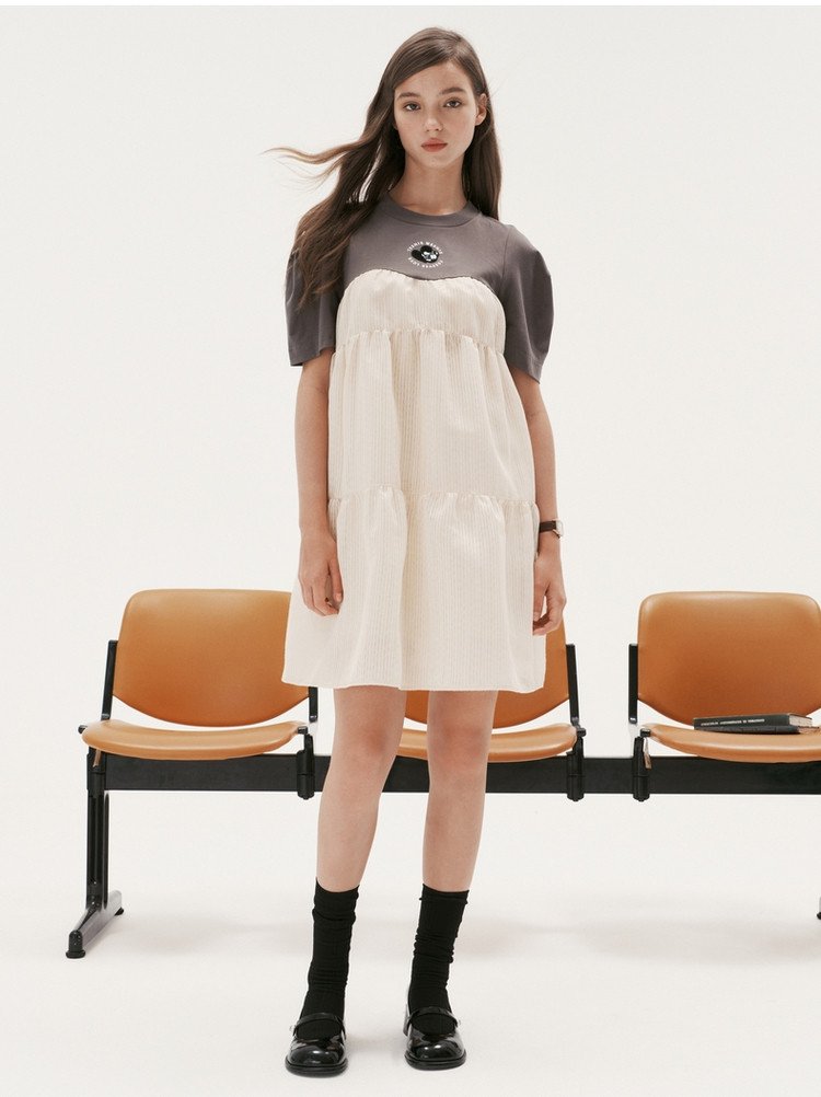 小熊拼接连衣裙设计感蛋糕裙俏皮可爱裙子女夏款 001217