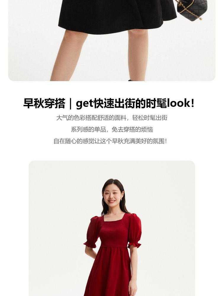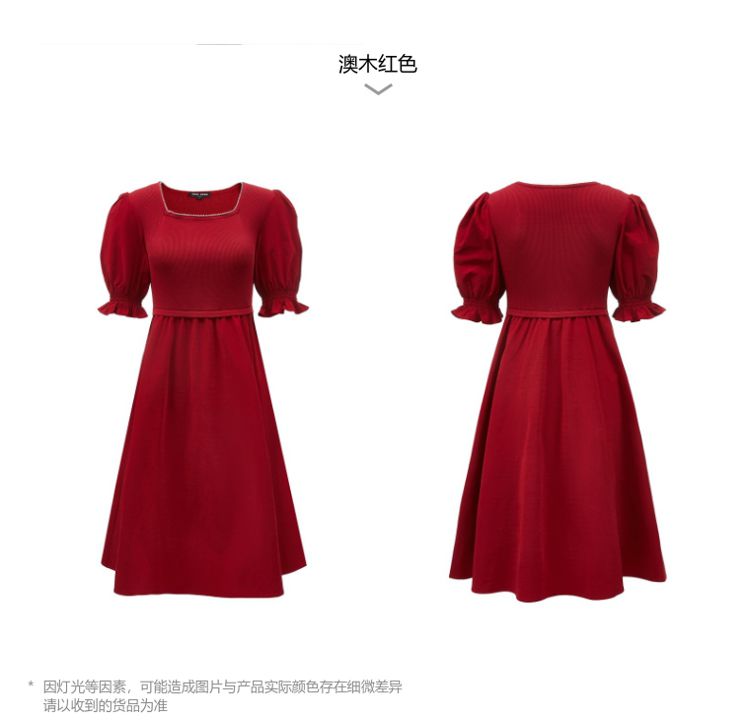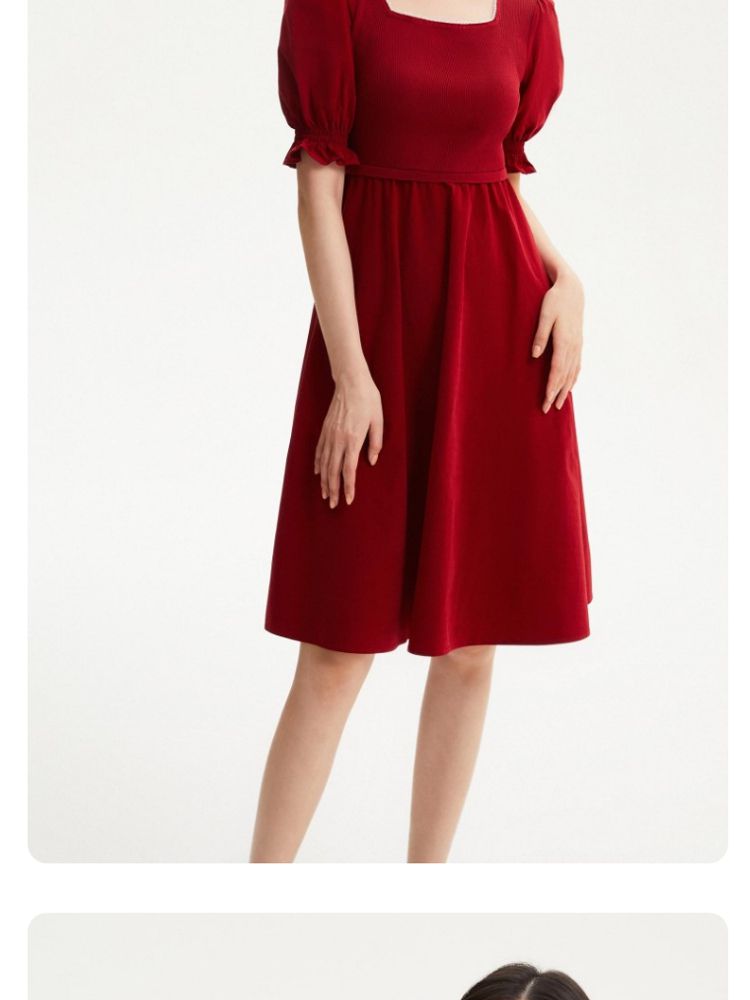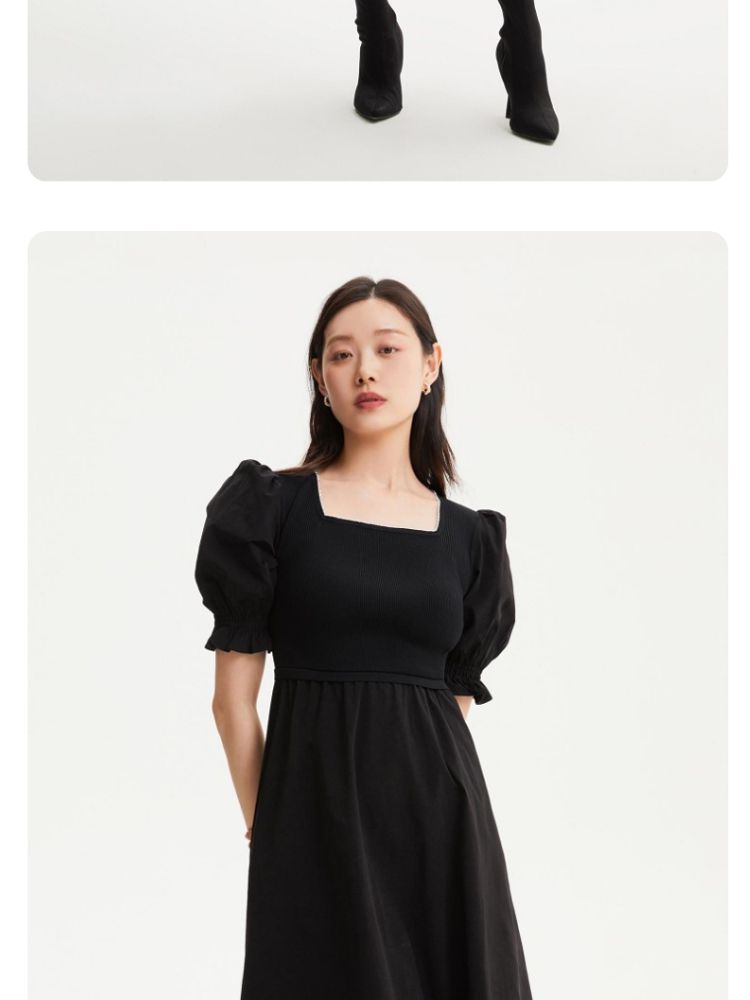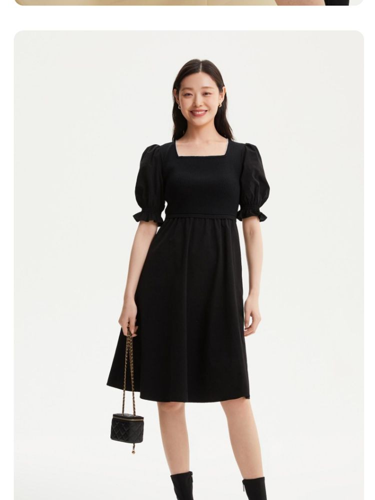 商品名称:专柜同款方领泡泡袖优雅气质通勤针织连衣裙 473745