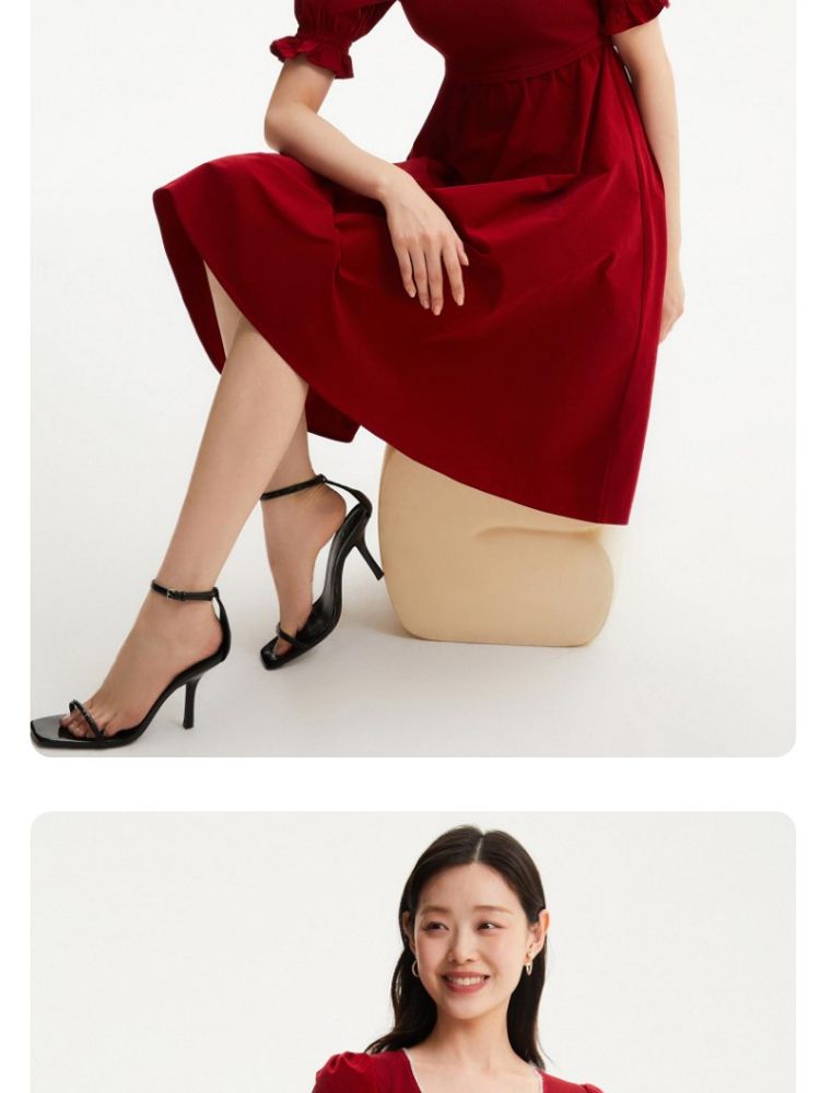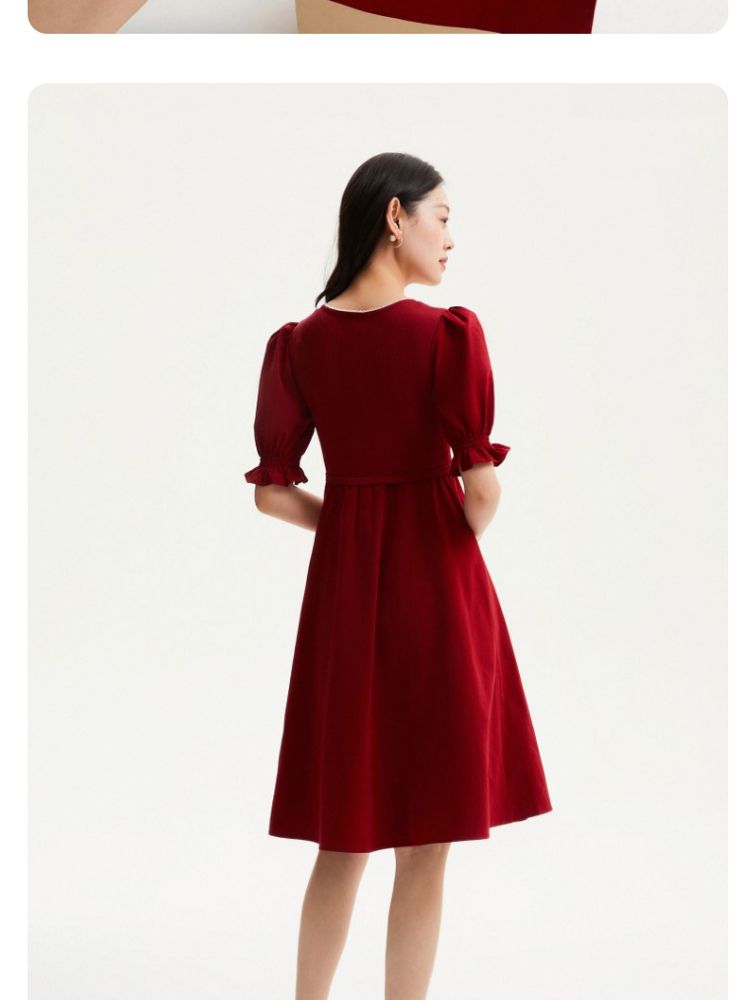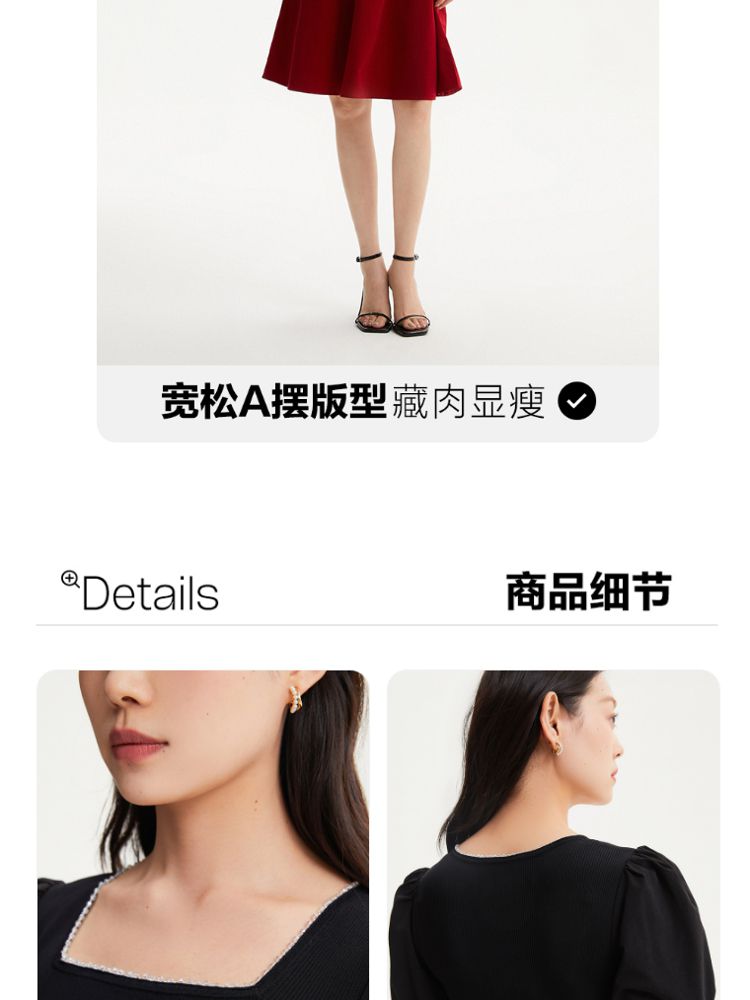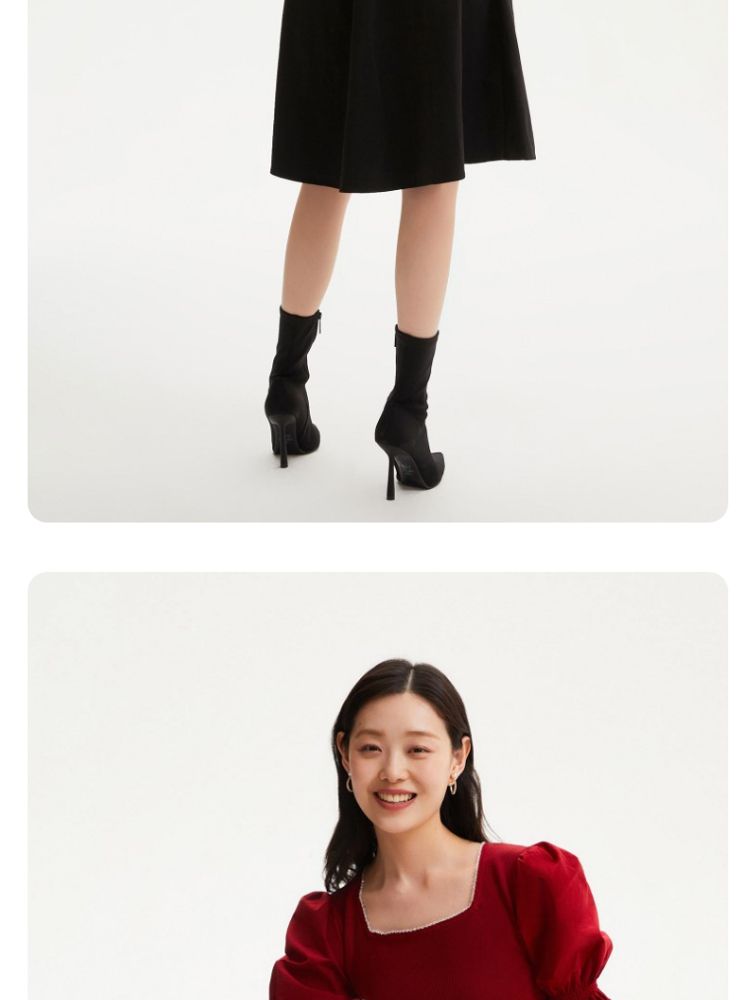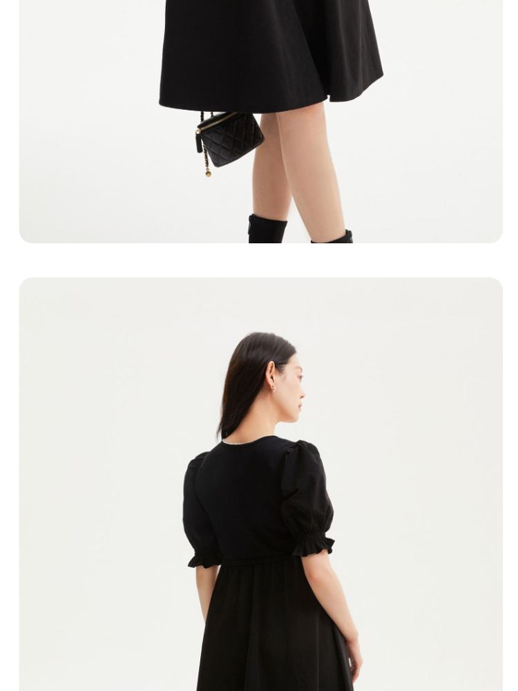 商品名称:专柜同款方领泡泡袖优雅气质通勤针织连衣裙 473745