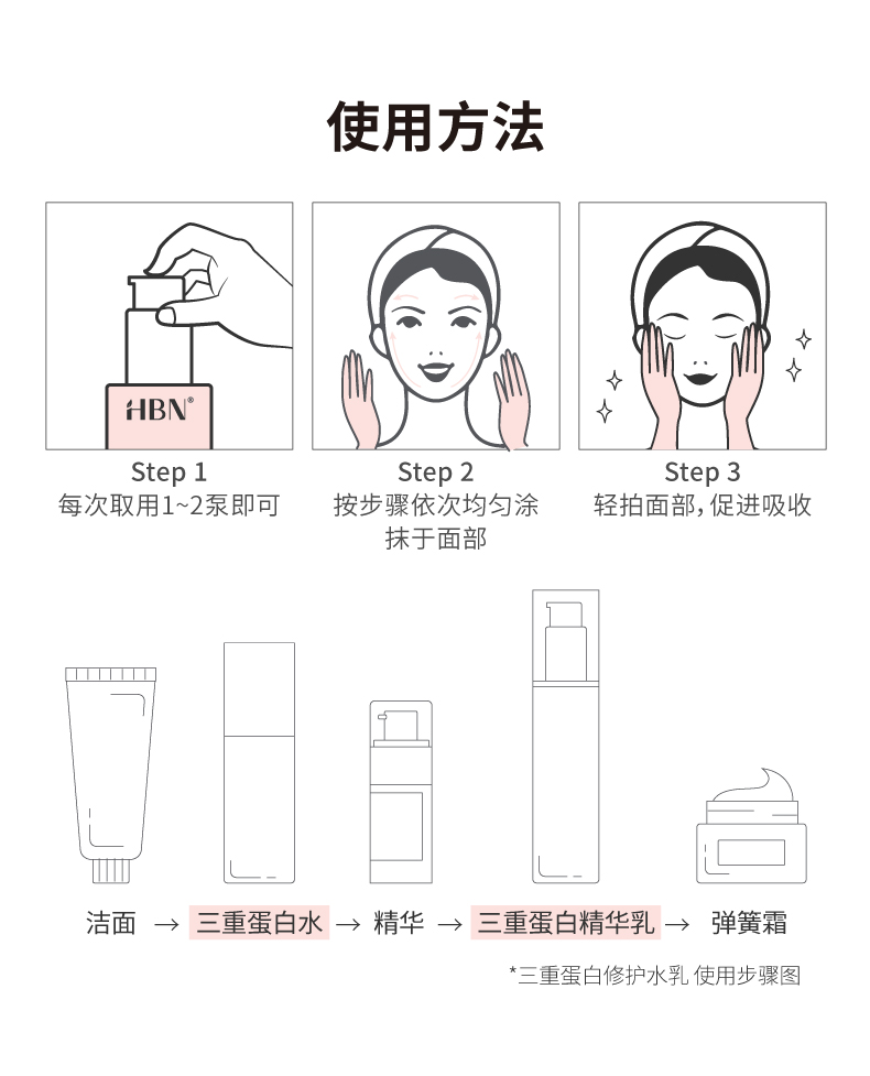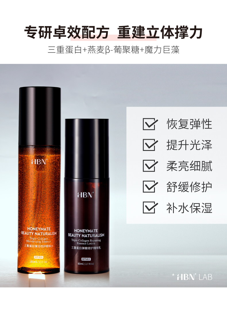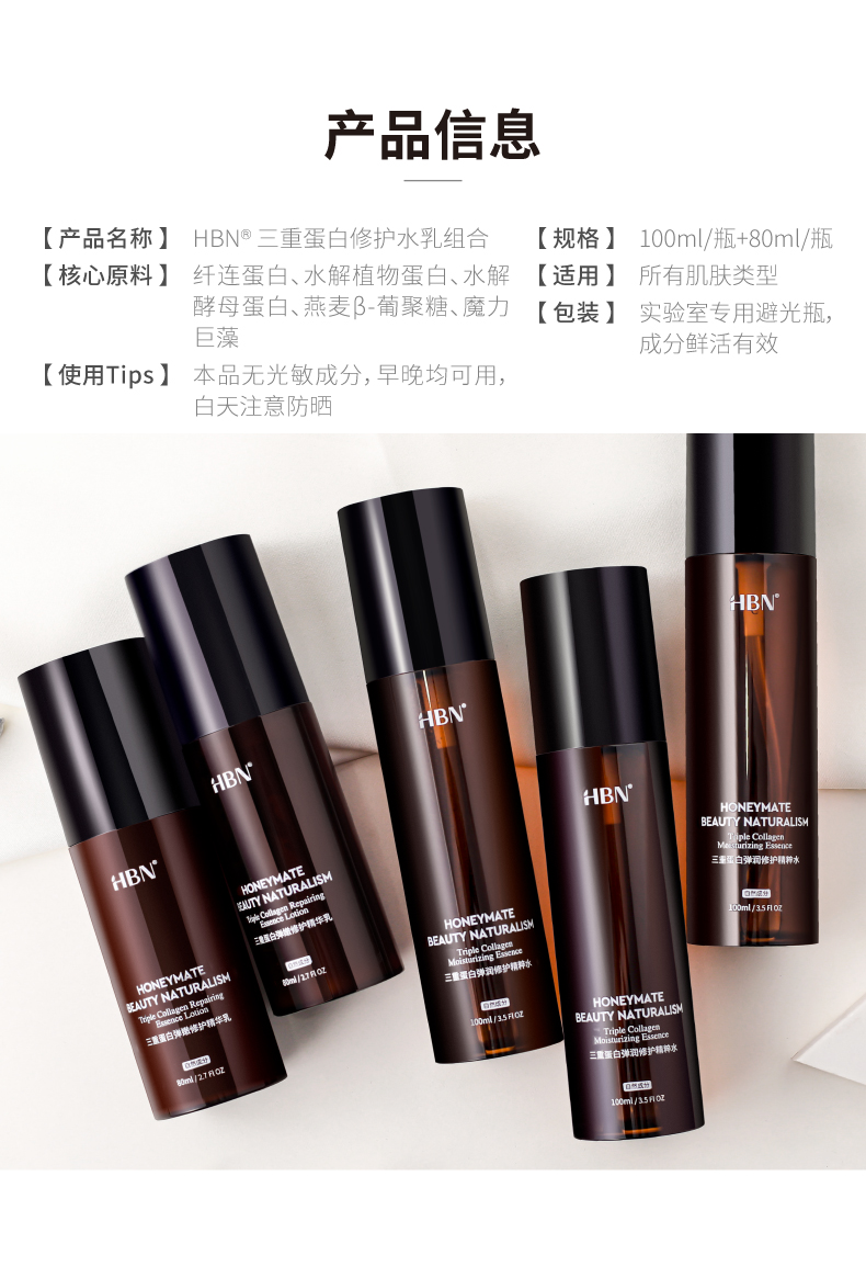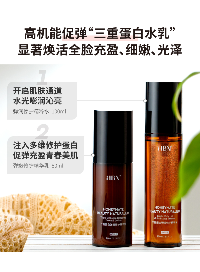 商品名称:HBN 三重蛋白水乳套装 100ml+80ml 弹润修护精华紧致敏感肌补水保湿抗初老护肤