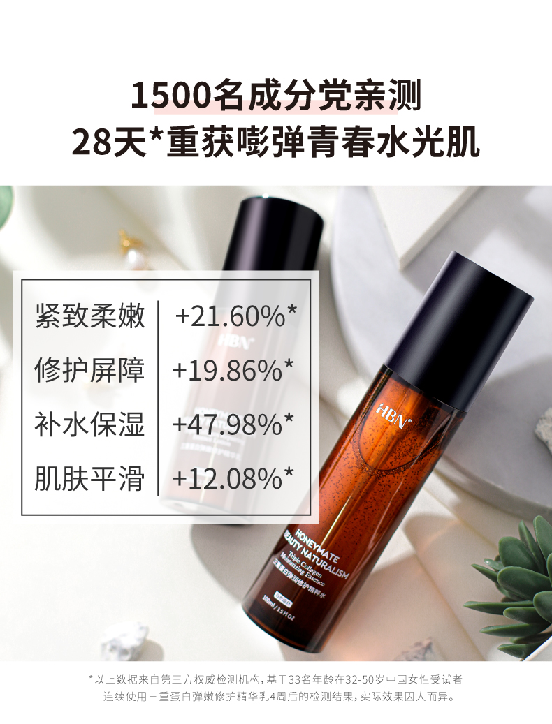 HBN 三重蛋白水乳套装 100ml+80ml 弹润修护精华紧致敏感肌补水保湿抗初老护肤