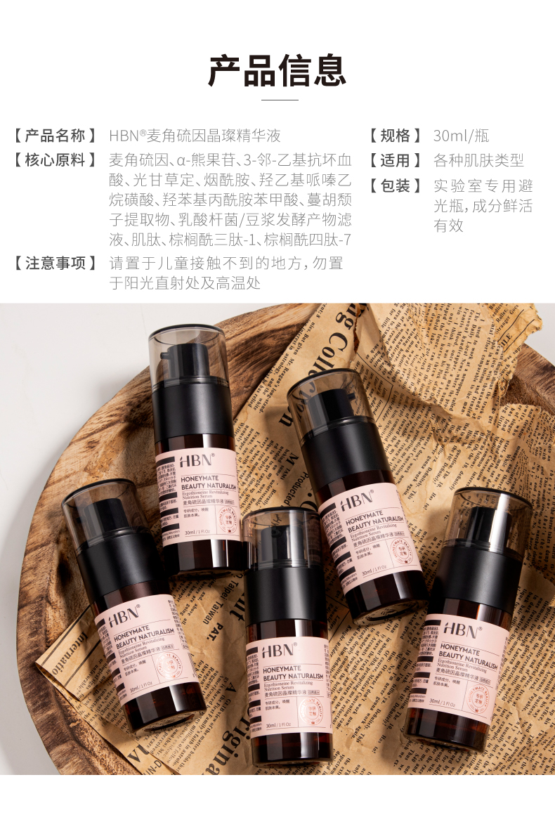 商品名称:HBN 麦角硫因面部精华 30ml 熊果苷烟酰胺补水保湿改善暗沉发光精华液