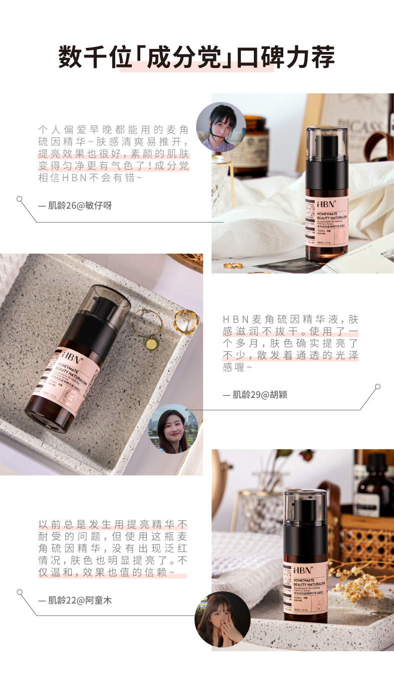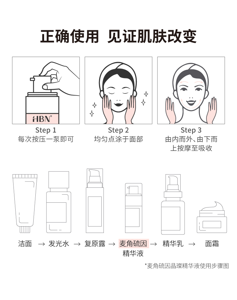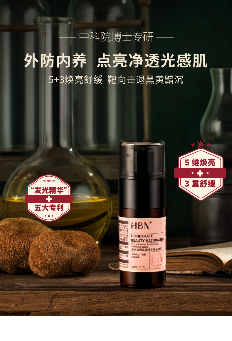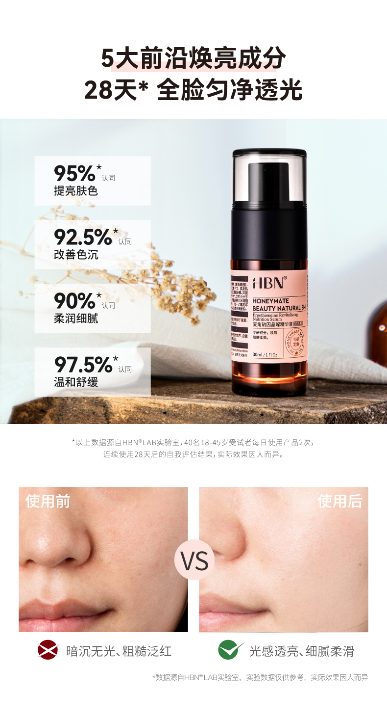 HBN 麦角硫因面部精华 30ml 熊果苷烟酰胺补水保湿改善暗沉发光精华液