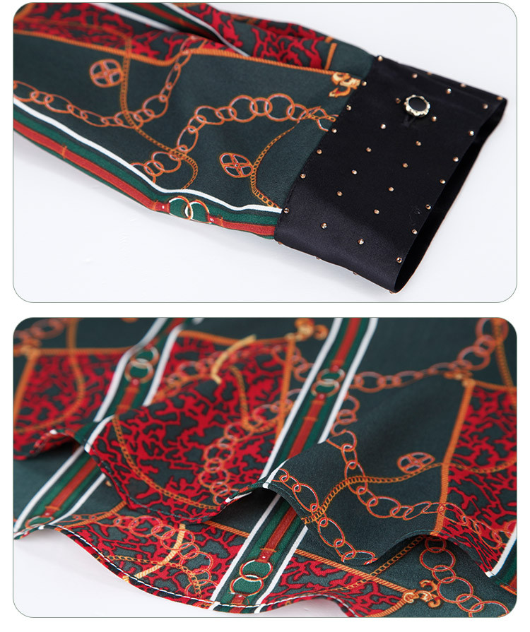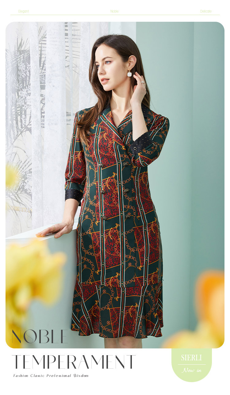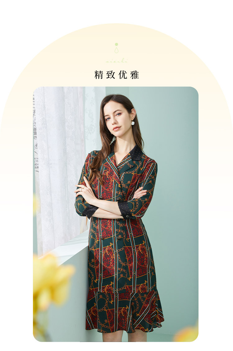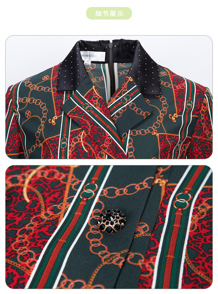 商品名称:商场同款春季复古巴洛克金链油画印花撞色翻连衣裙 019167