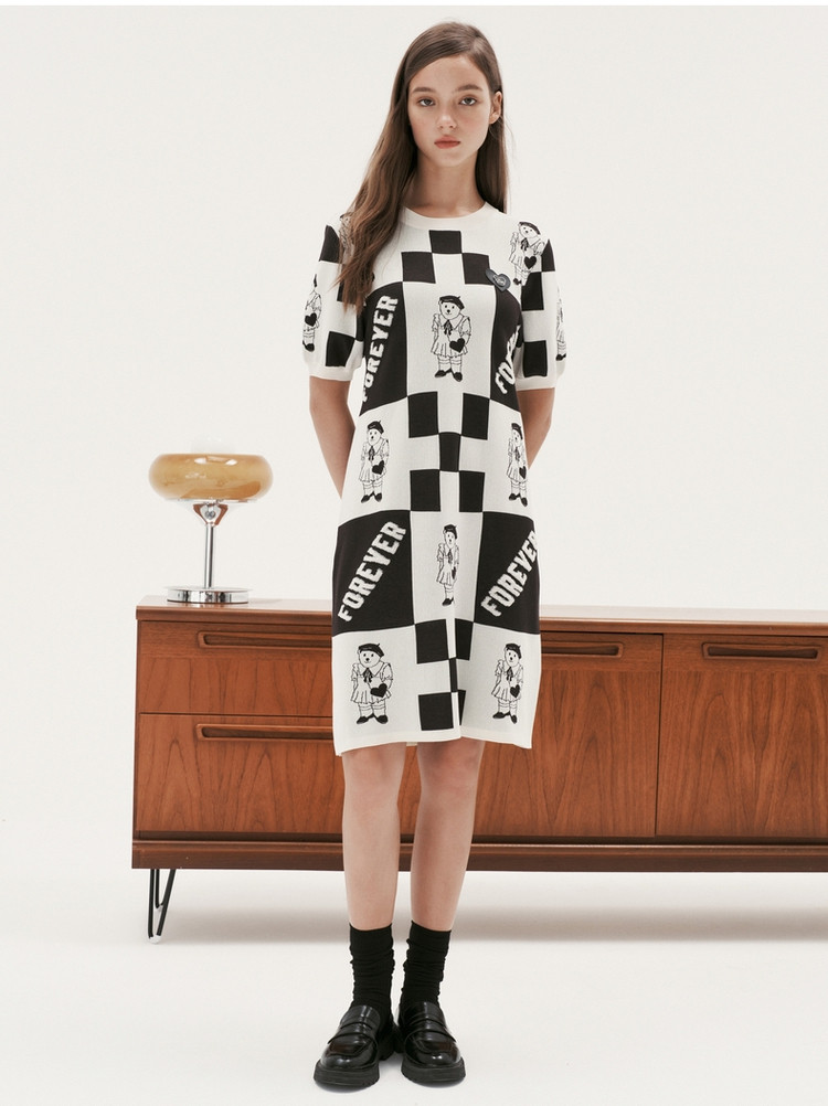 商品名称:连衣裙女夏韩版满身提花短袖针织薄款连衣裙女 949825
