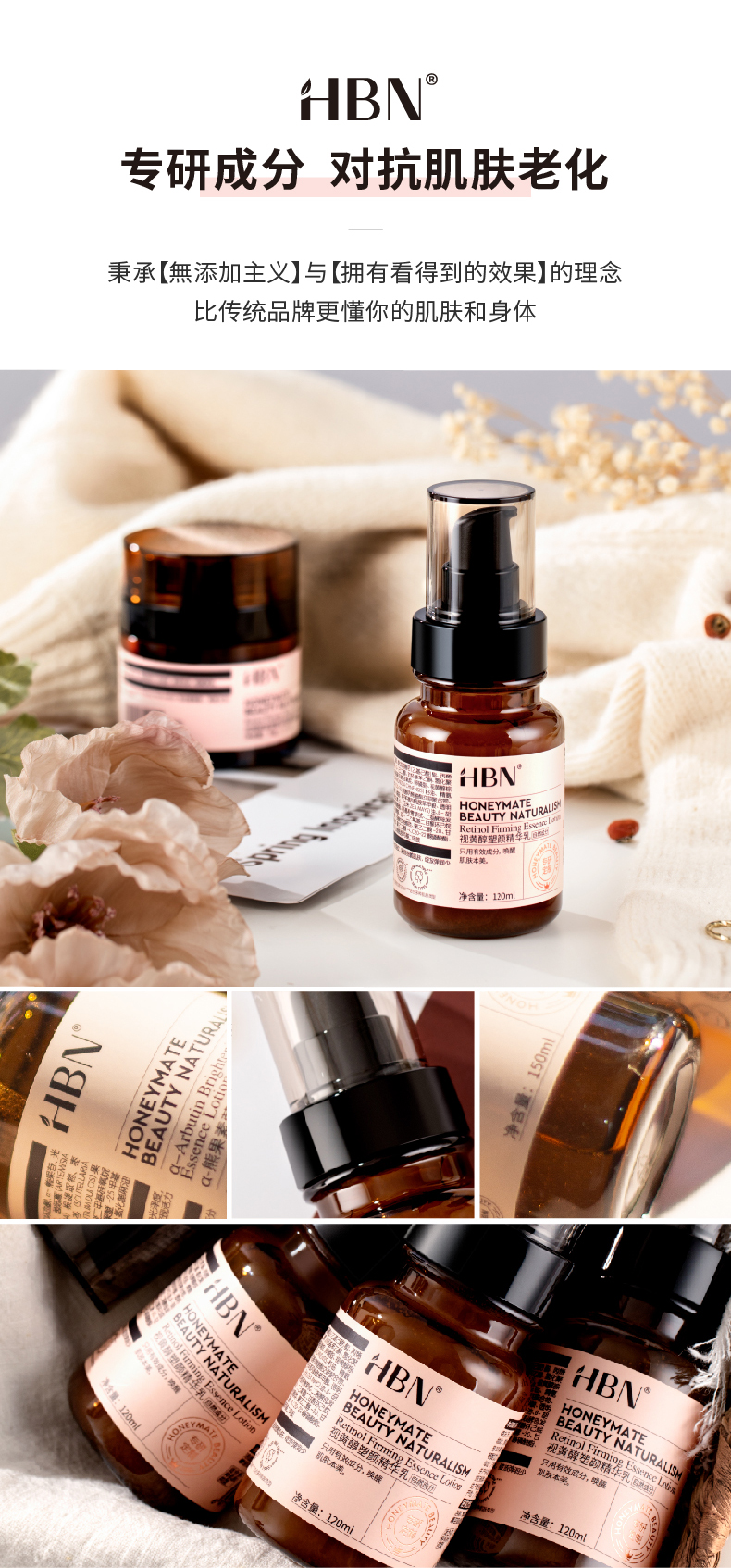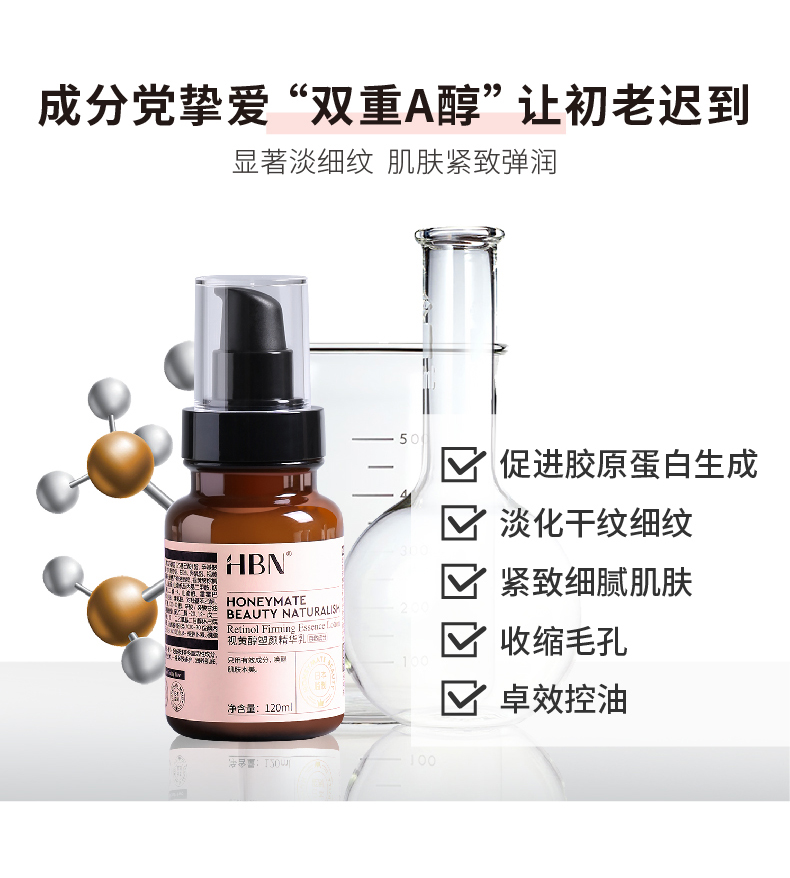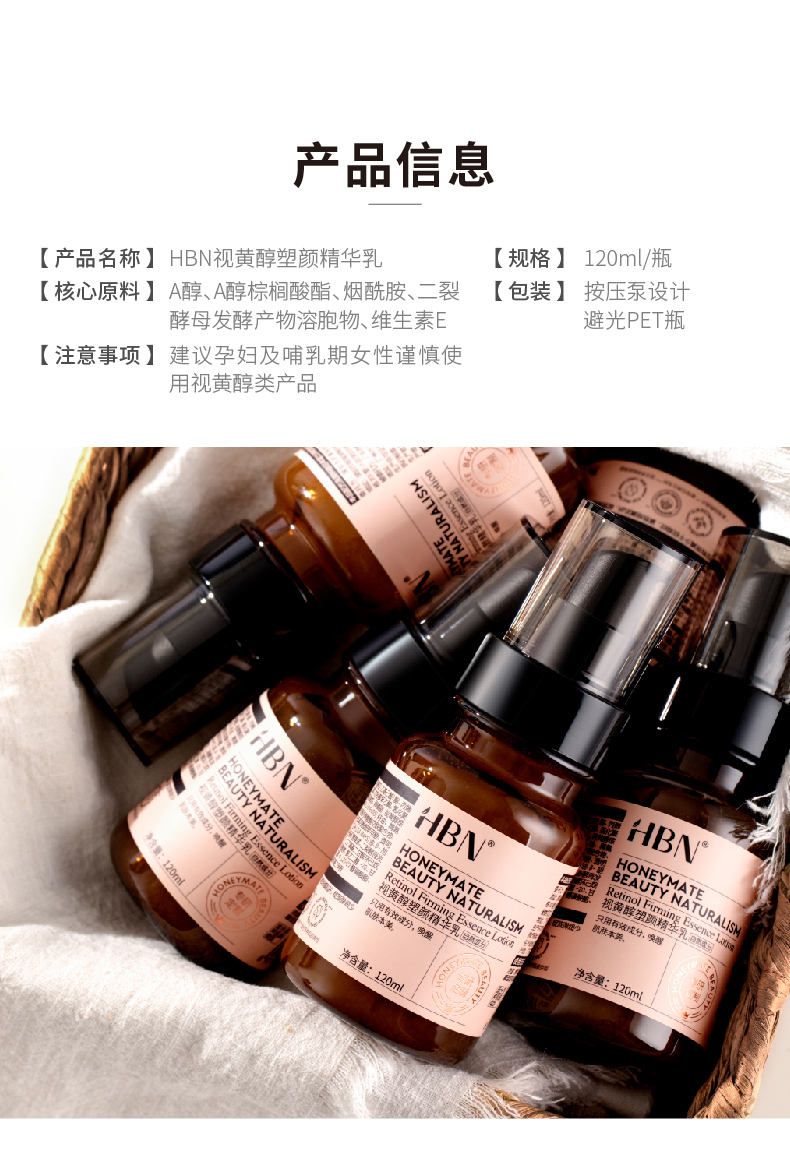 商品名称:HBN 视黄醇精华乳 120ml 紧致抗皱抗老维A醇抗初老双a醇保湿精华乳液