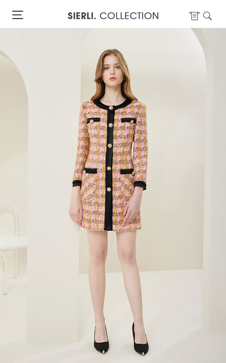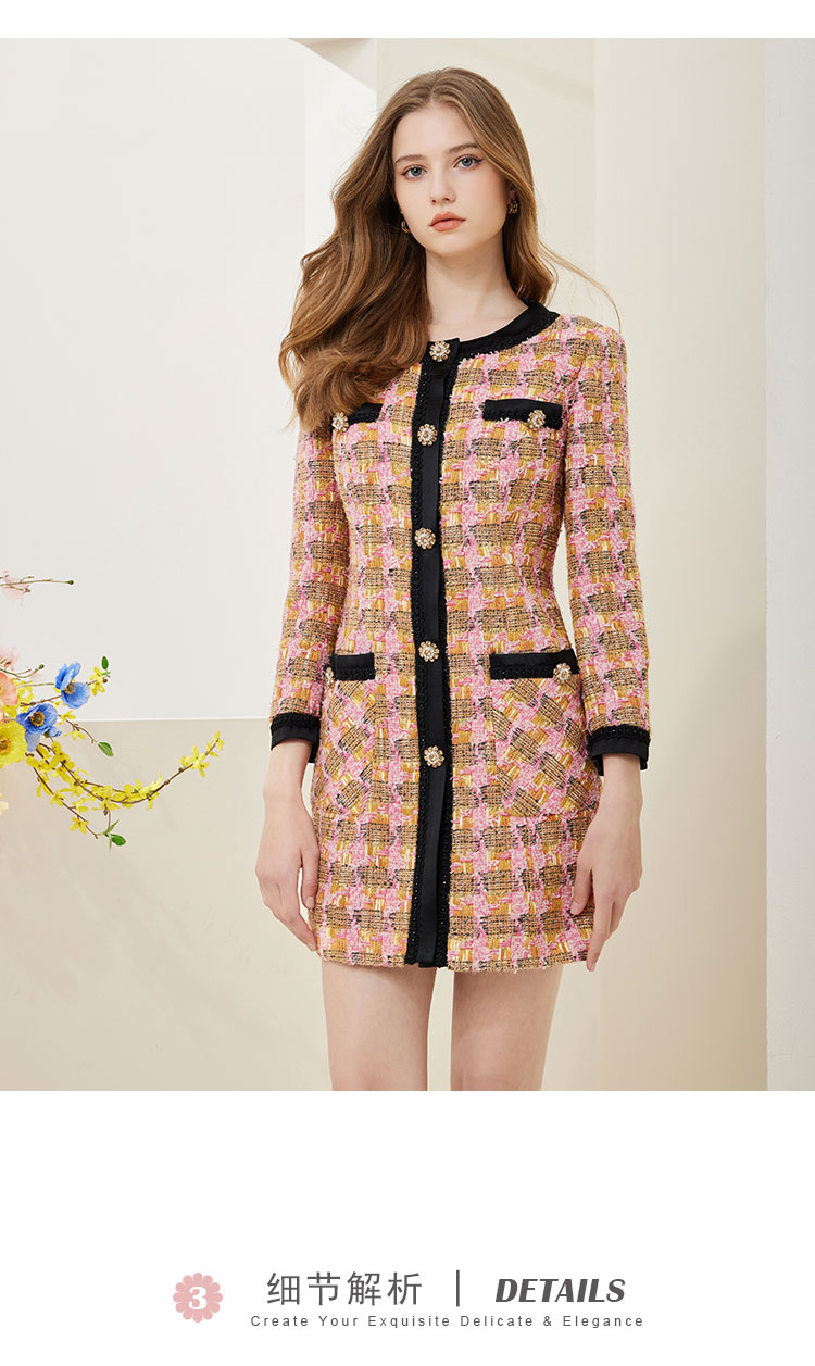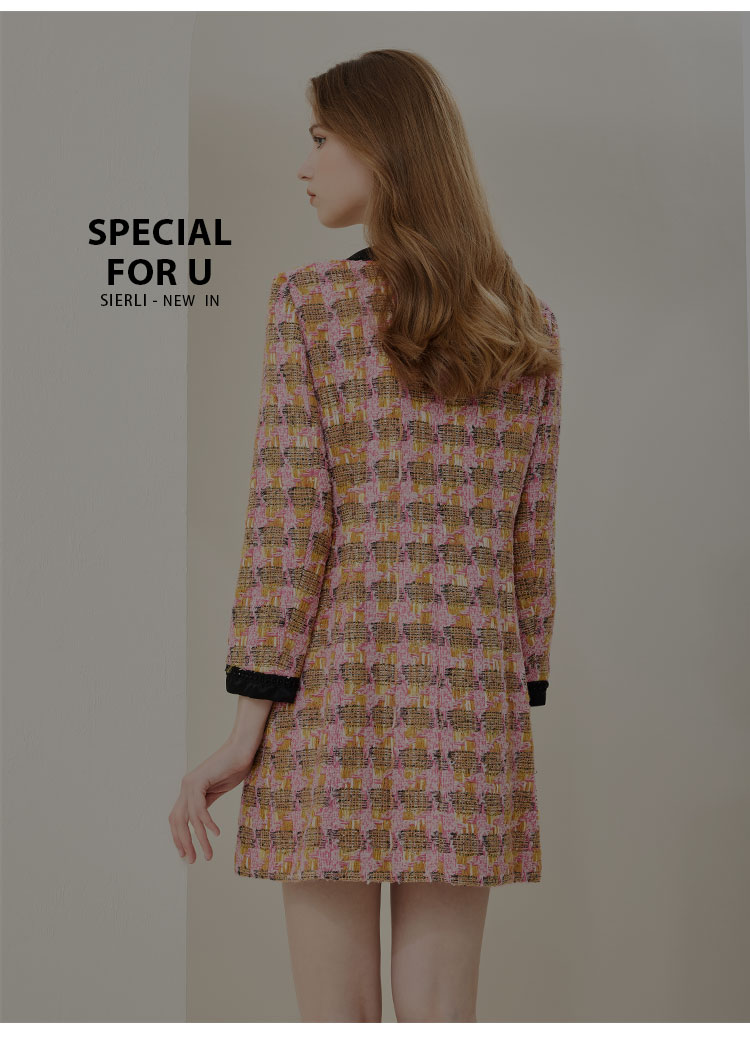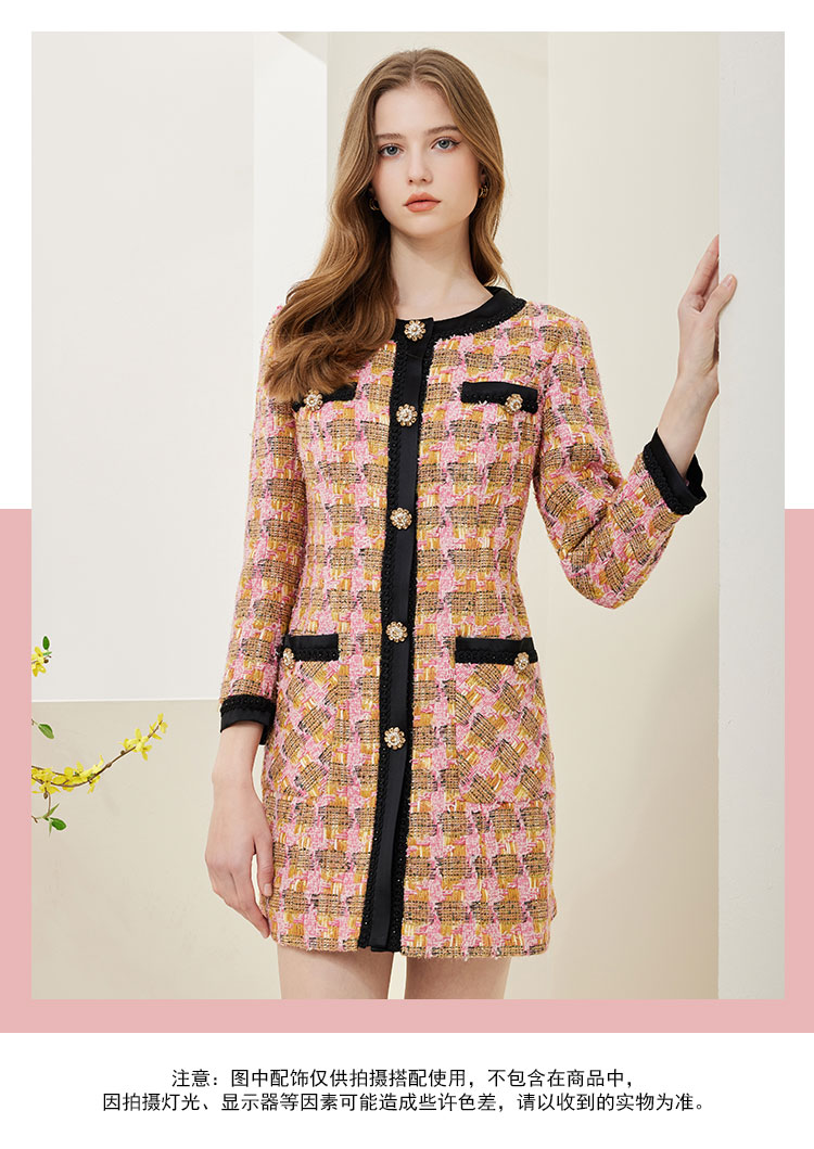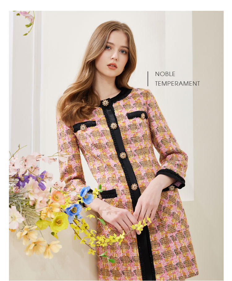 商场同款精致撞色纽扣式时尚洋气小香风收腰长女式外套 567775