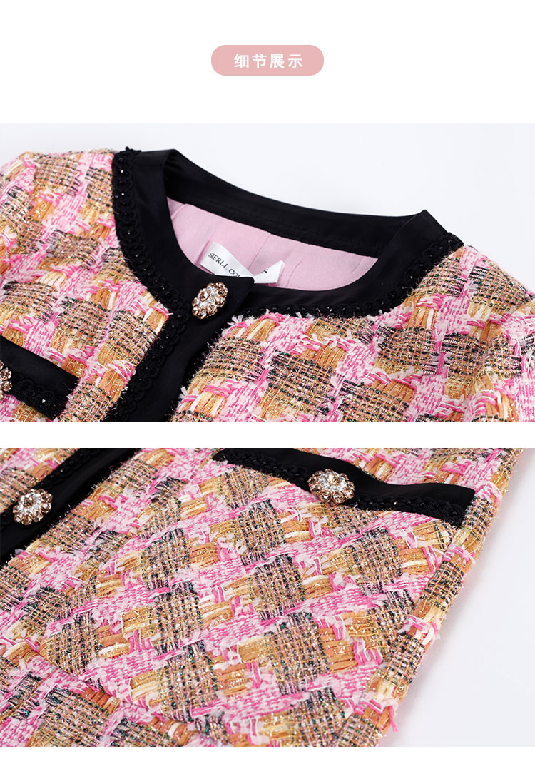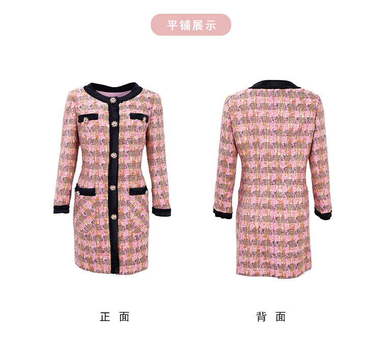 商品名称:商场同款精致撞色纽扣式时尚洋气小香风收腰长女式外套 567775